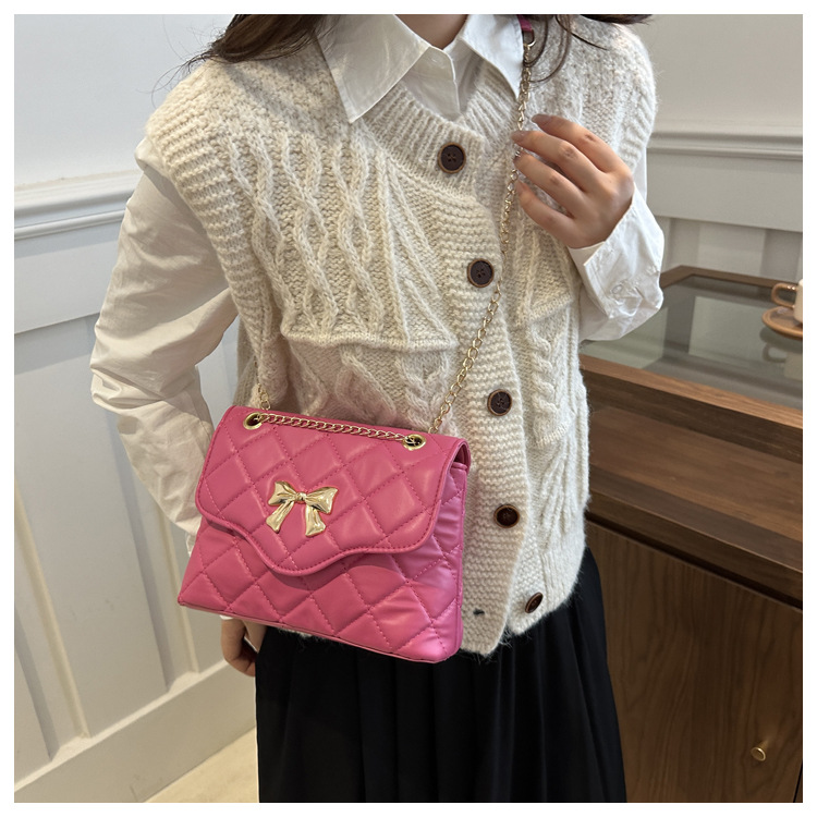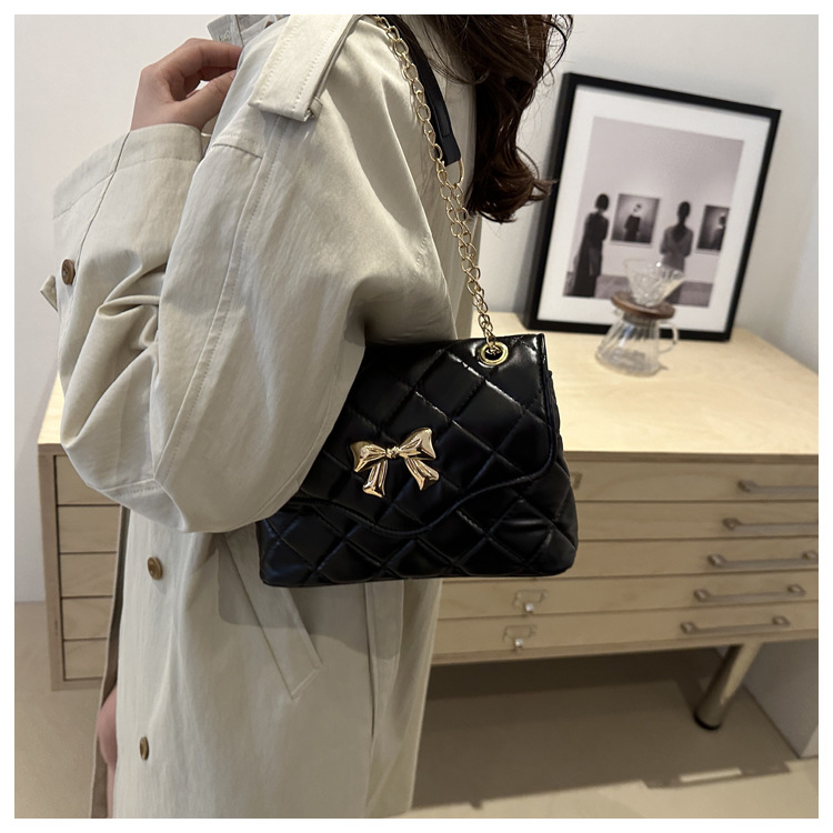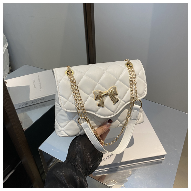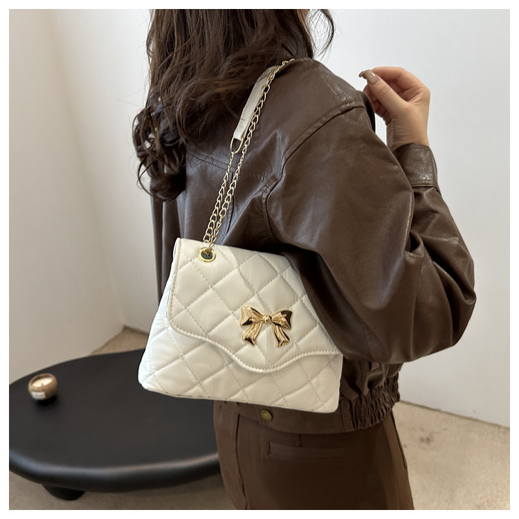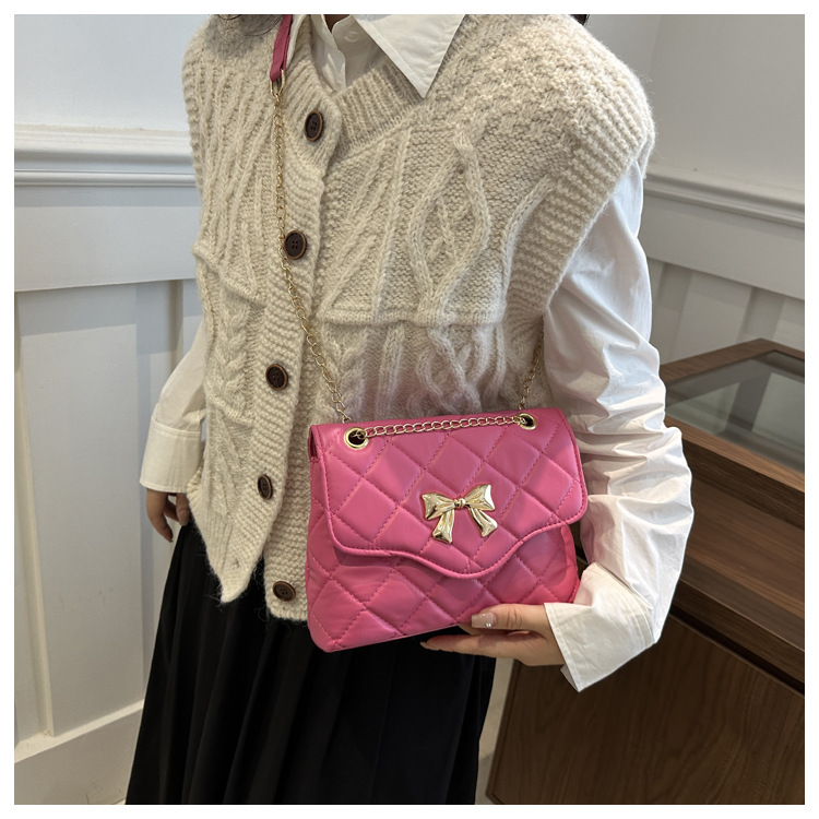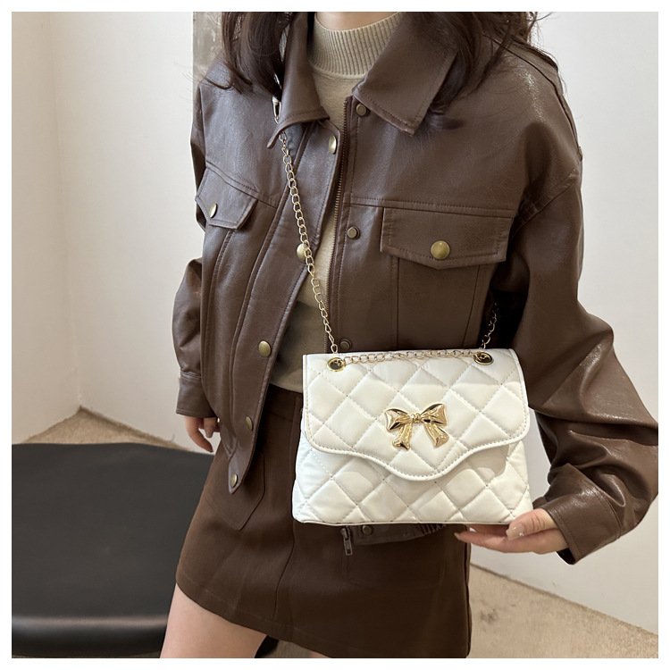 Moda versátil nuevo 2024 invierno de este año popular cadena de arco de diamante bolso de hombro pequeño bolso cuadrado para mujeres