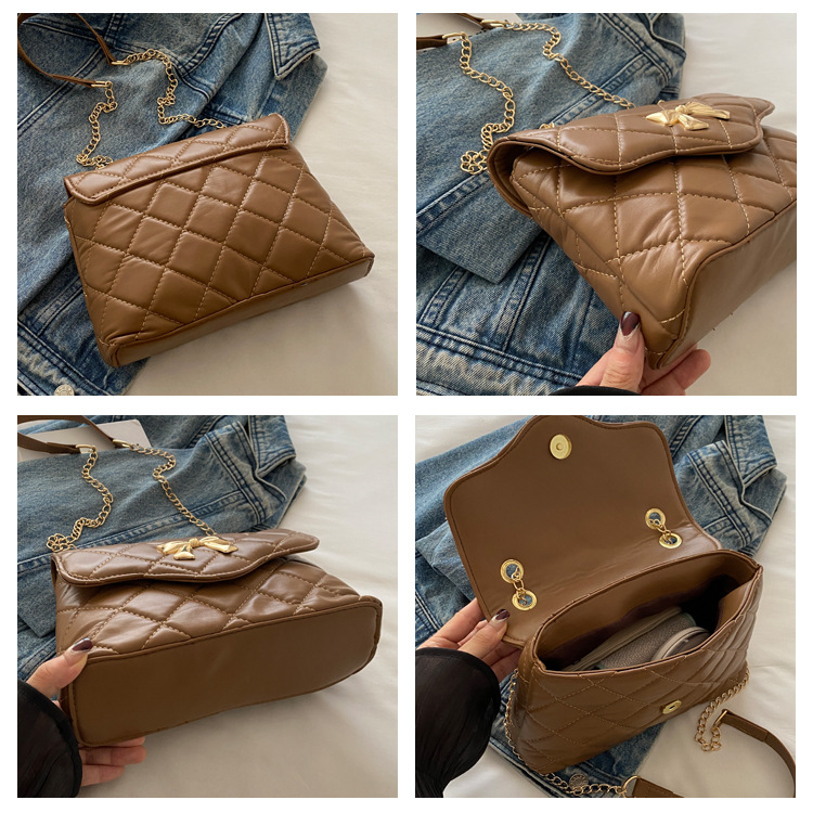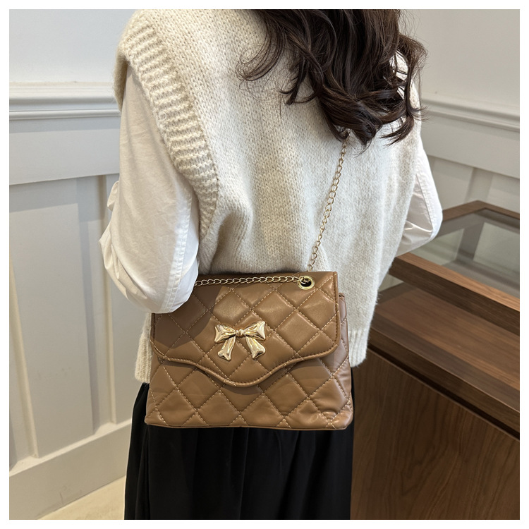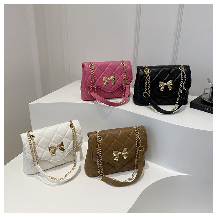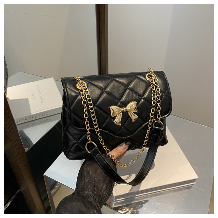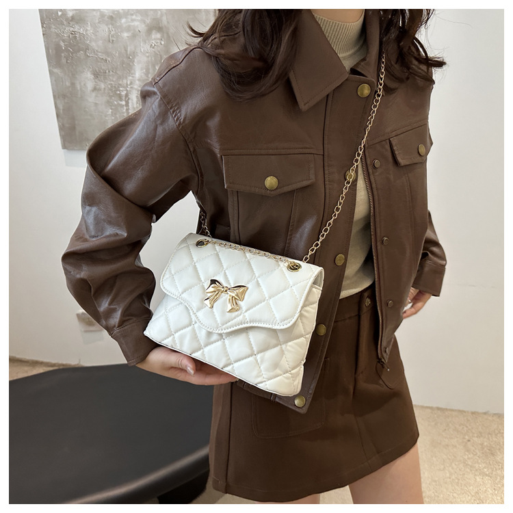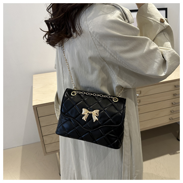 Moda versátil nuevo 2024 invierno de este año popular cadena de arco de diamante bolso de hombro pequeño bolso cuadrado para mujeres