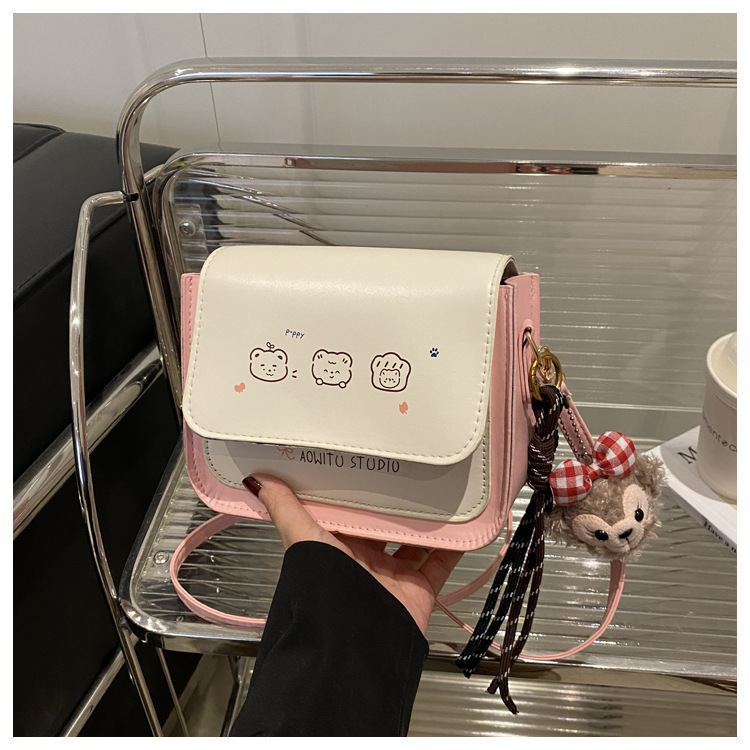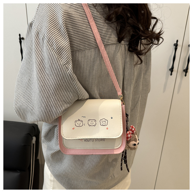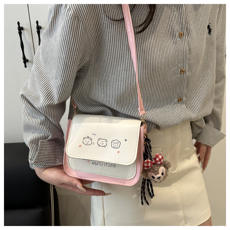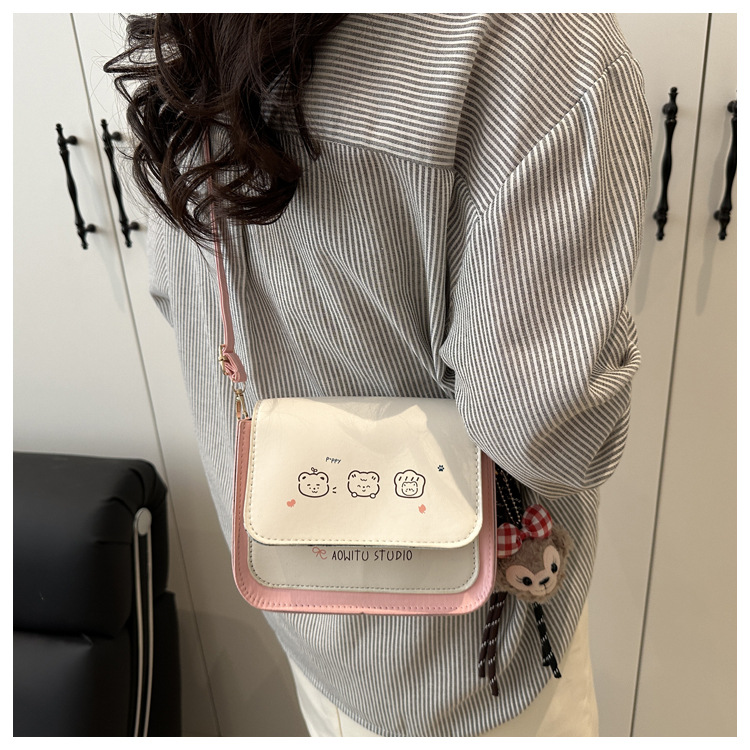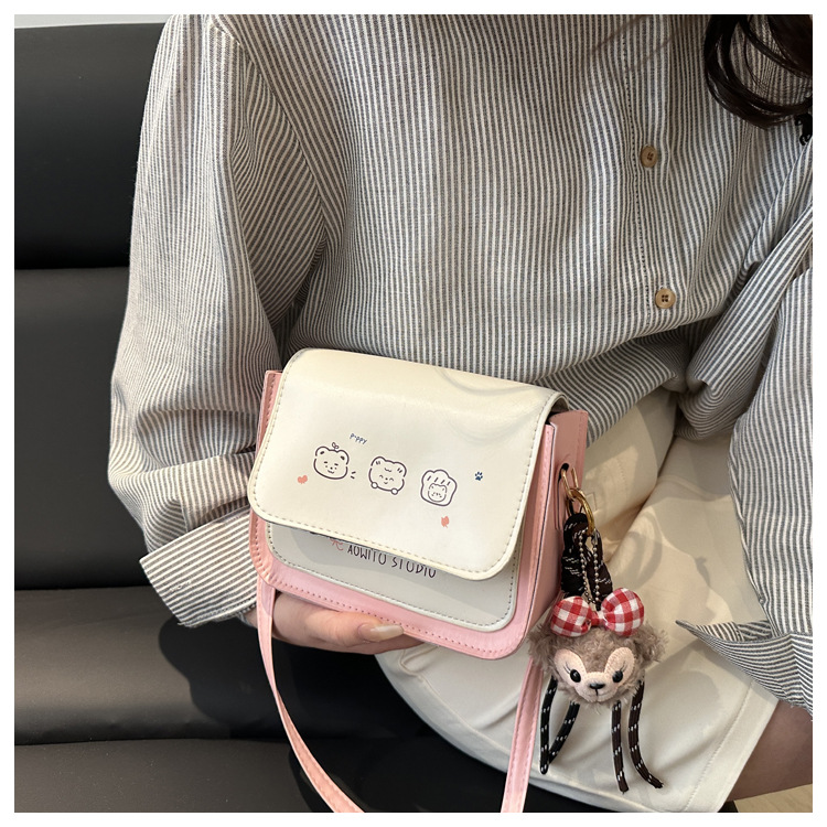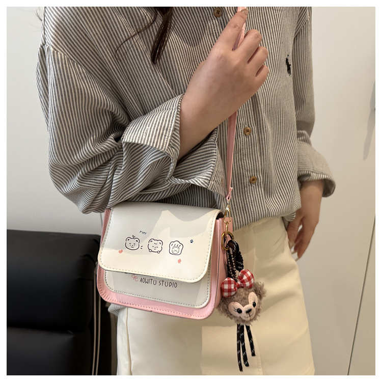 Bolso de mujer de color contrastante 2025 nuevo estilo de estilo de impresión de moda extranjera, bolso de hombro simple, bolso de mochila dulce