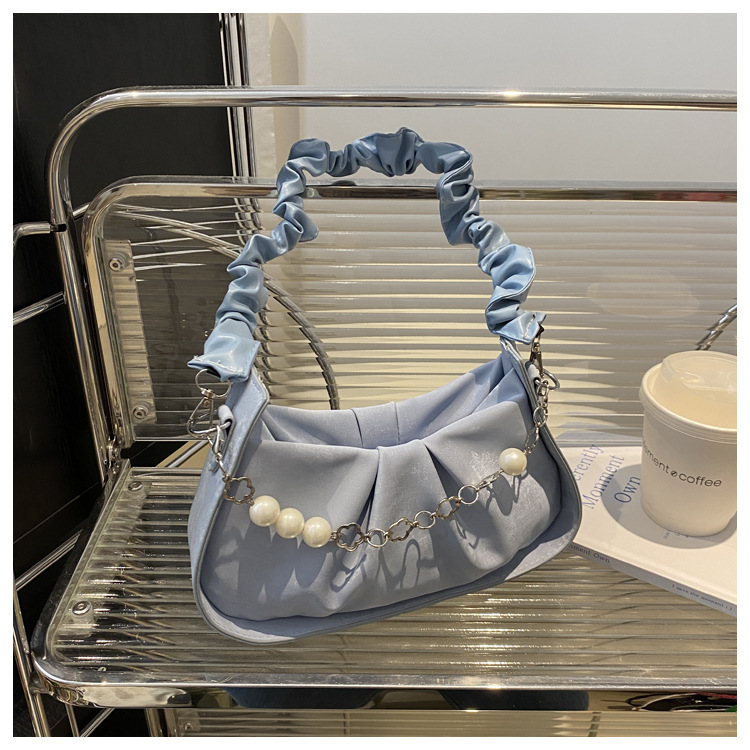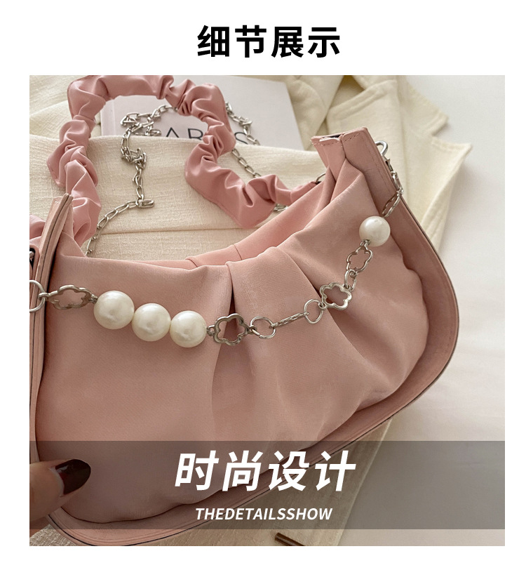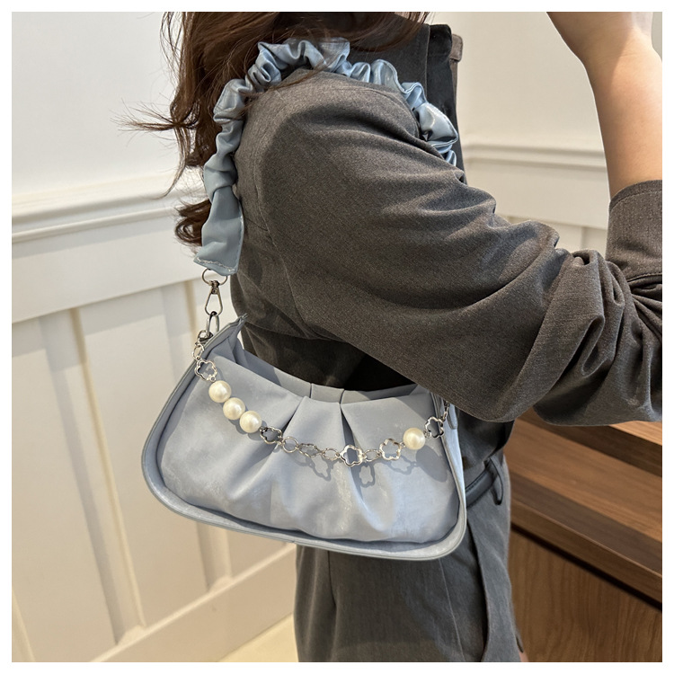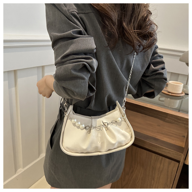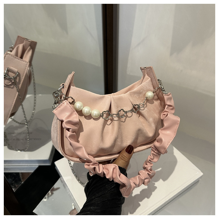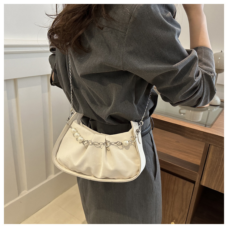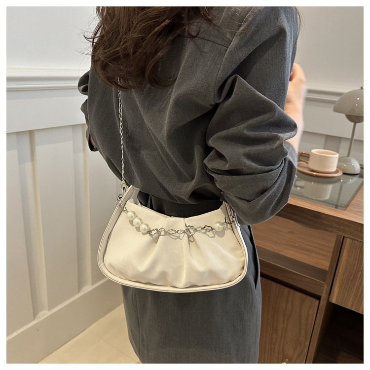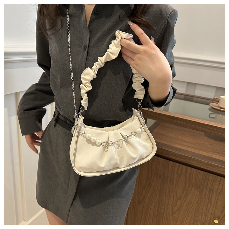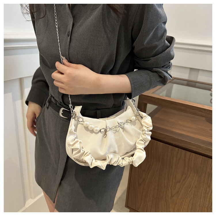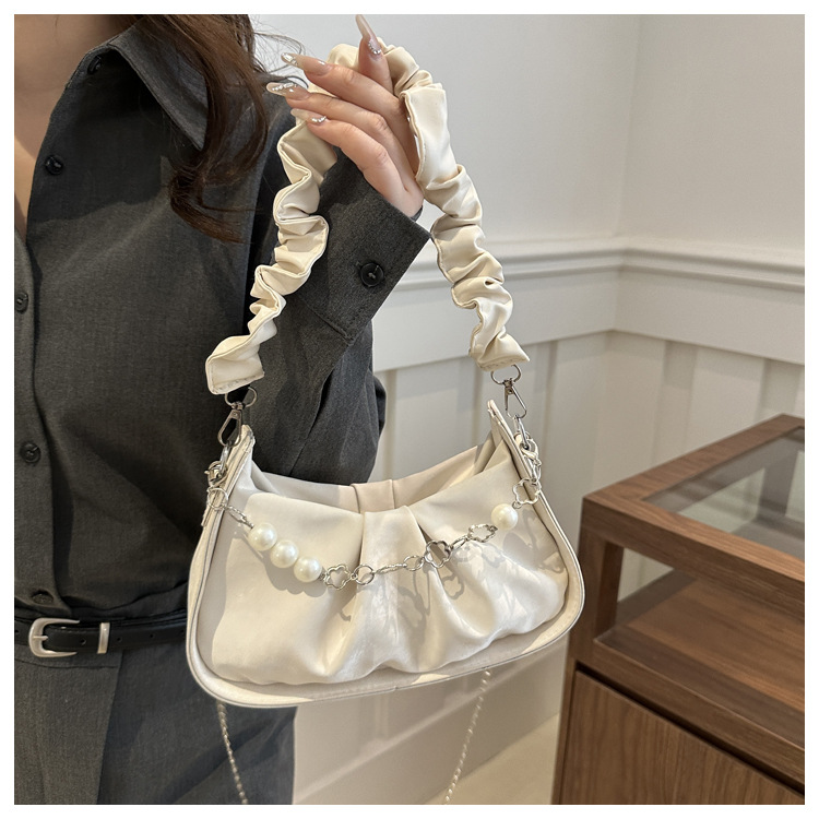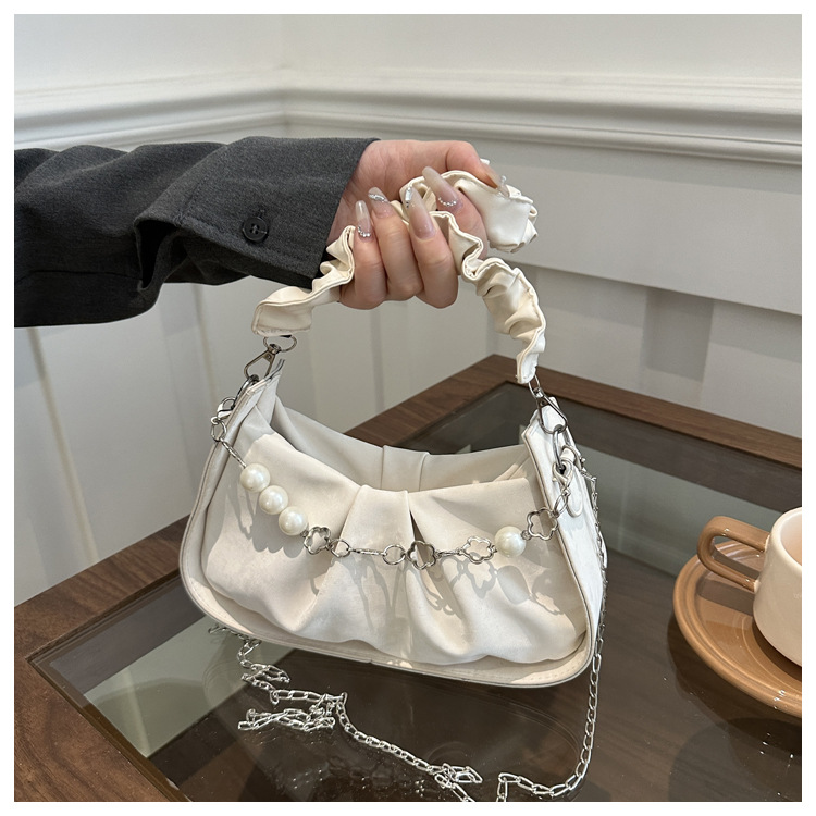 Diseño de nicho francés 2024 nuevo color sólido simple cadena de perlas de aire extranjero plegado versátil bolso de mochila pequeña moda