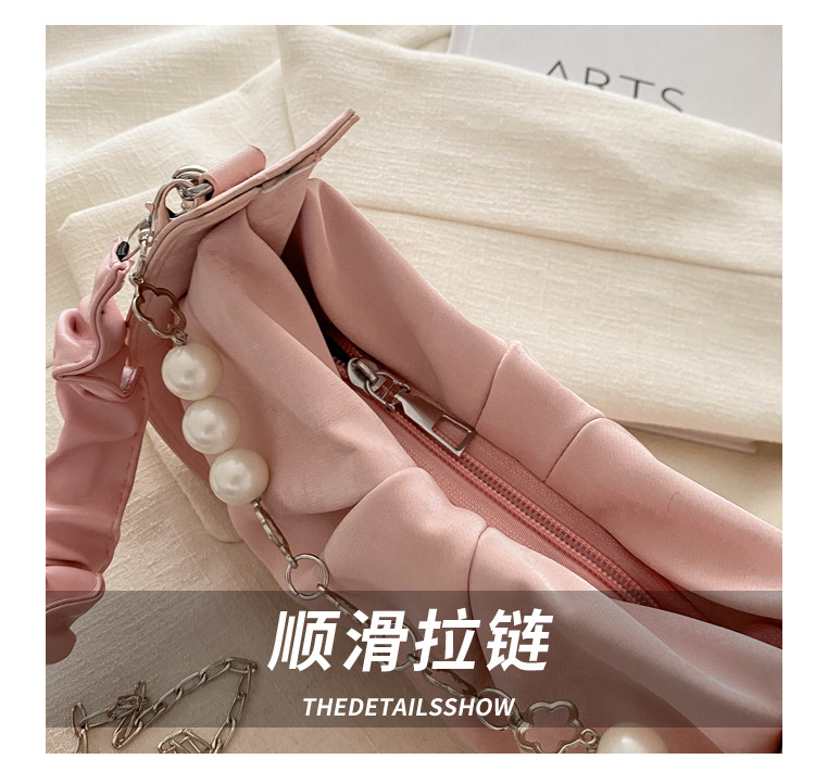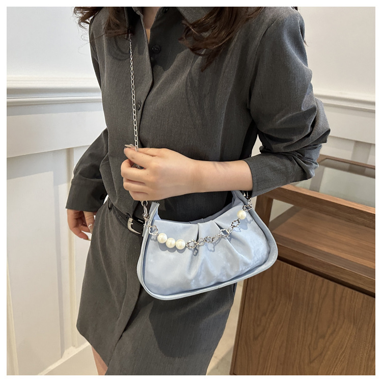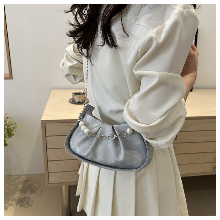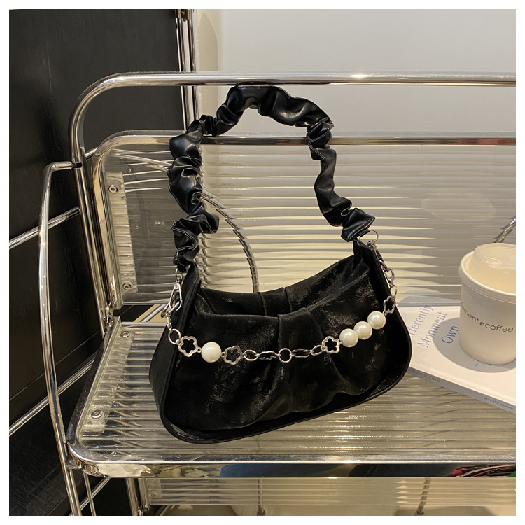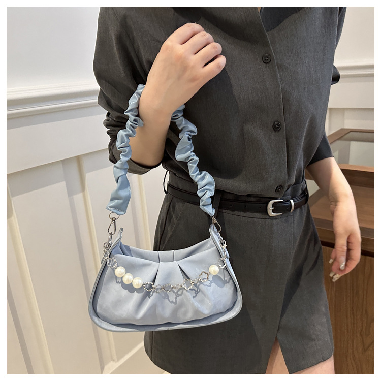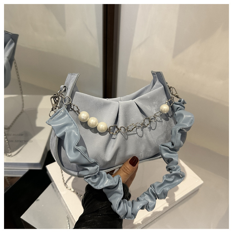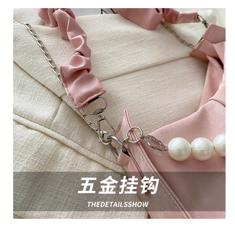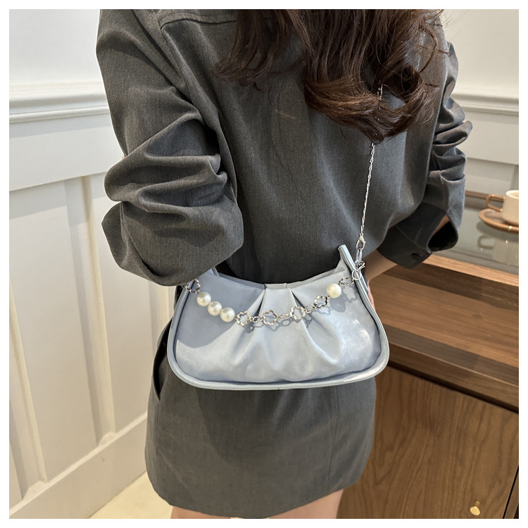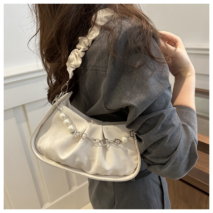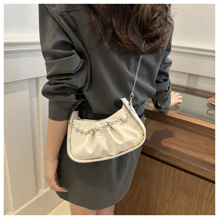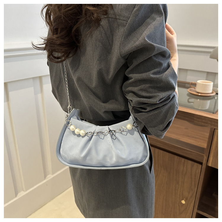 Diseño de nicho francés 2024 nuevo color sólido simple cadena de perlas de aire extranjero plegado versátil bolso de mochila pequeña moda