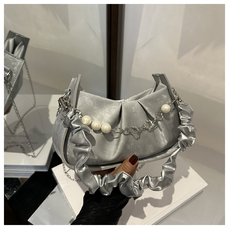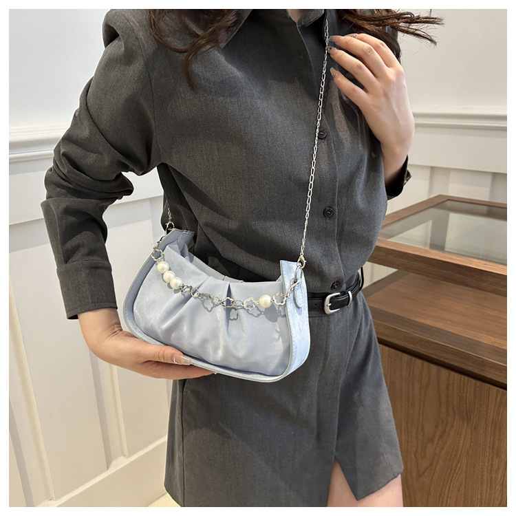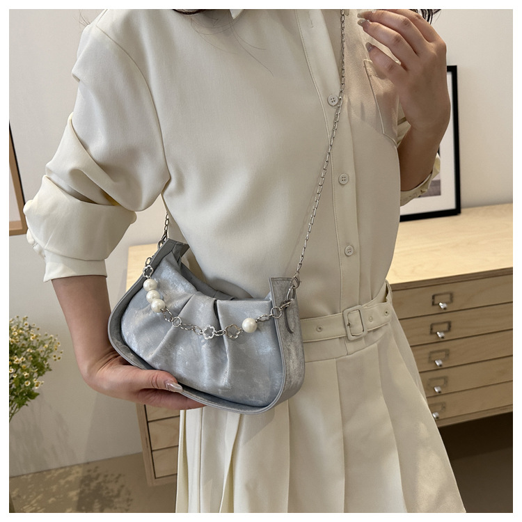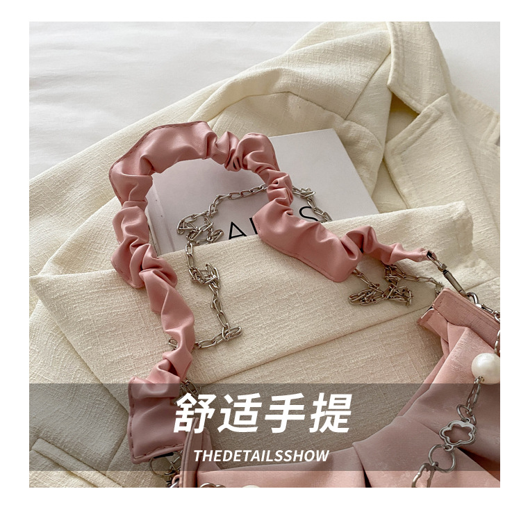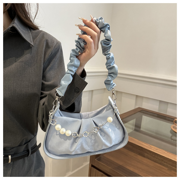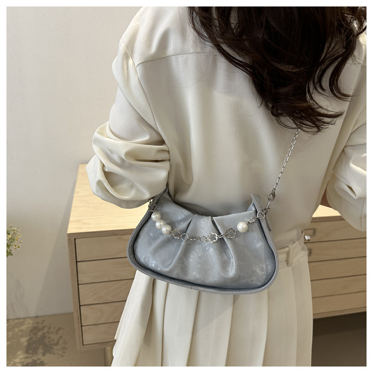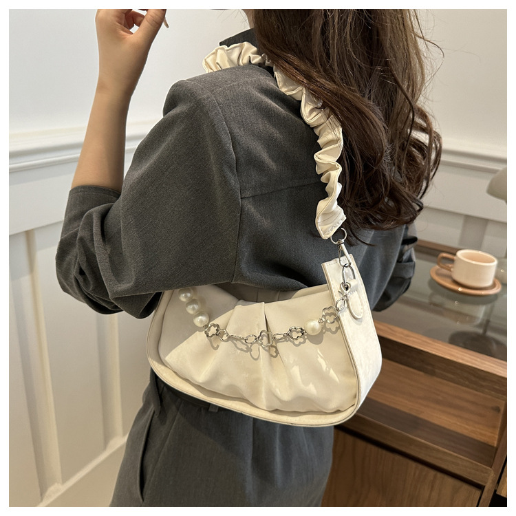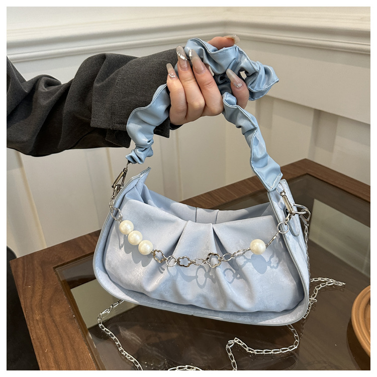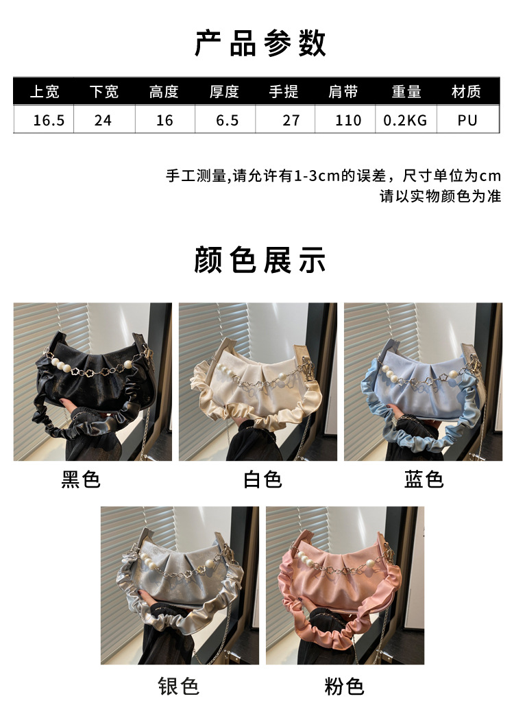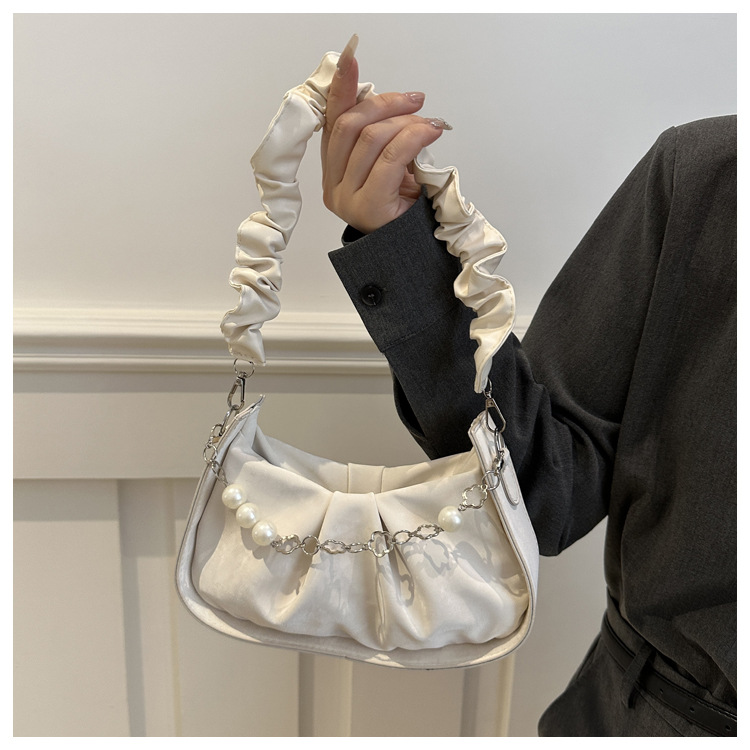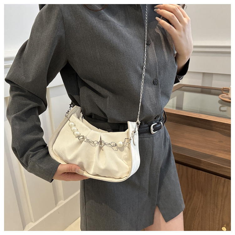 Diseño de nicho francés 2024 nuevo color sólido simple cadena de perlas de aire extranjero plegado versátil bolso de mochila pequeña moda