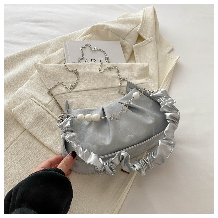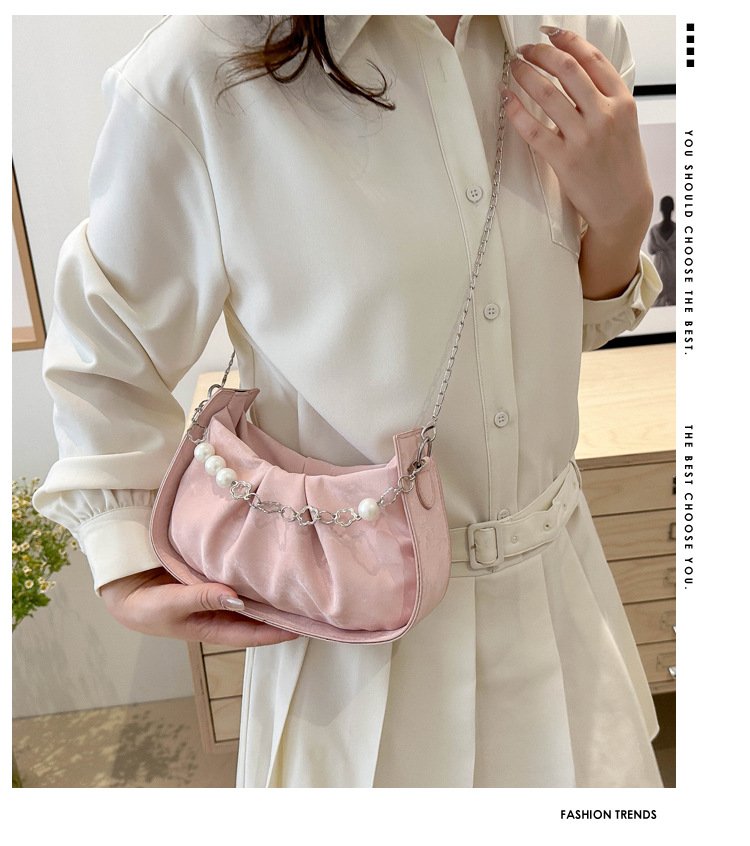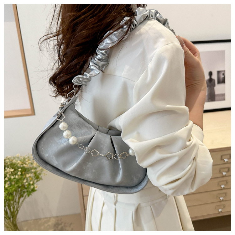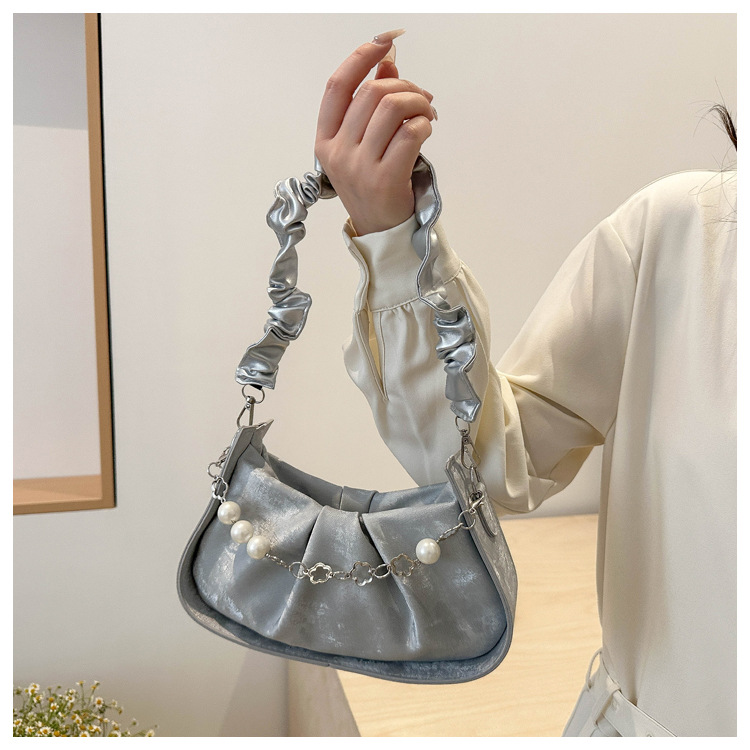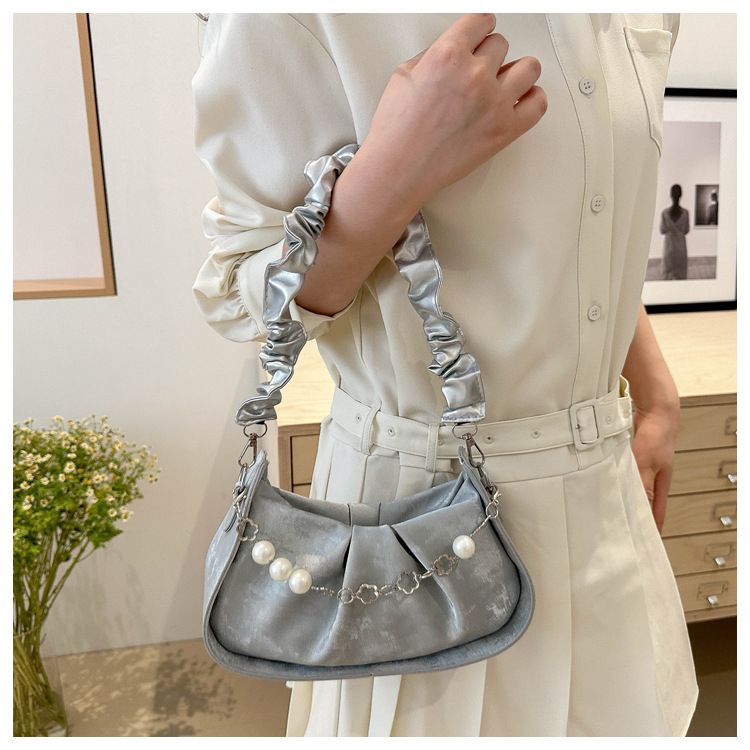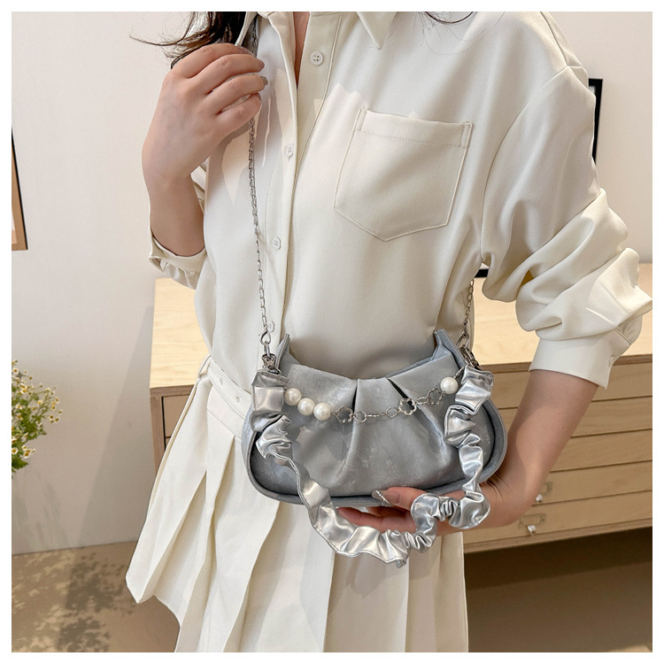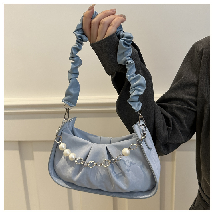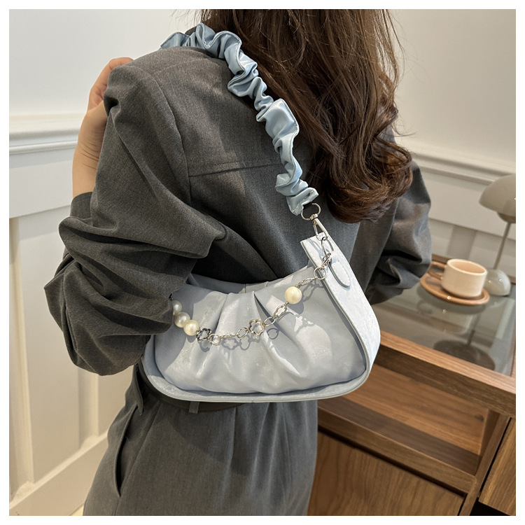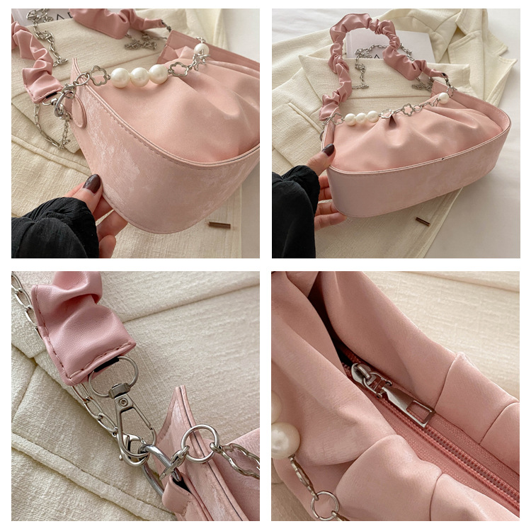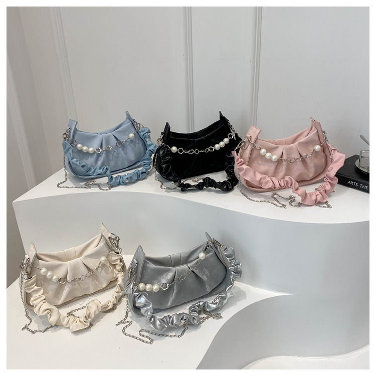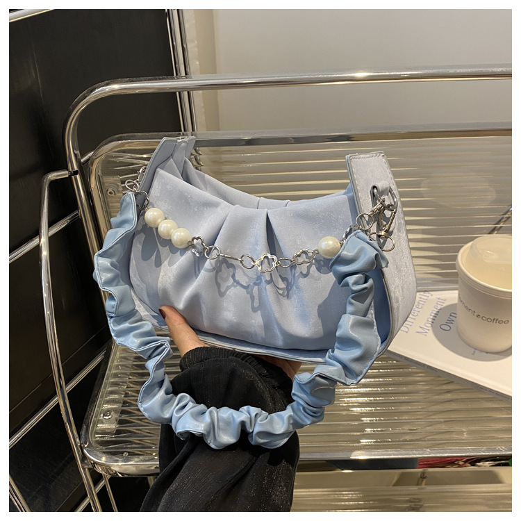 Diseño de nicho francés 2024 nuevo color sólido simple cadena de perlas de aire extranjero plegado versátil bolso de mochila pequeña moda