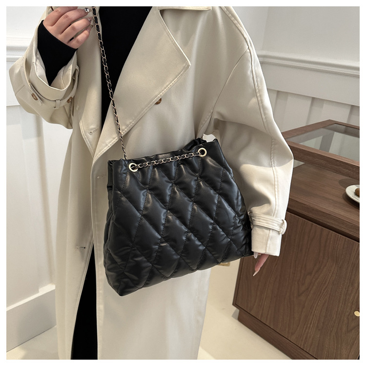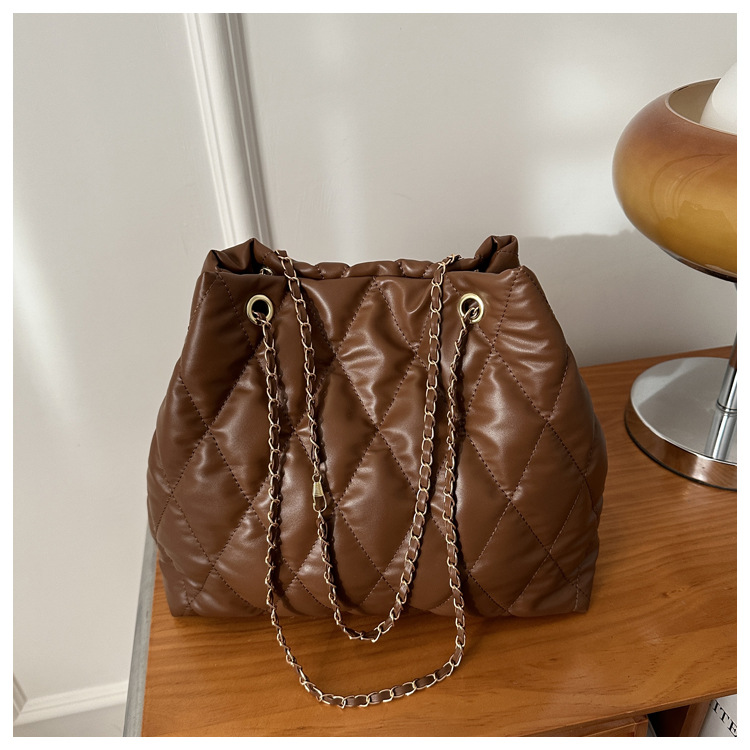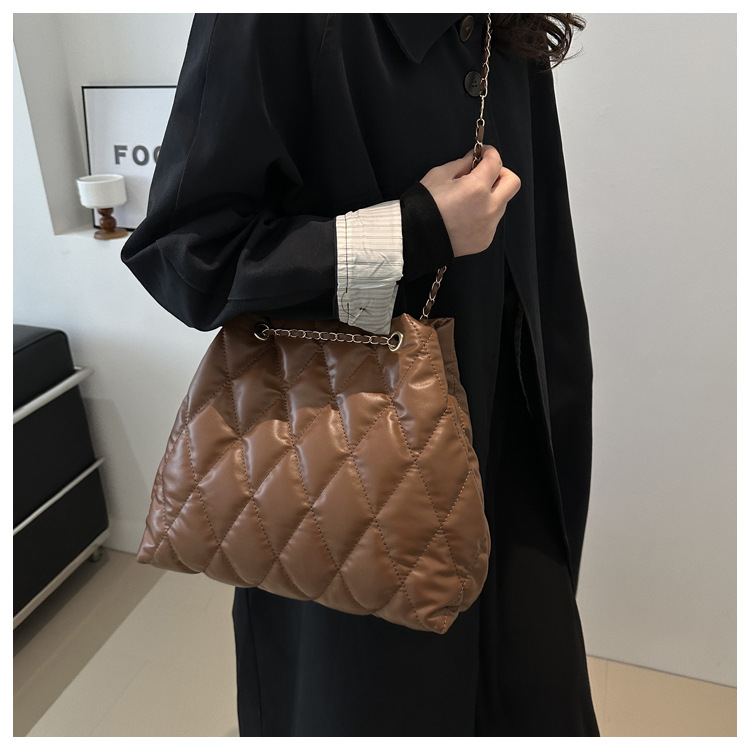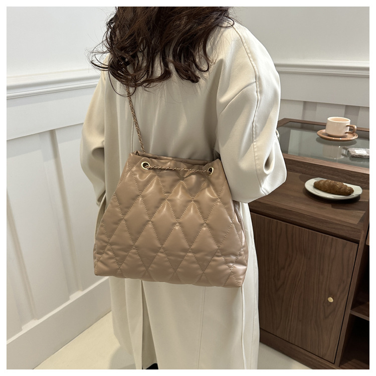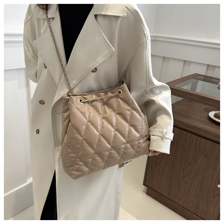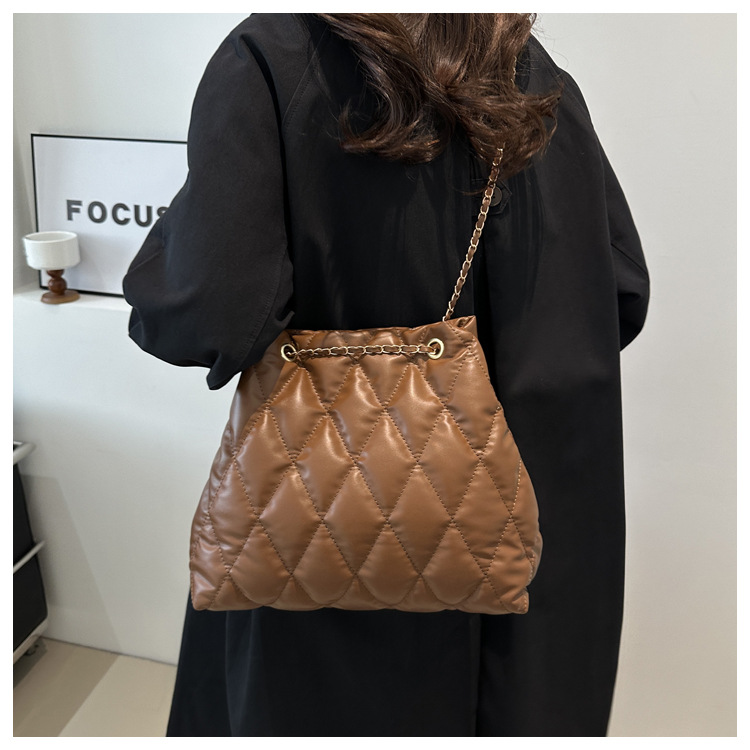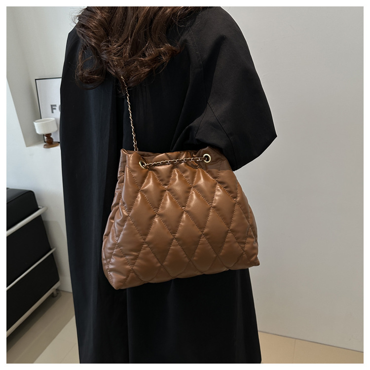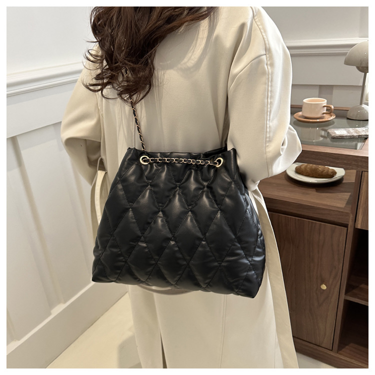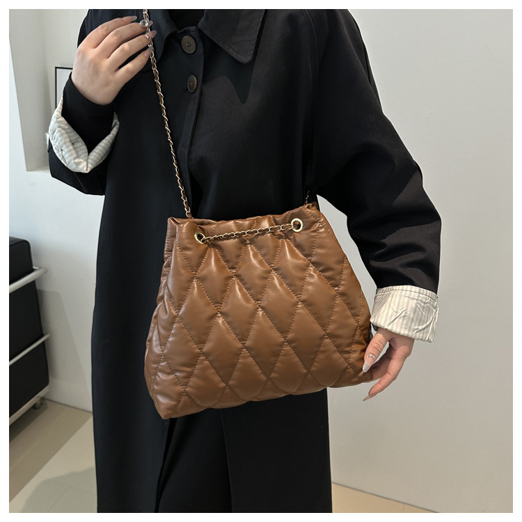 2024 invierno nueva cadena rombo solo hombro bolso de las axilas Moda casual personalizada bolsa de cubo del todo-fósforo de las mujeres