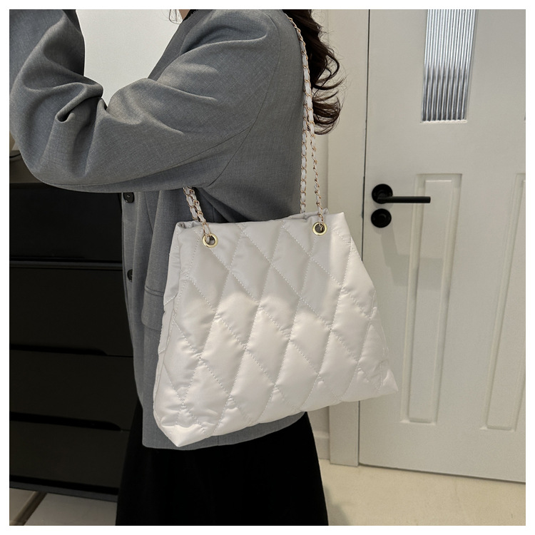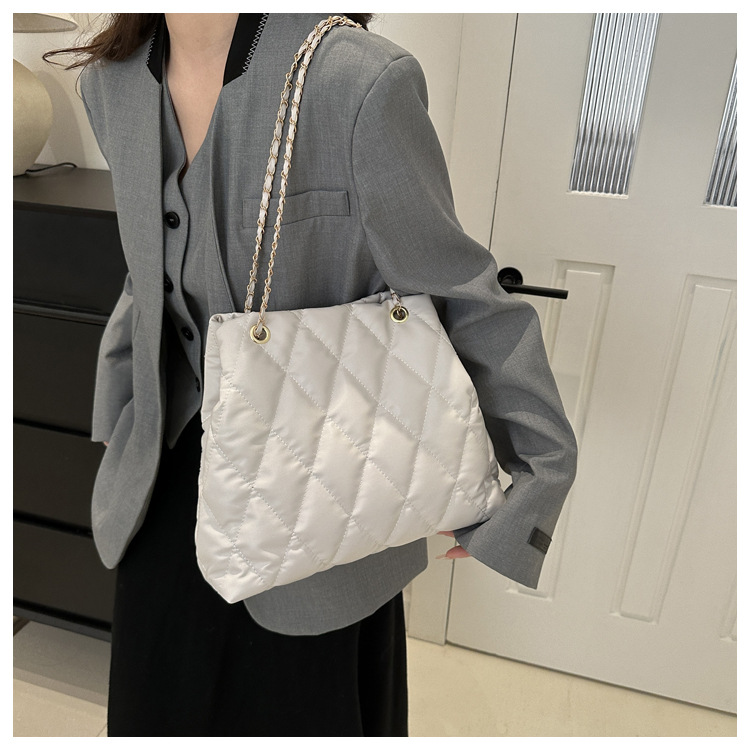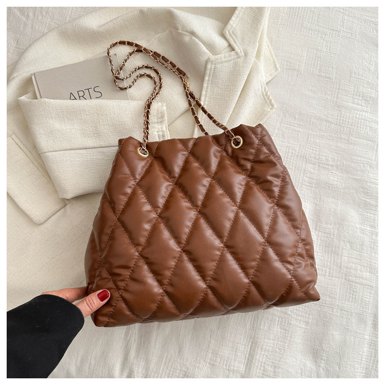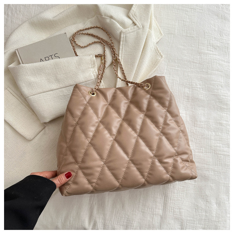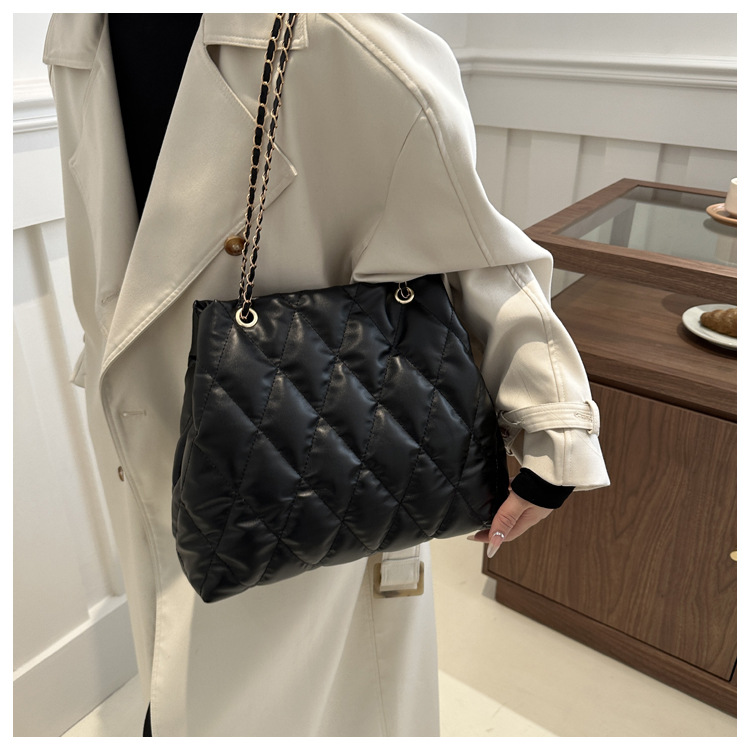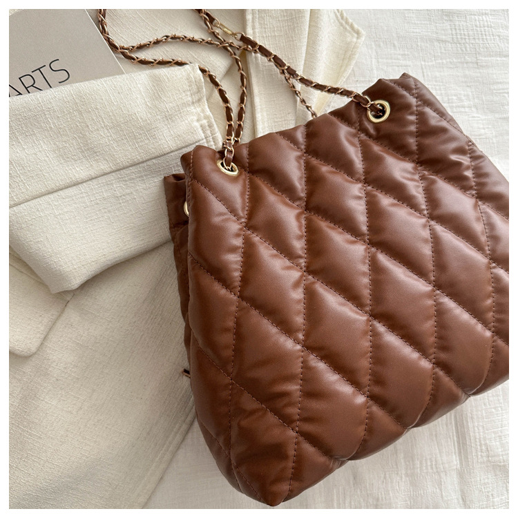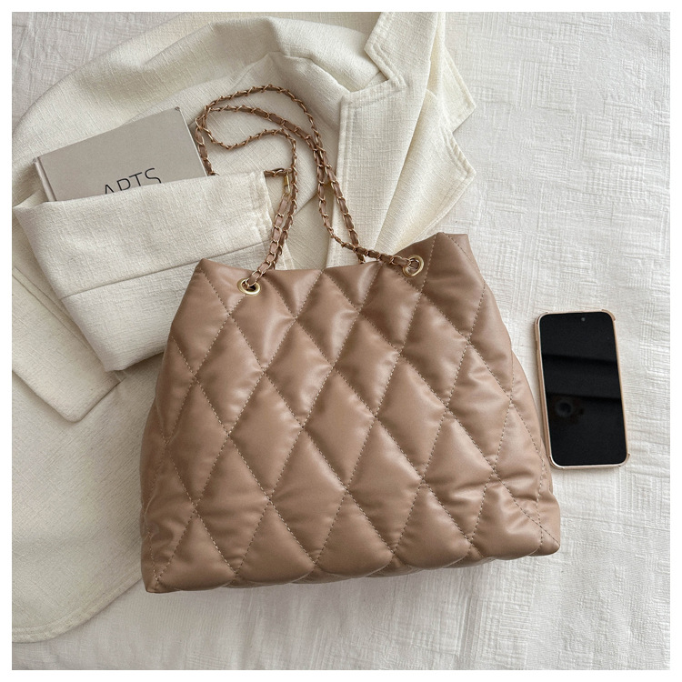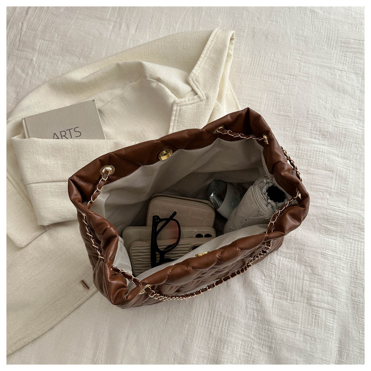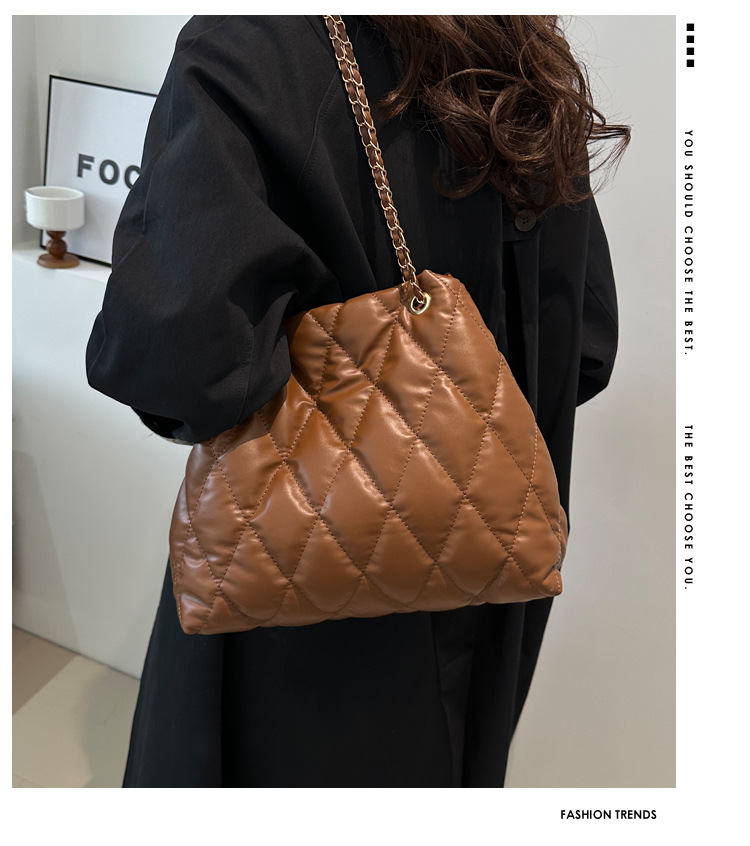 2024 invierno nueva cadena rombo solo hombro bolso de las axilas Moda casual personalizada bolsa de cubo del todo-fósforo de las mujeres
