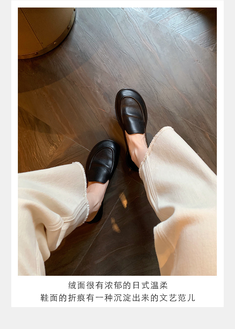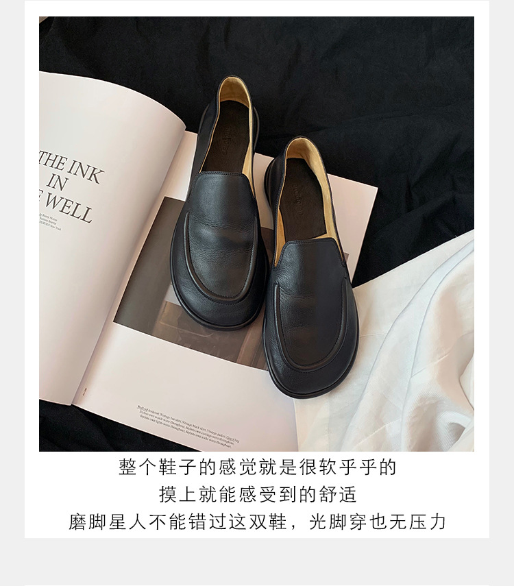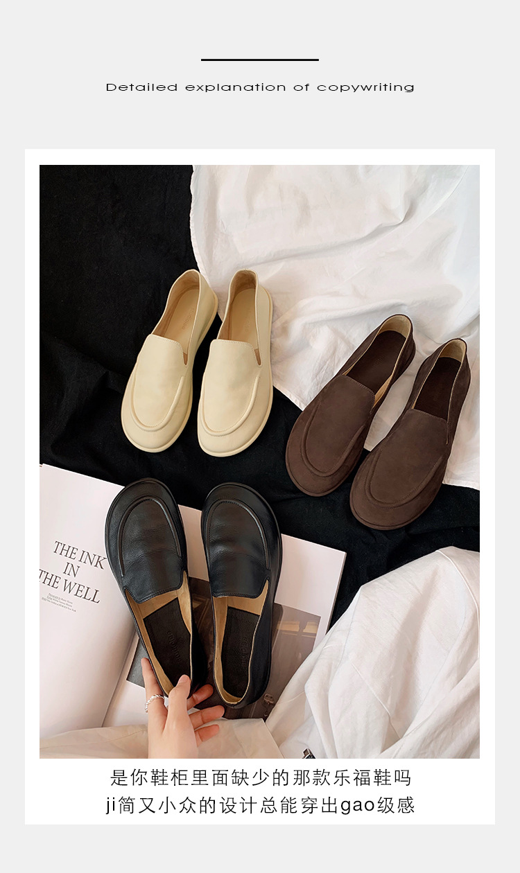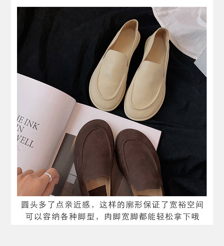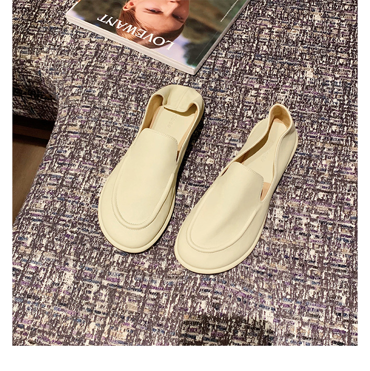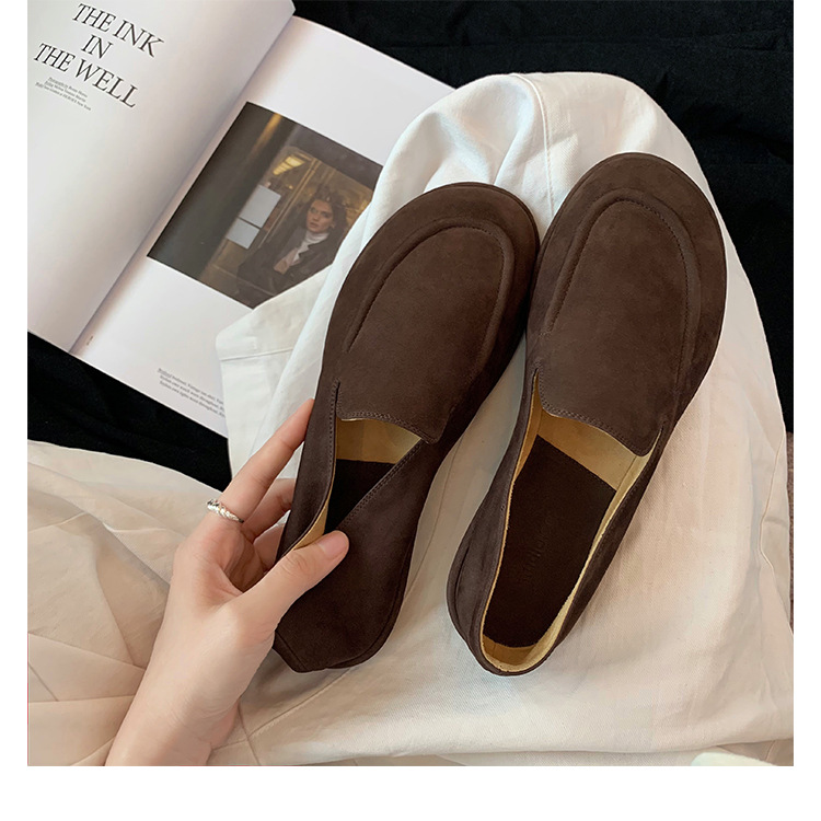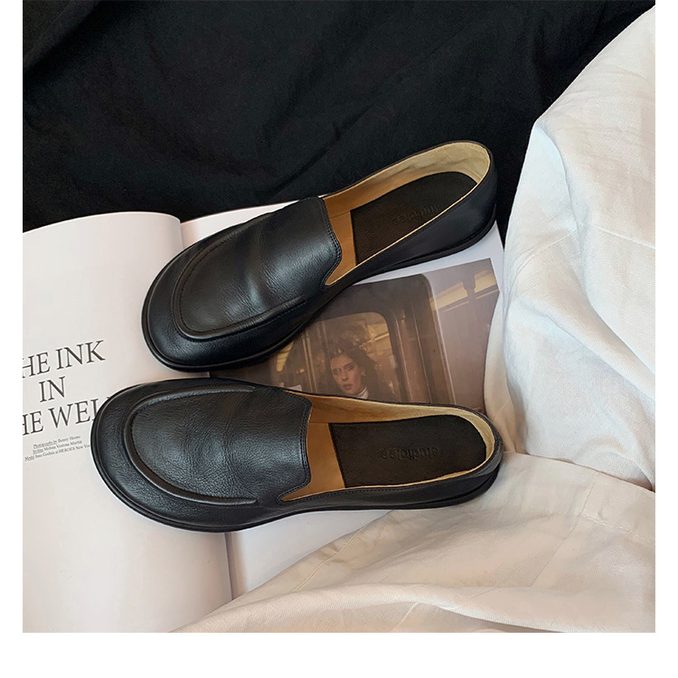 Versión de piel de oveja de la madre de la uva con el mismo estilo de los zapatos individuales de la nube de la cabeza redonda, un pie, zapatos suaves y cerosos de todo fósforo, zapatos de cuero para mujer