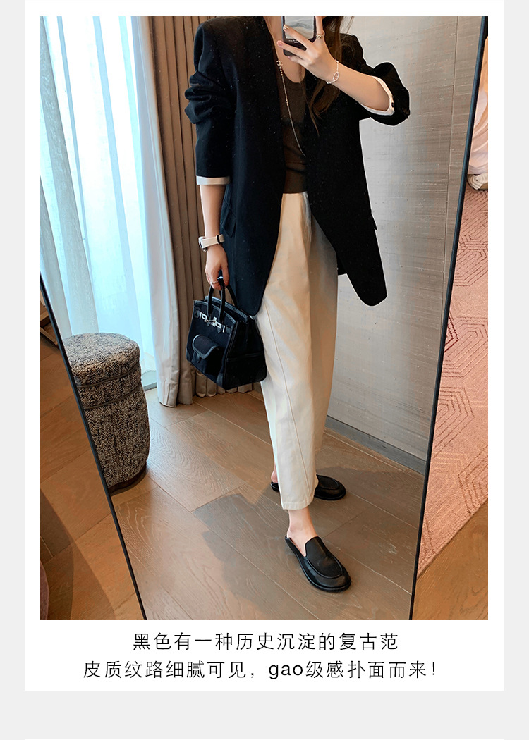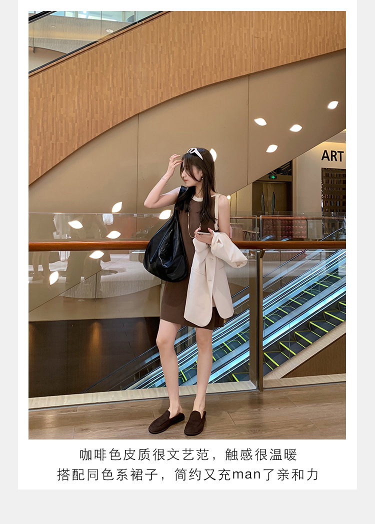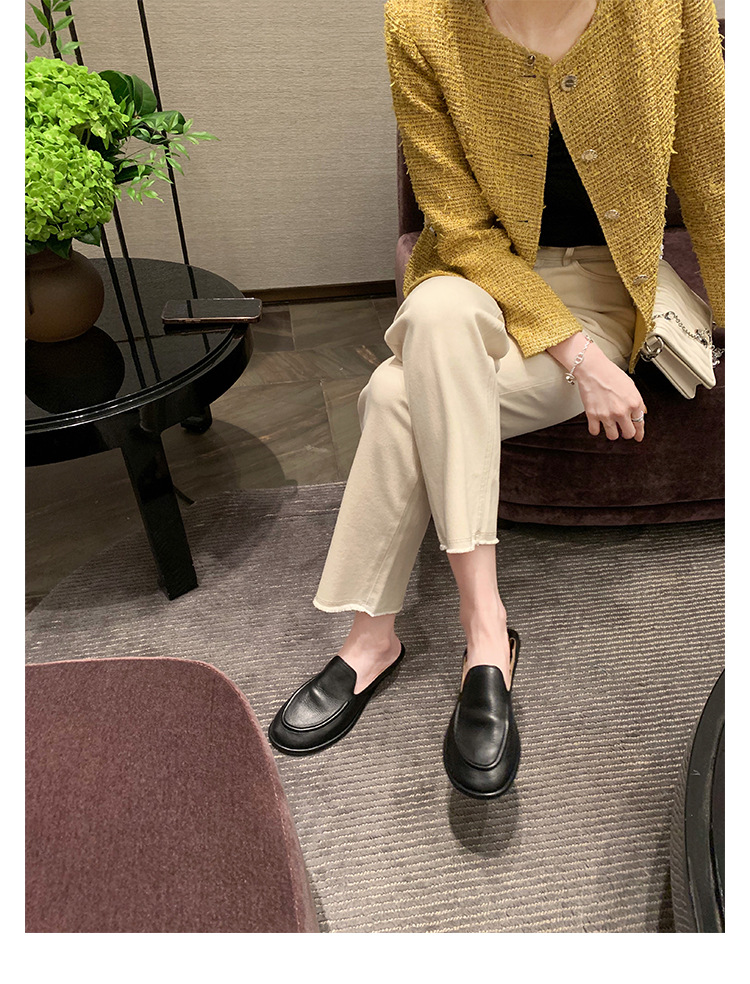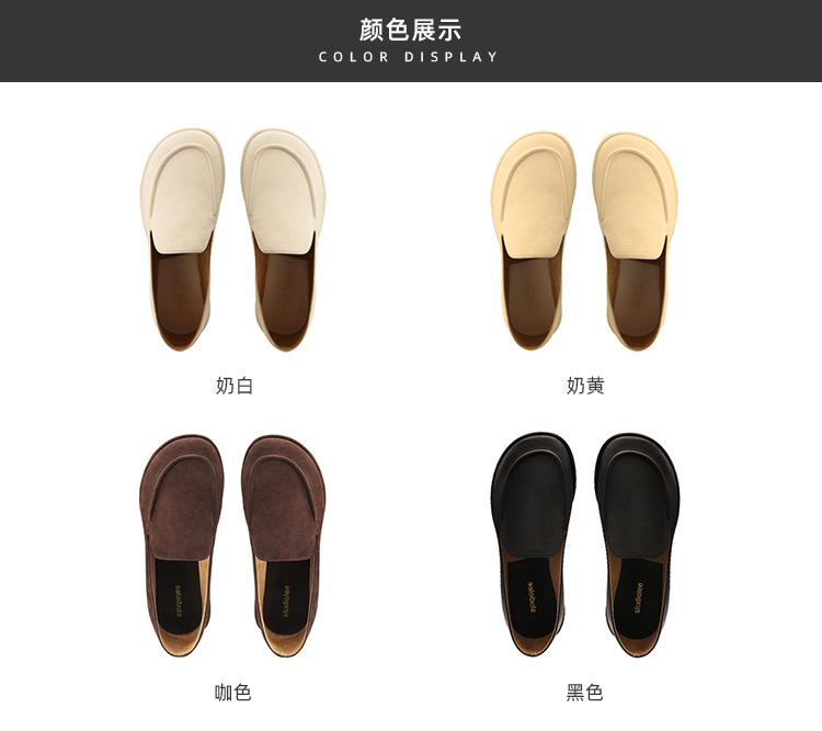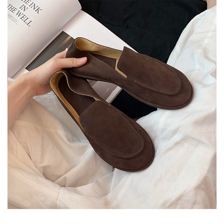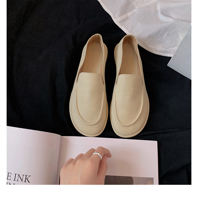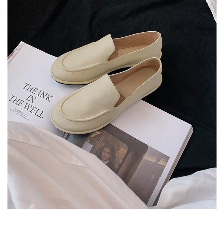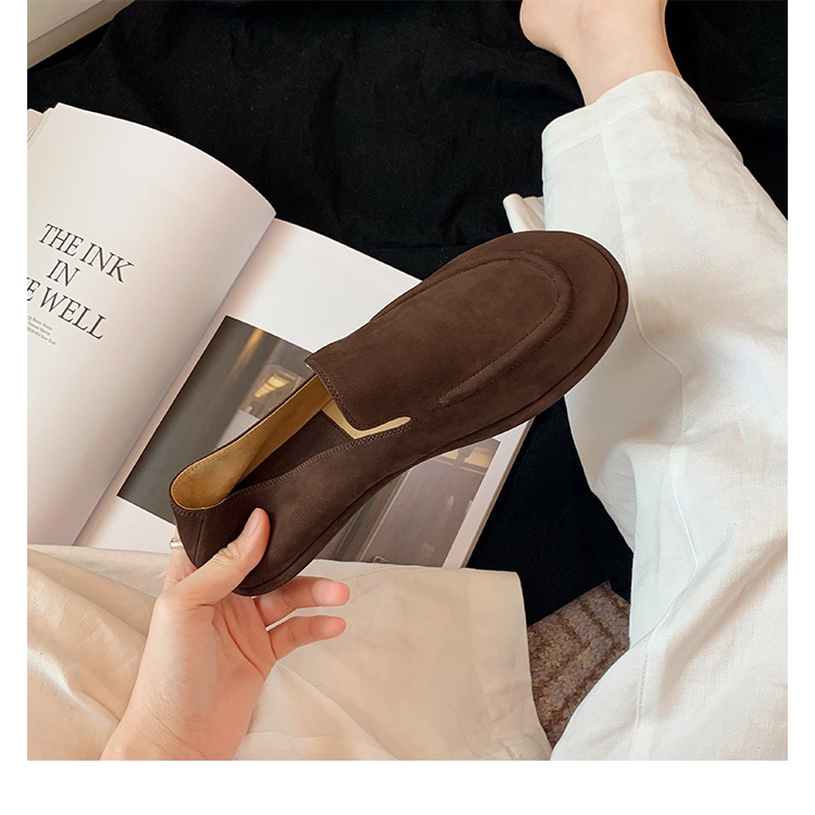 Versión de piel de oveja de la madre de la uva con el mismo estilo de los zapatos individuales de la nube de la cabeza redonda, un pie, zapatos suaves y cerosos de todo fósforo, zapatos de cuero para mujer