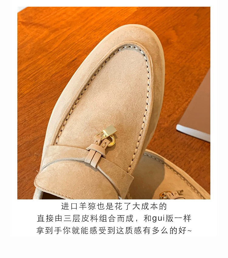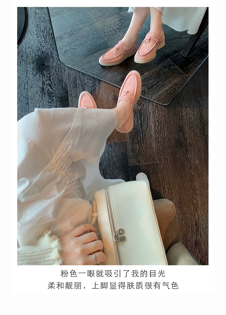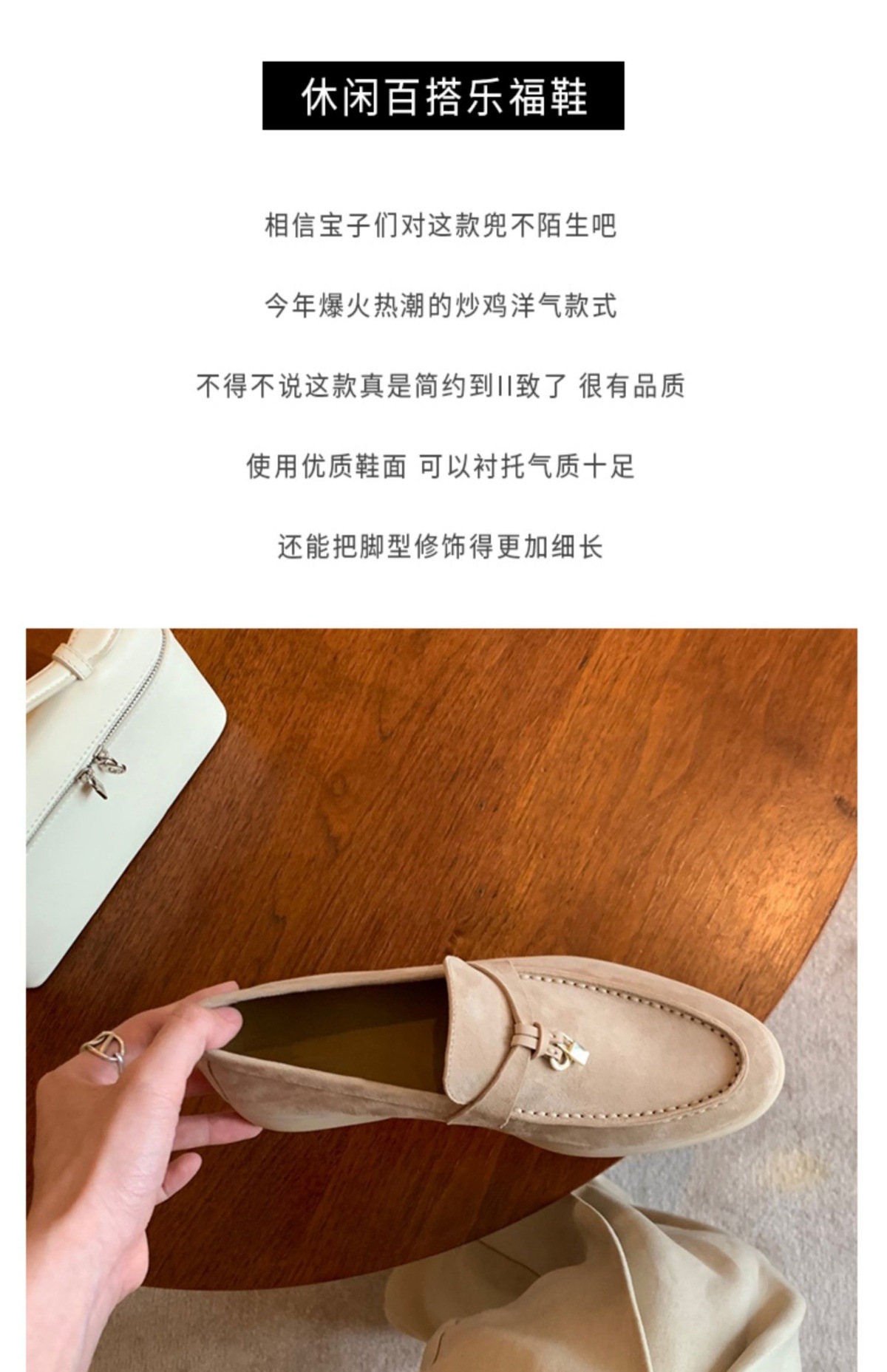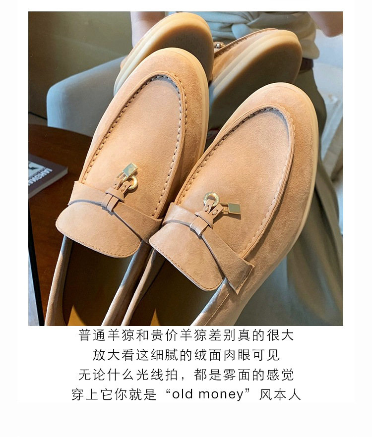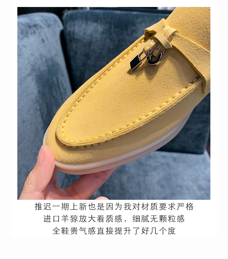 Versión de piel de oveja ~ LP Lips Lock Buckle zapatos de Lefour para mujeres con una sola sola pie perezosa con una sola pie de zapatos de cachemir de frijol suave