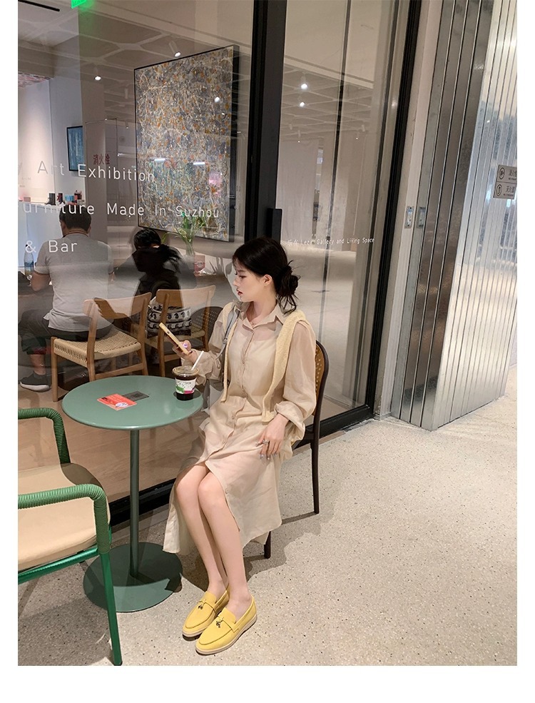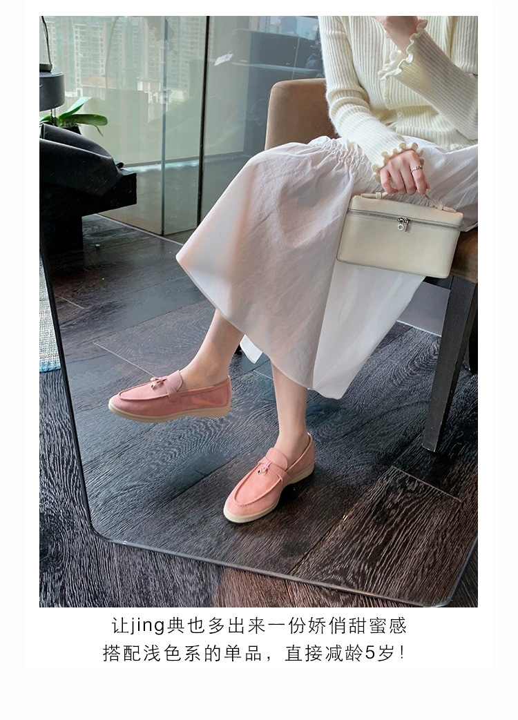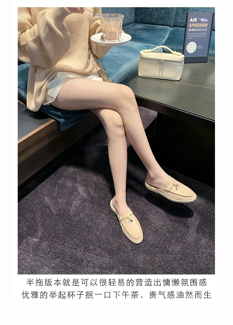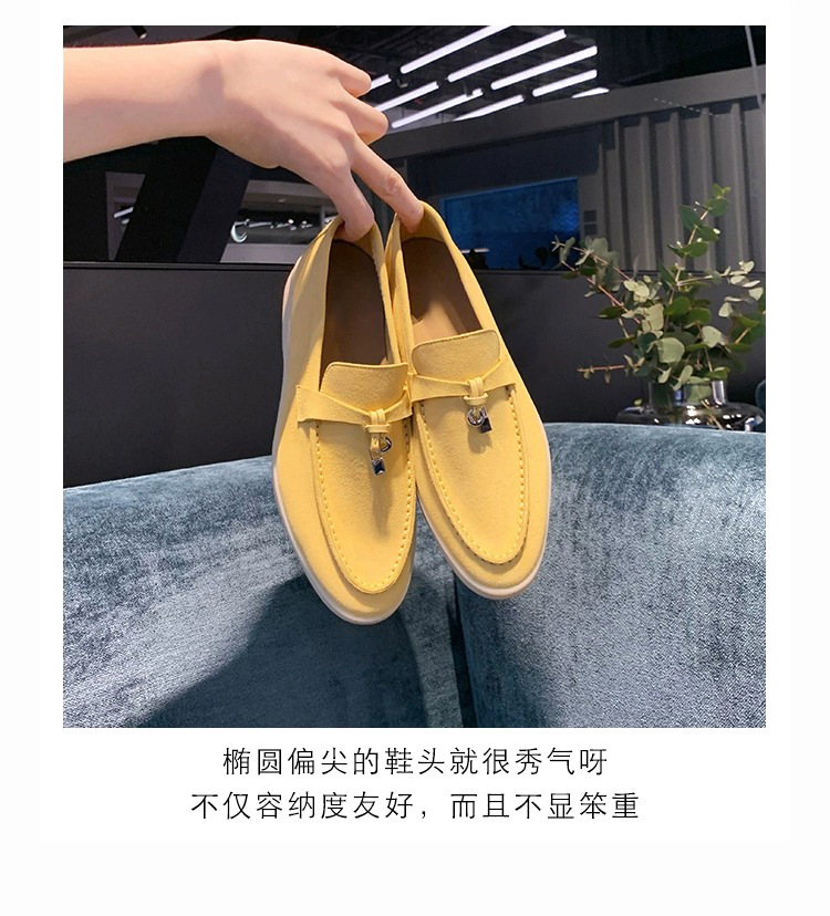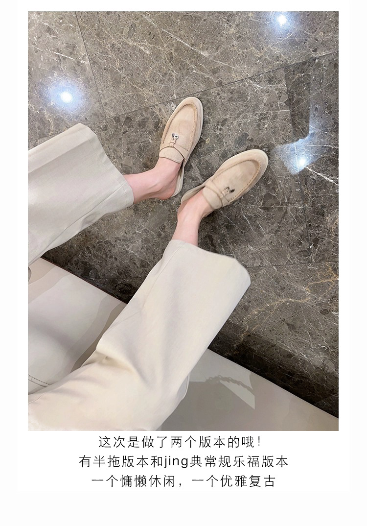 Versión de piel de oveja ~ LP Lips Lock Buckle zapatos de Lefour para mujeres con una sola sola pie perezosa con una sola pie de zapatos de cachemir de frijol suave