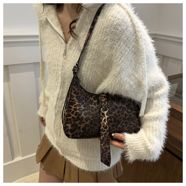 2024 red retro nicho leopardo bolso de brazo otoño invierno nuevo estilo de moda temperamento casual de trabajo viaje bolsa de hombro