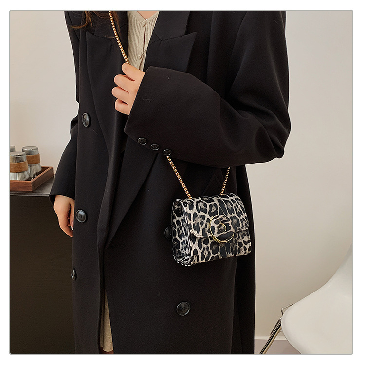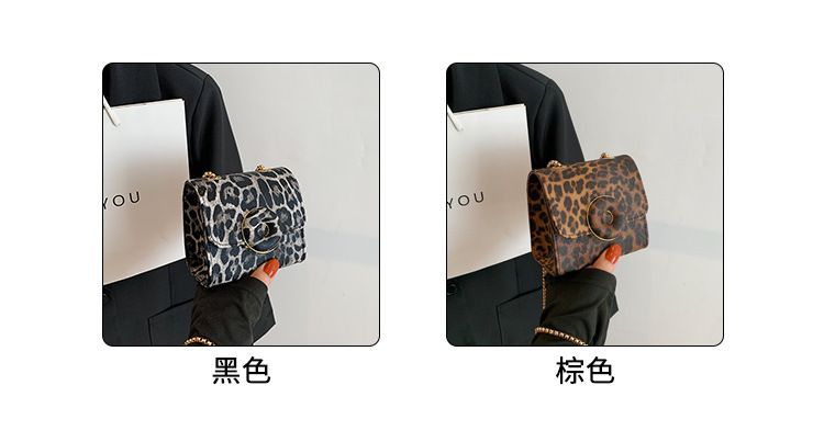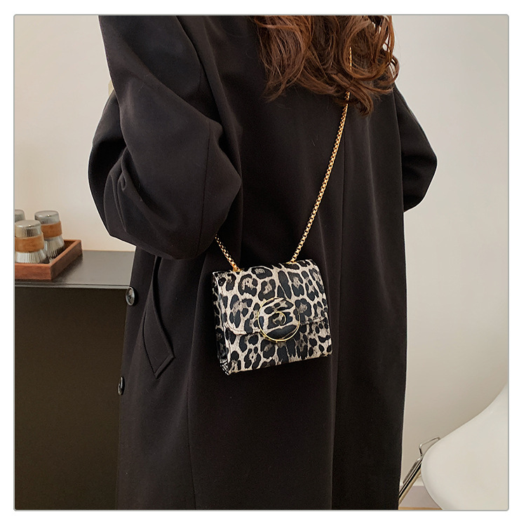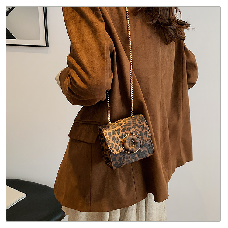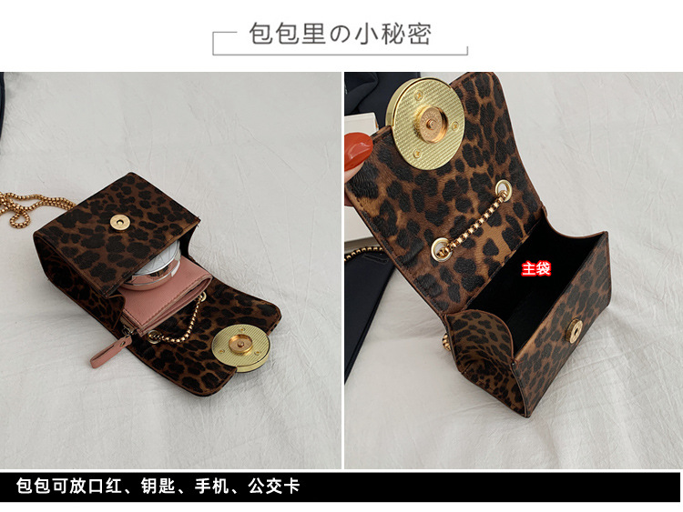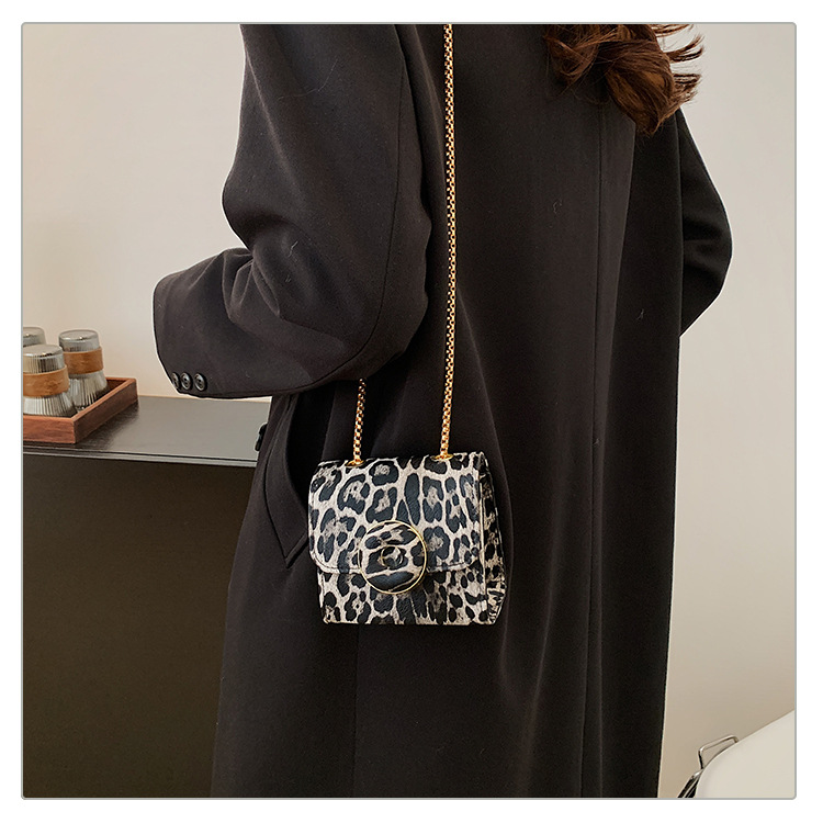 2024 otoño y invierno nueva moda estampada de leopardo de un solo hombro temperamento nicho de alta calidad cadena bolso de mochila pequeña bolsa cuadrada estilo extranjero