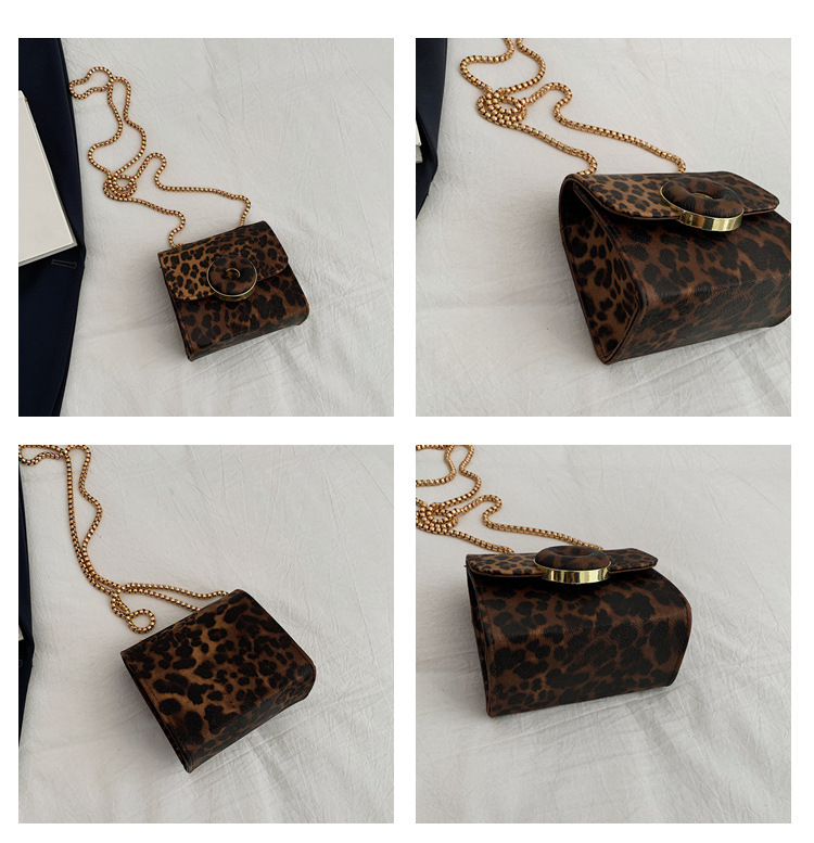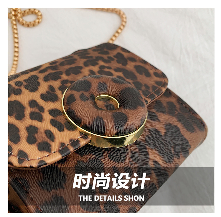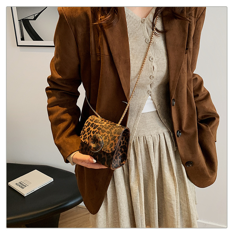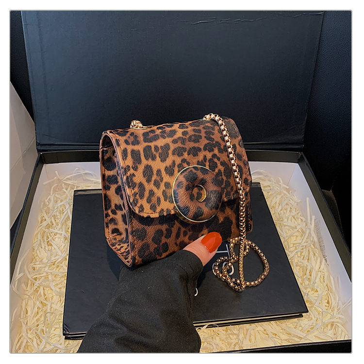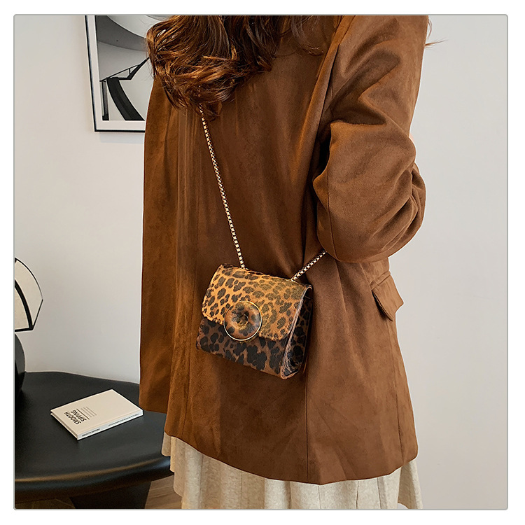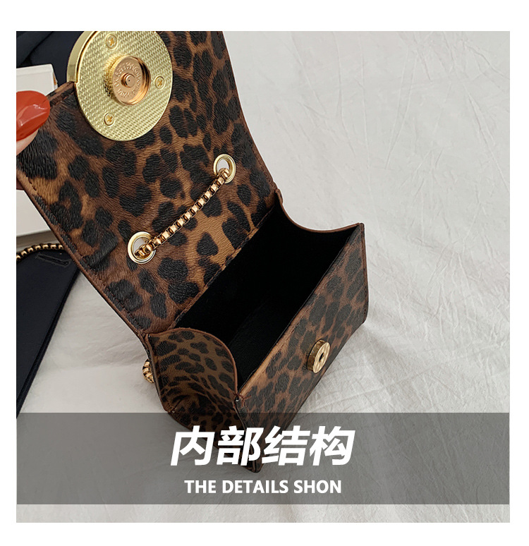 2024 otoño y invierno nueva moda estampada de leopardo de un solo hombro temperamento nicho de alta calidad cadena bolso de mochila pequeña bolsa cuadrada estilo extranjero
