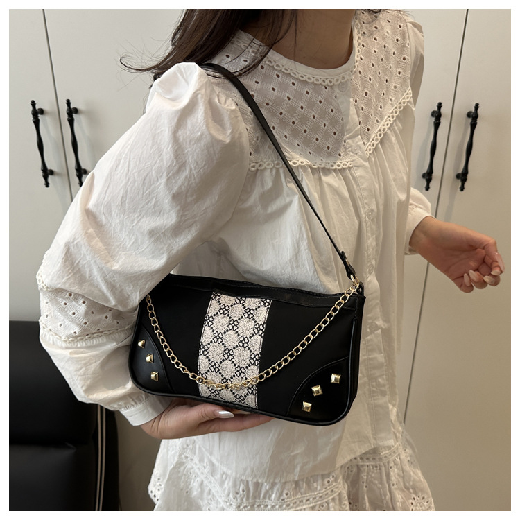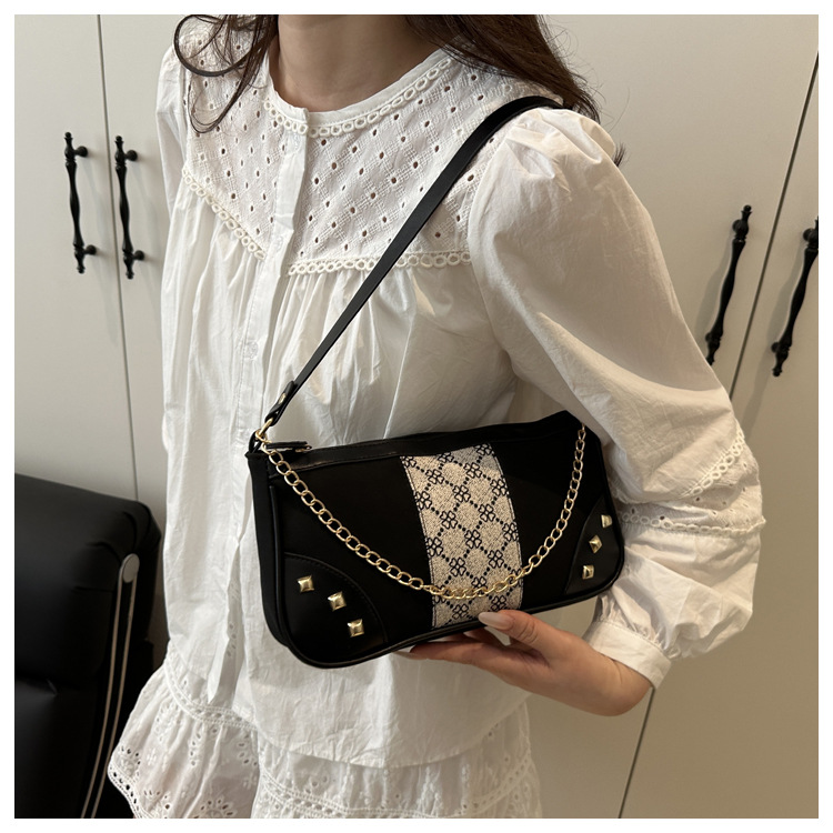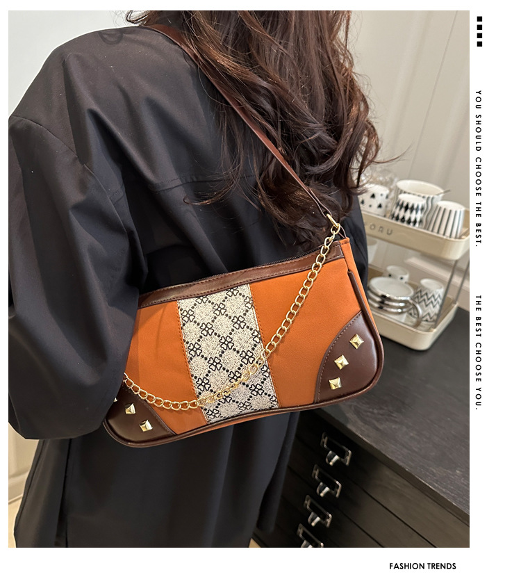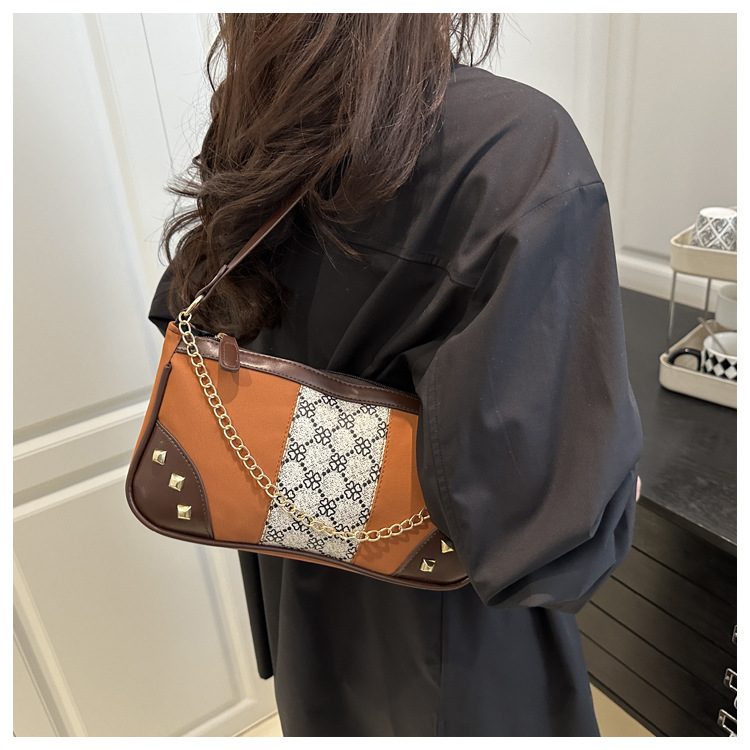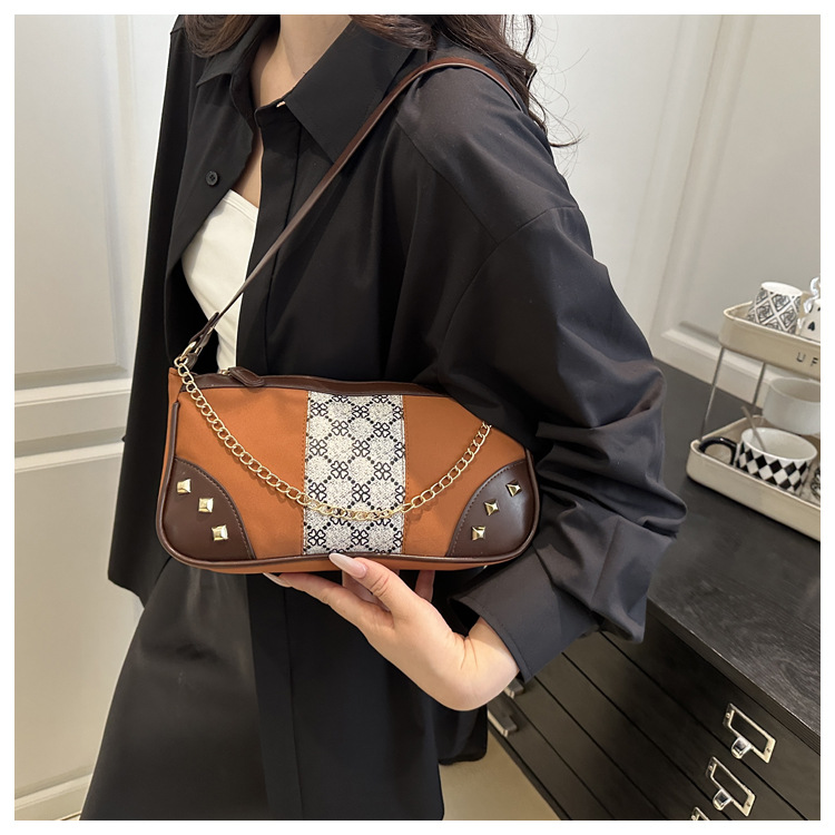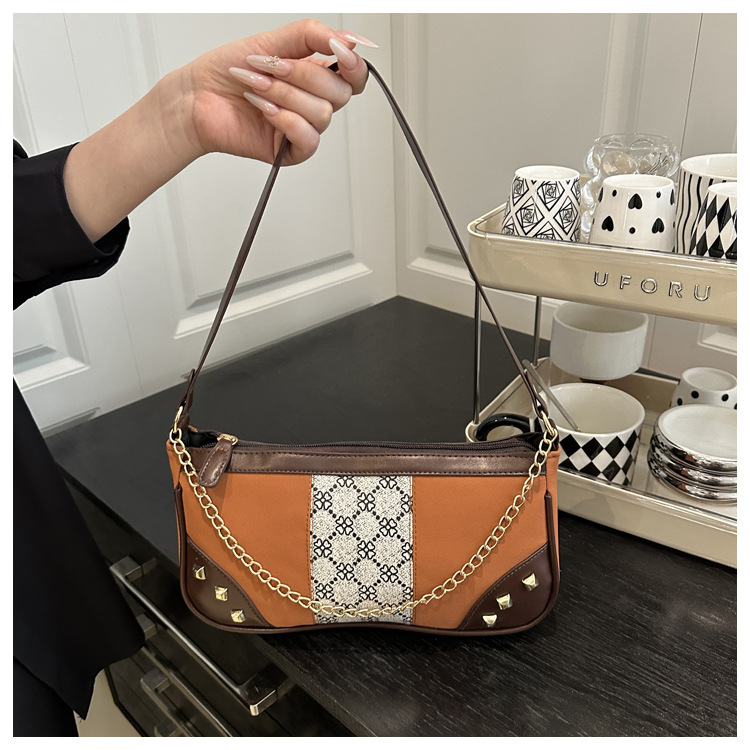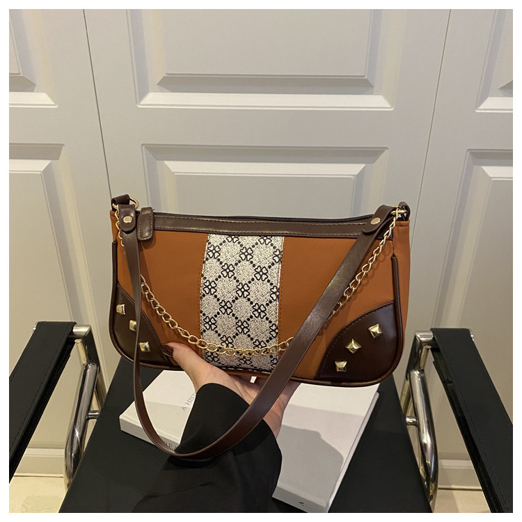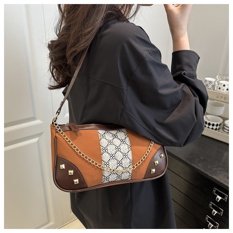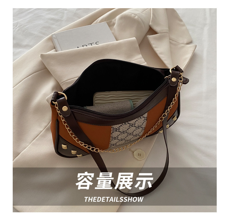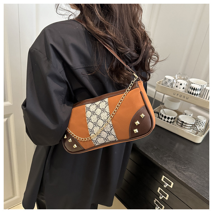 Bolso de mujer 2025 primavera nueva moda retro esmerilado empalme bolso de color contraste bolso de mujer un hombro brazo bolso de moda