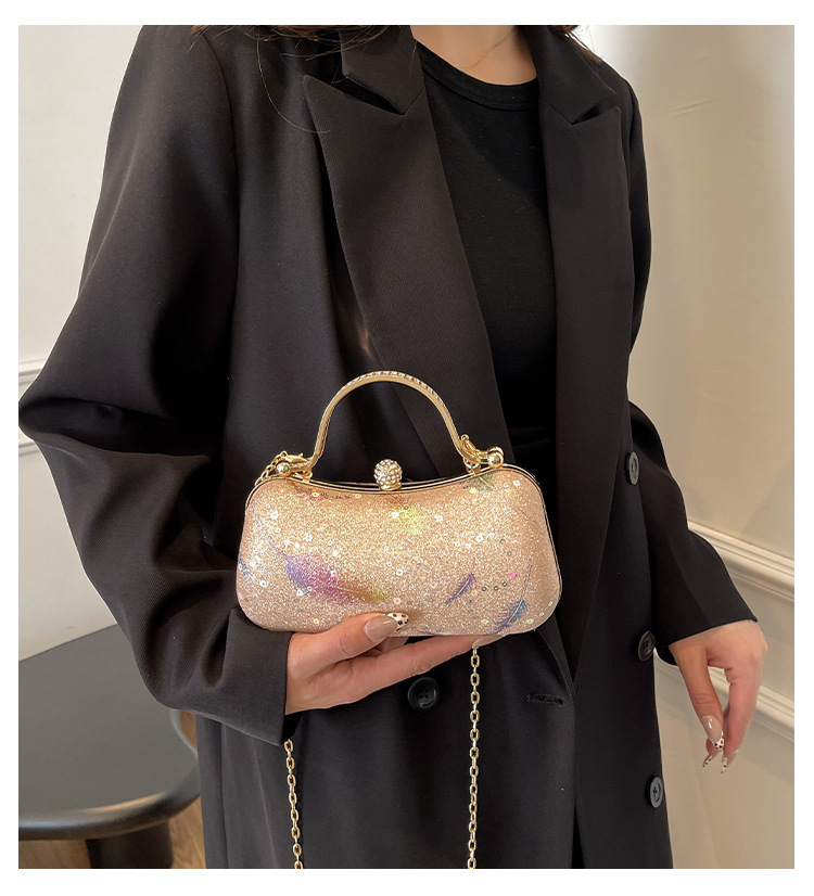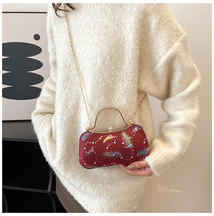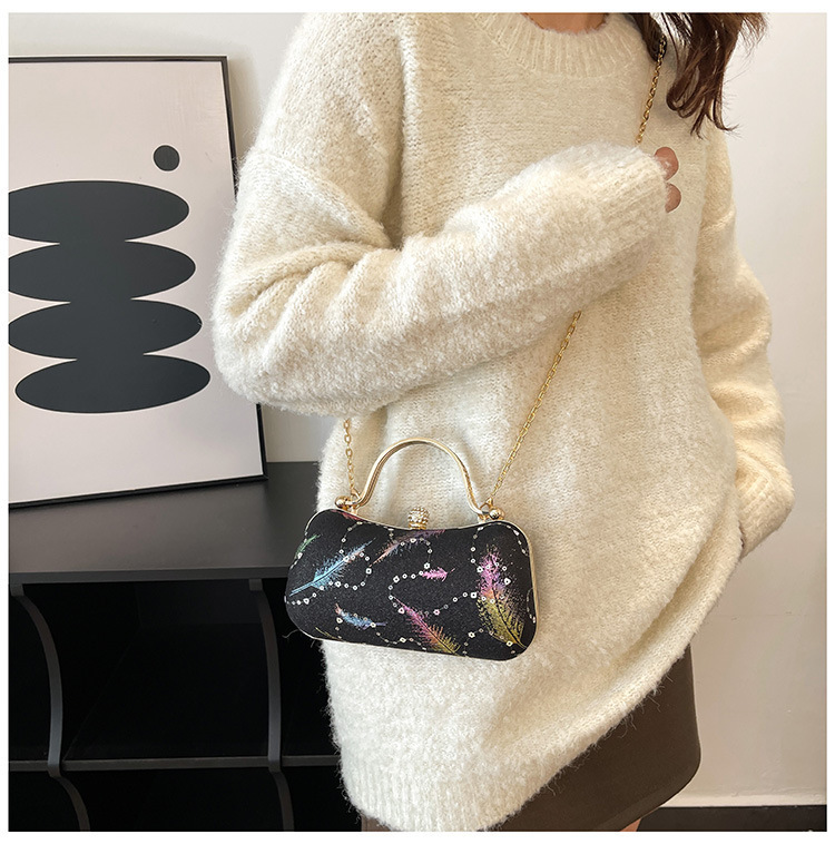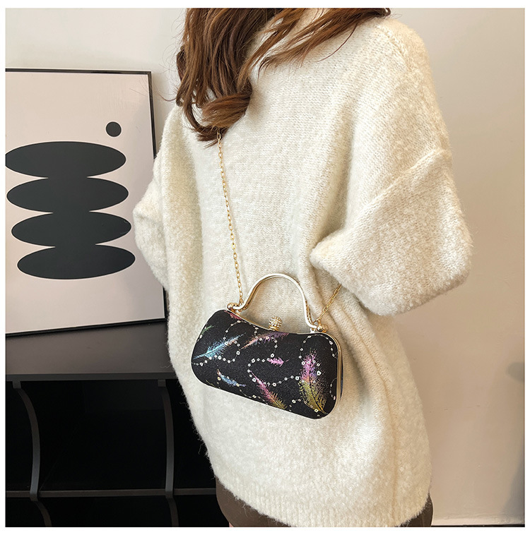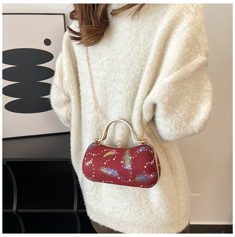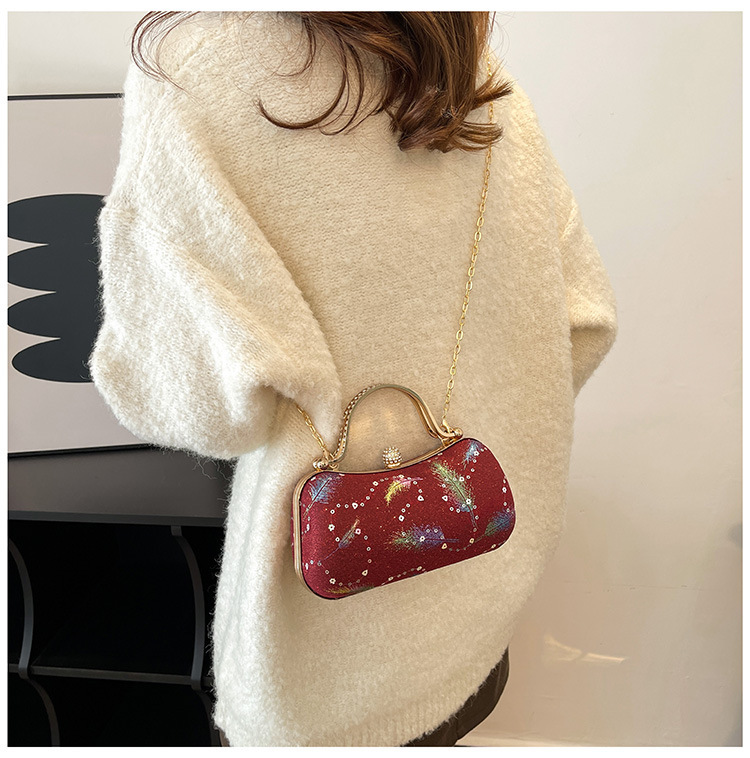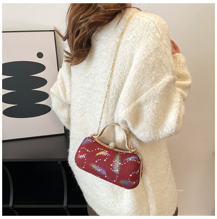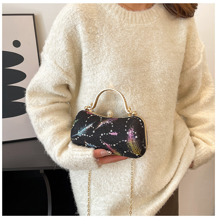 Bolso de mujer retro transfronterizo 2025 nuevo bolso de cena de pañuelo de plumas bolso de cadena de hombro