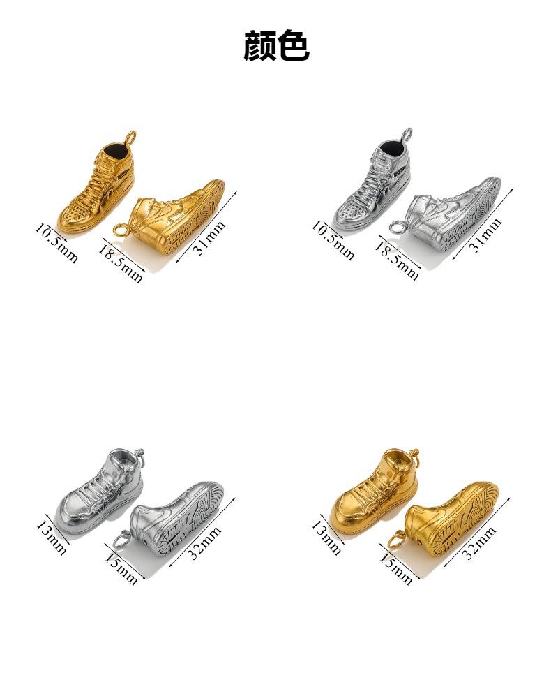 Zapatos de acero inoxidable 3D colgantes de gancho colgantes de acero DIY marca de moda collares bolsos colgantes accesorios de joyería