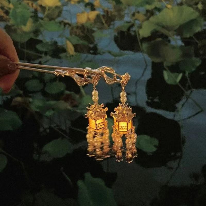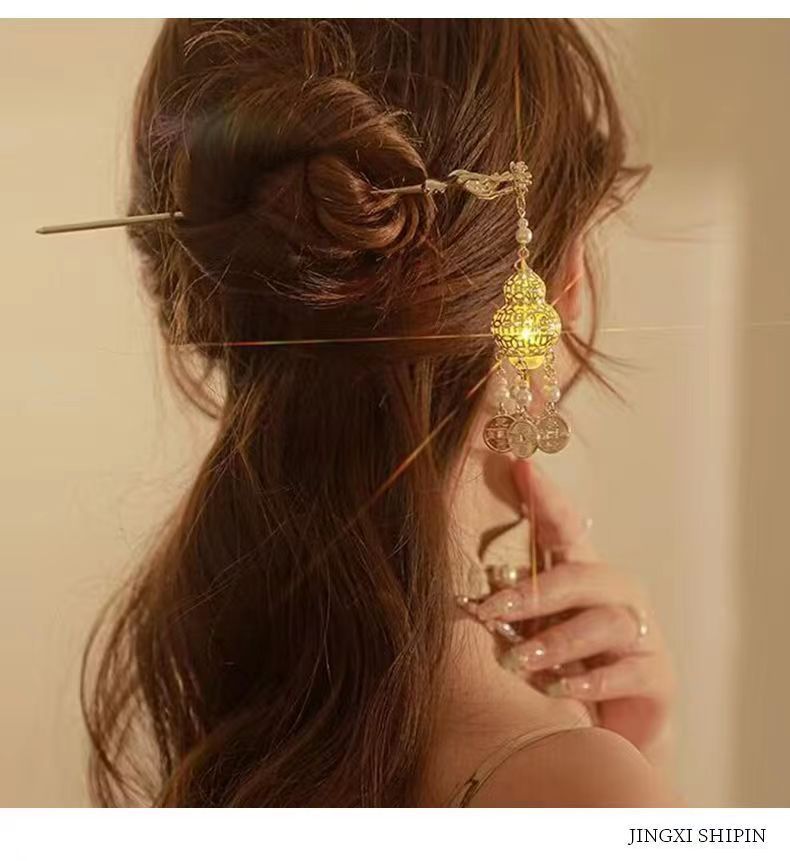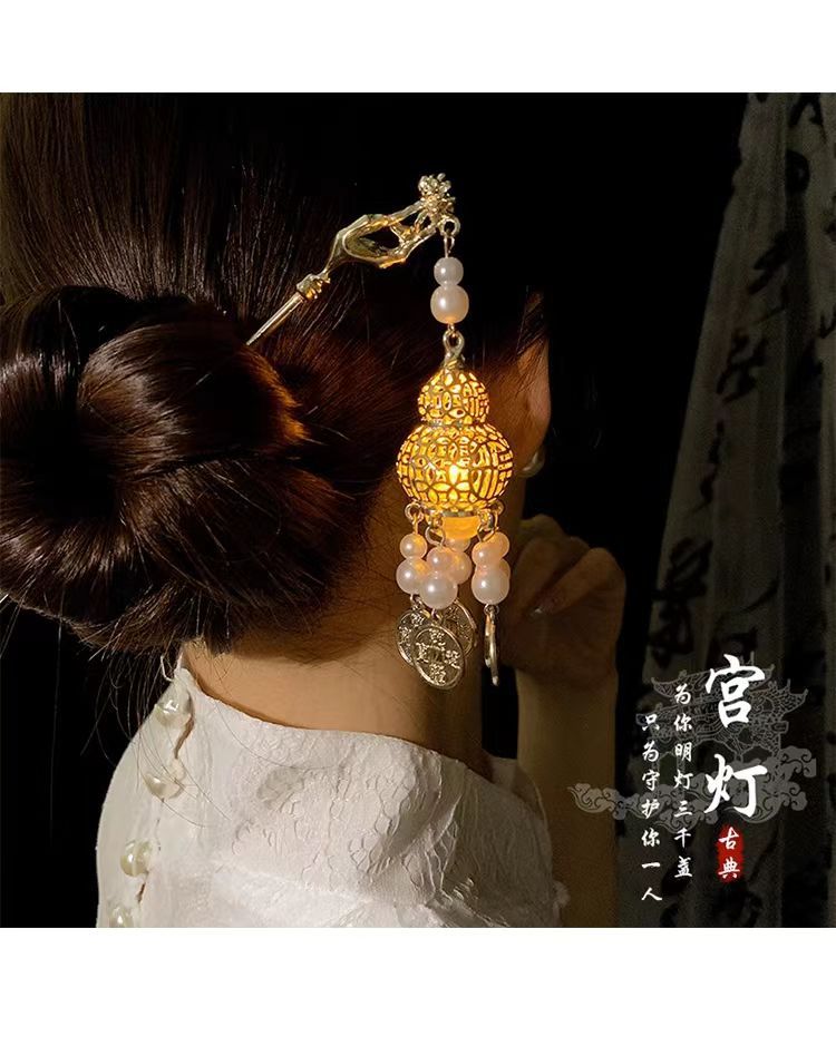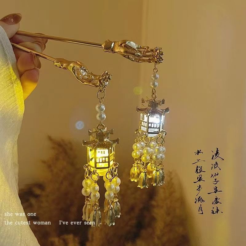 Retro tassel Palace Lamp horquilla palillos emisores de luz de alto grado tocado de estilo antiguo de las mujeres accesorios para el cabello Hanfu joyería diaria de todos los partidos