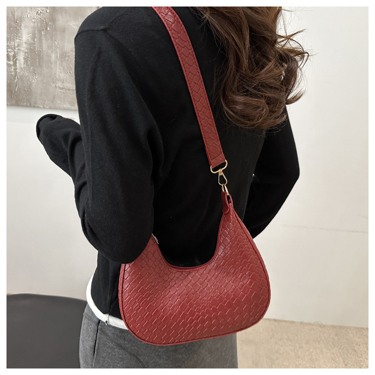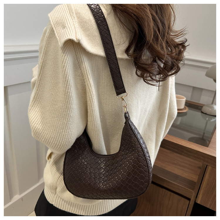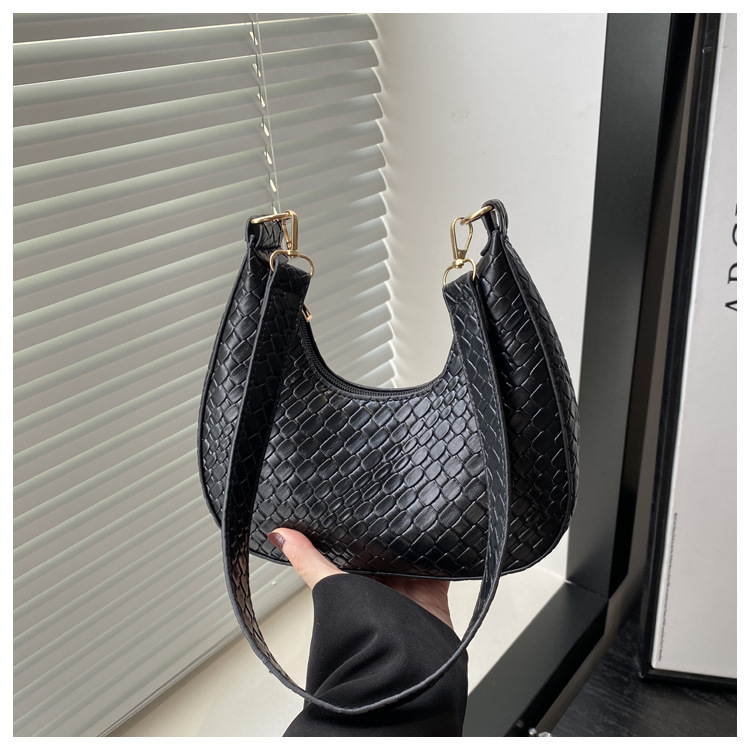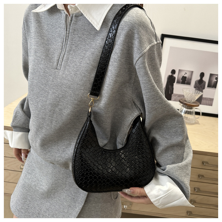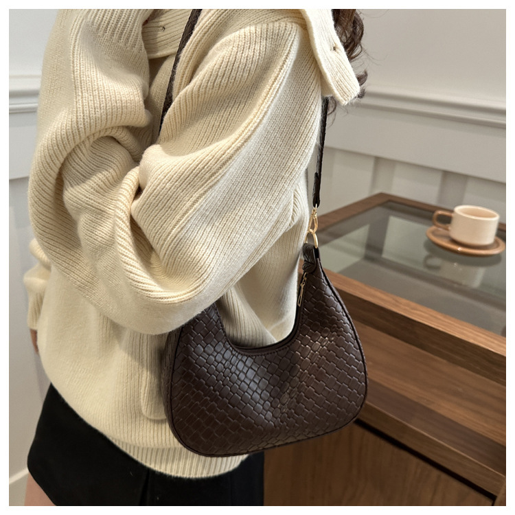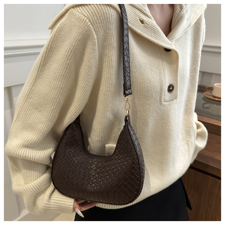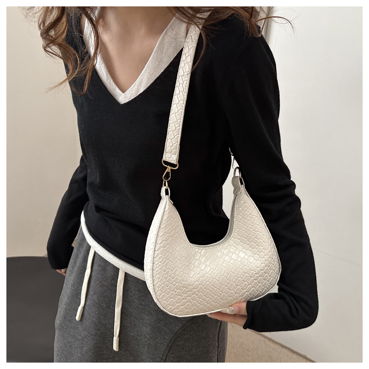 Bolsa de media luna francesa de tejido para mujeres 2025, primavera, nueva moda, textura de moda, bolso de hombro, elegante bolso de brazo