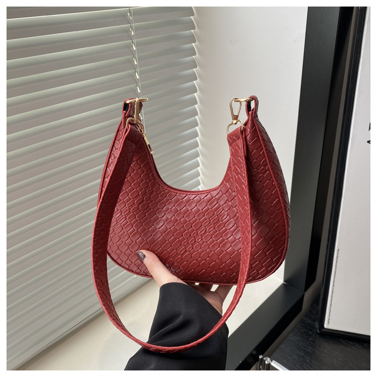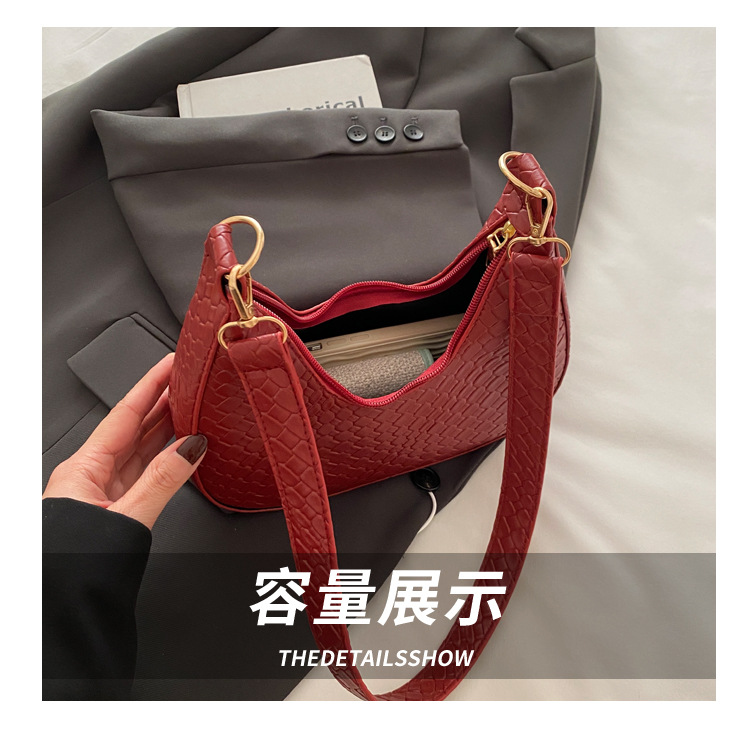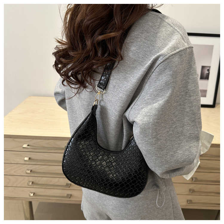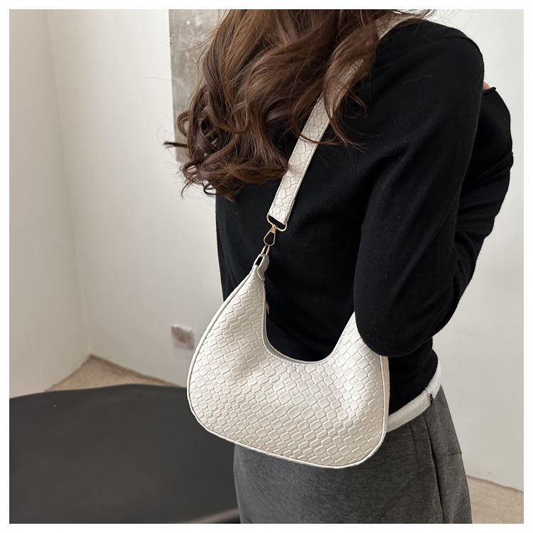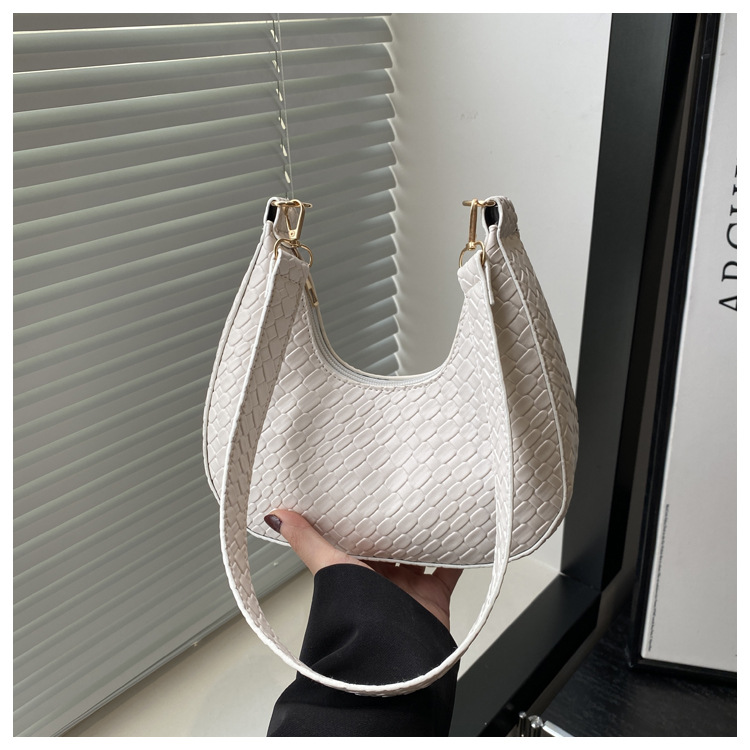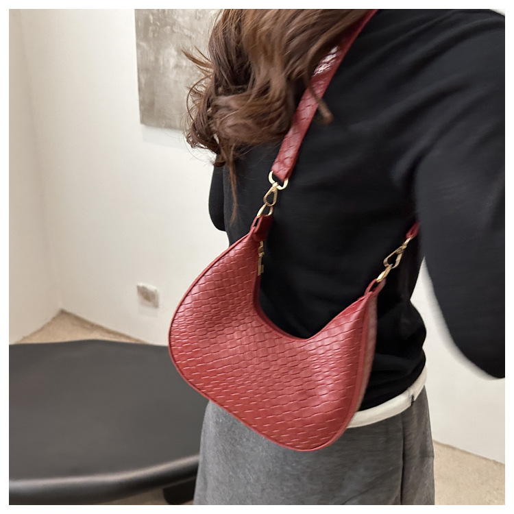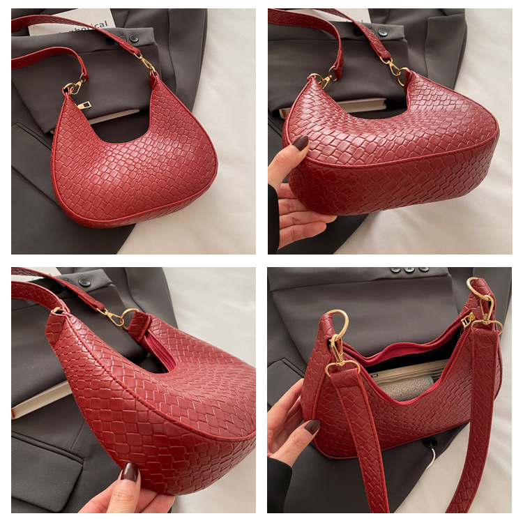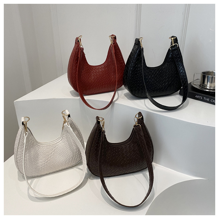 Bolsa de media luna francesa de tejido para mujeres 2025, primavera, nueva moda, textura de moda, bolso de hombro, elegante bolso de brazo