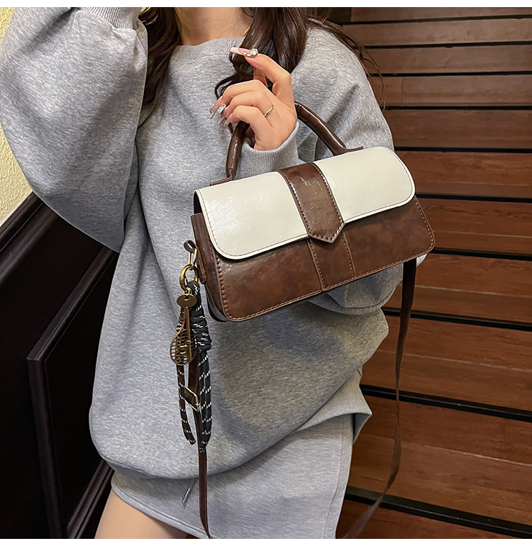 Este año, bolsos populares de color contrastante para mujeres 2025, nuevos bolsos de mano de moda, bolsos cuadrados, bolsos de nicho literario.