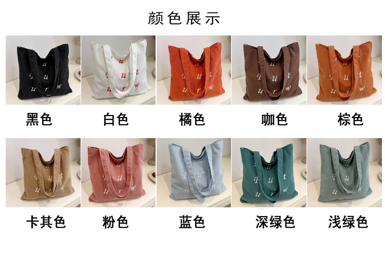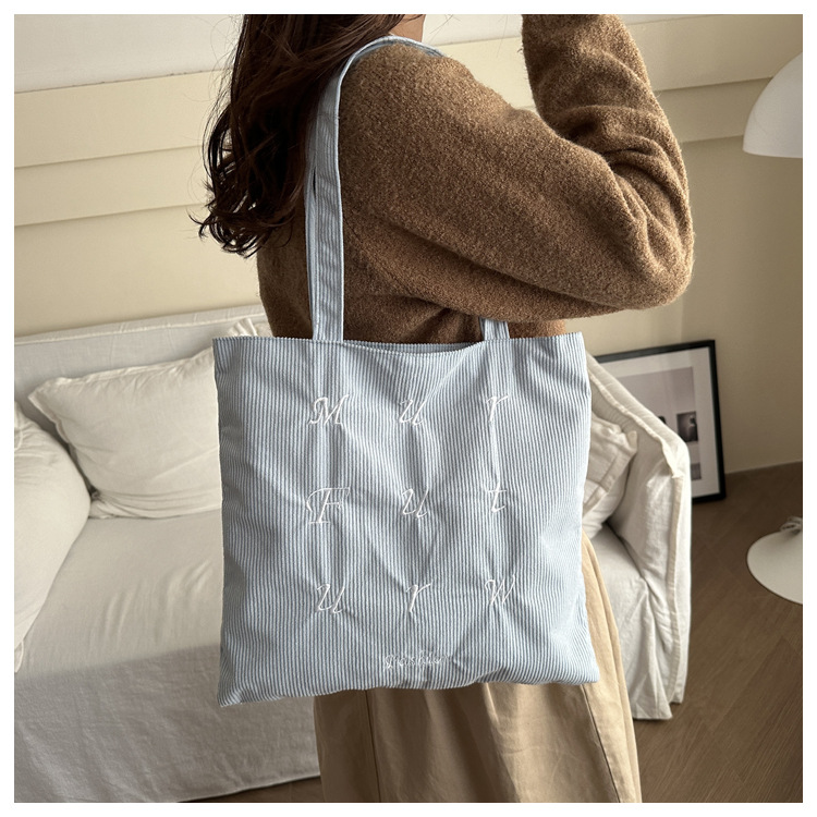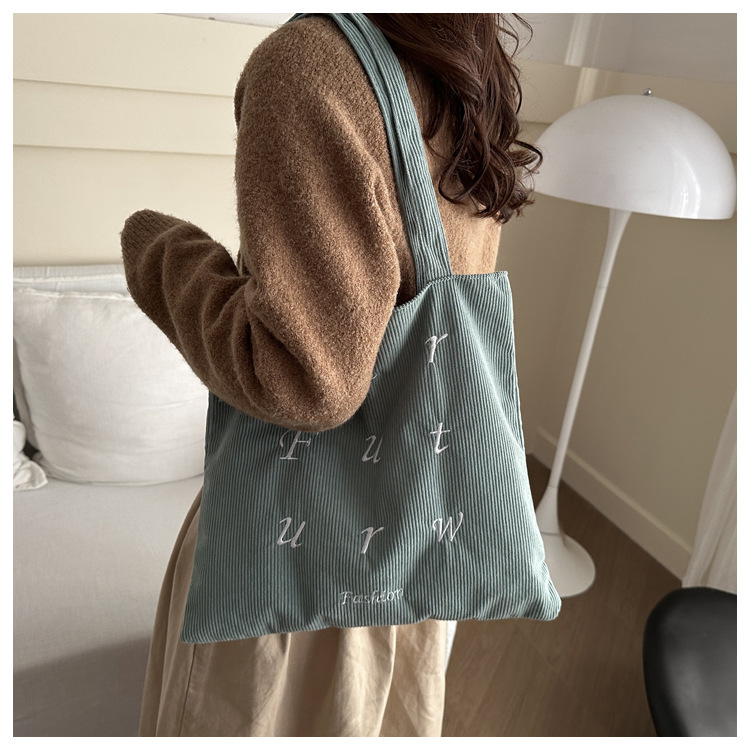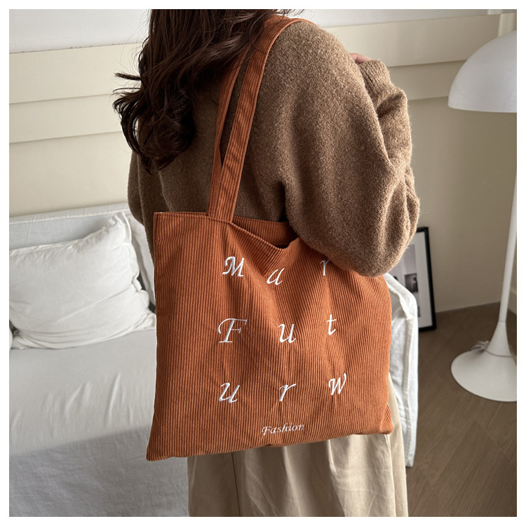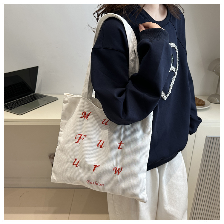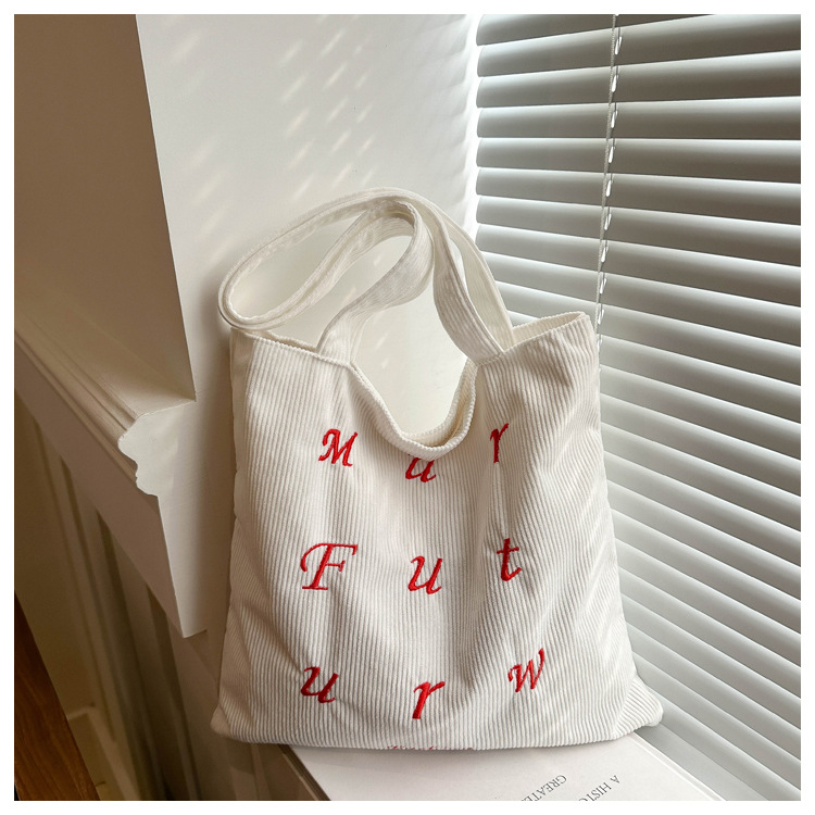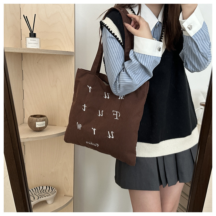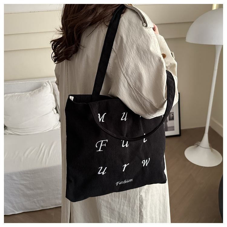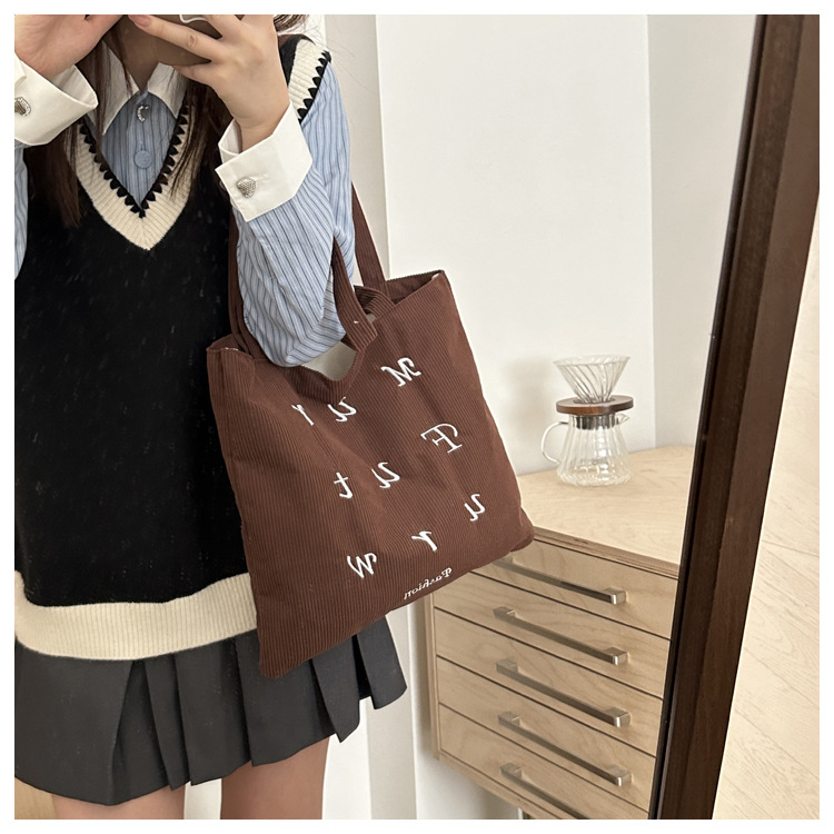 Bolsa de hombro bordada de letras, bolsa de mujer, bolsa de mano, bolsa de compras de gran capacidad, bolsa de clase para estudiantes