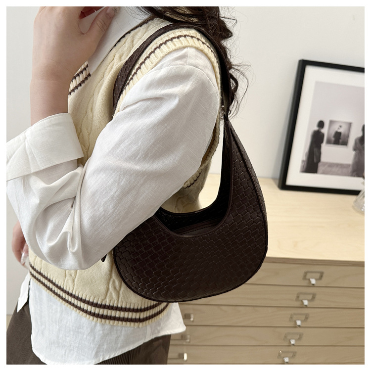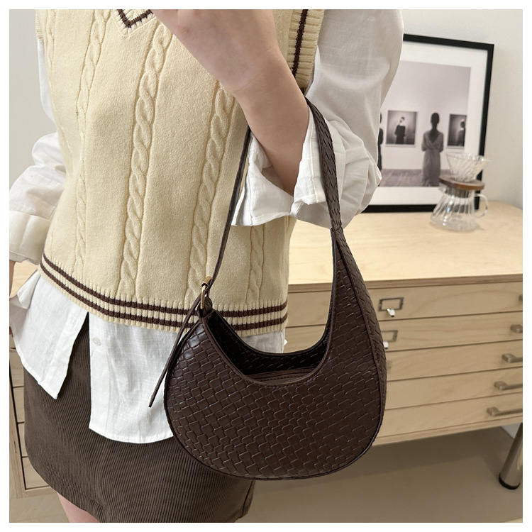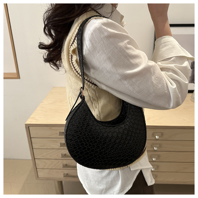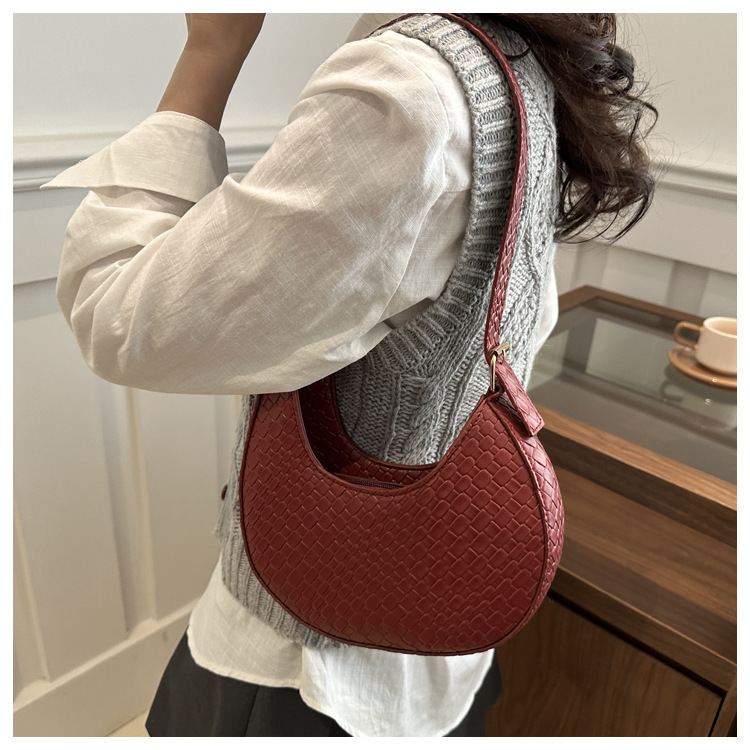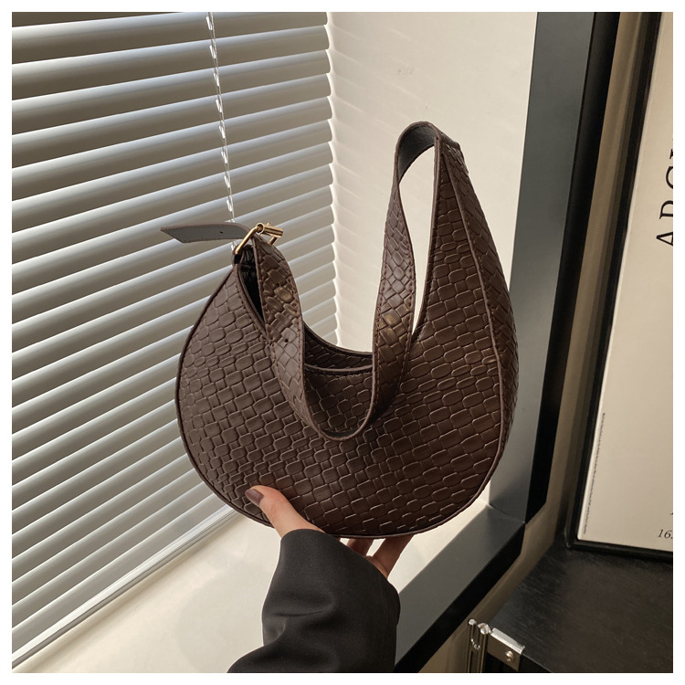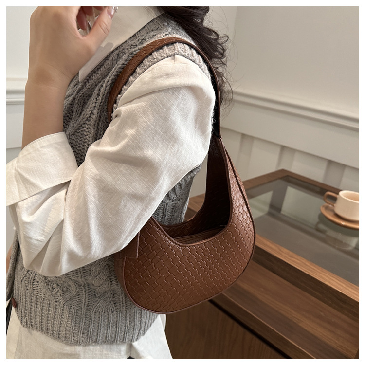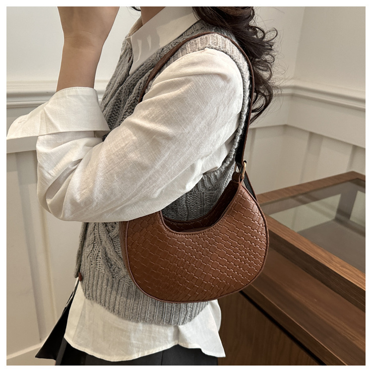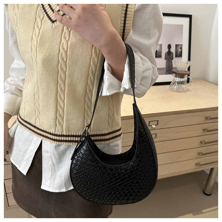 Bolsa de media luna francesa de tejido para mujeres 2025 nueva tendencia correa de hombro ancha textura de moda bolso de hombro bolso debajo de la axila