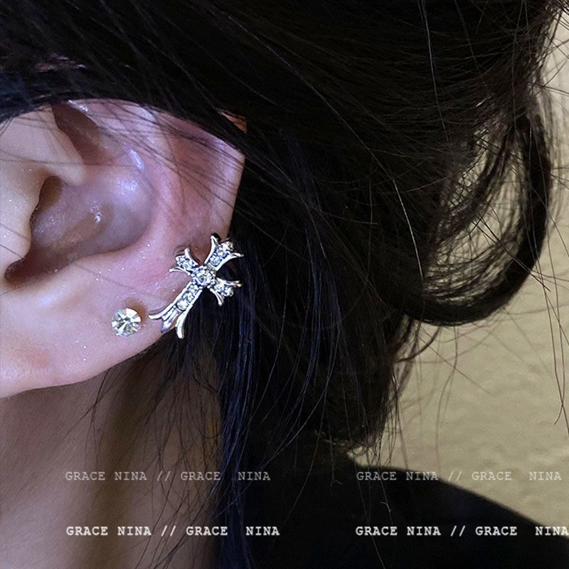 Dulce estilo fresco exquisito ZIRCON clip de oreja cruzada hembra clip de hueso de oreja sin oreja Luz de lujo diseño de nicho pendientes de alta calidad