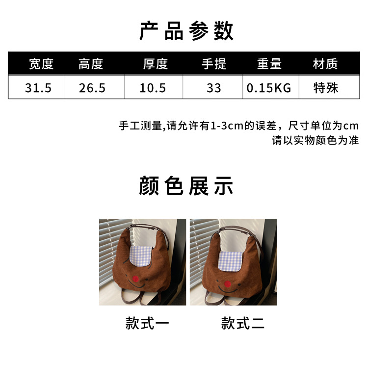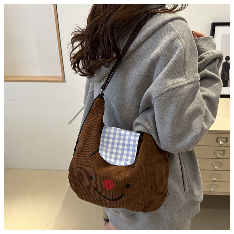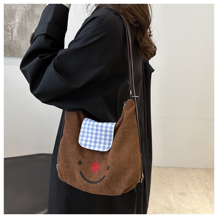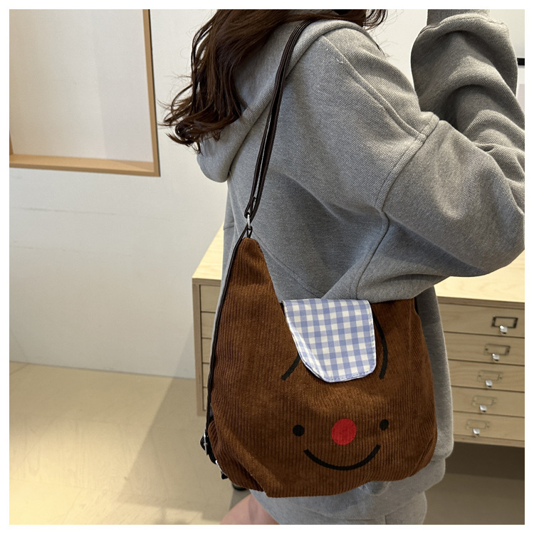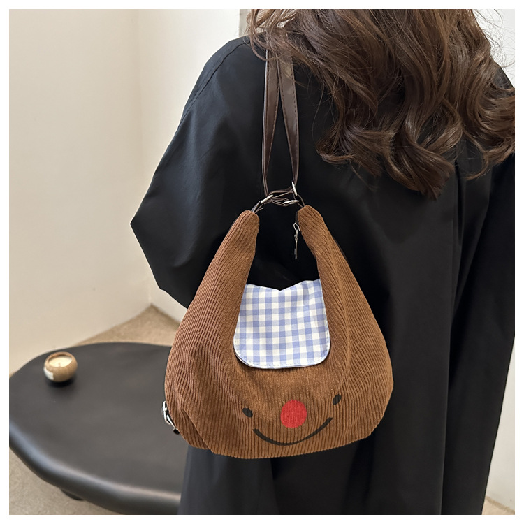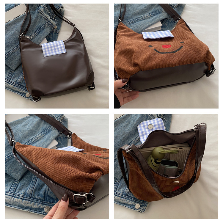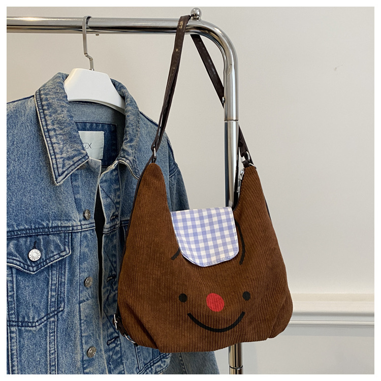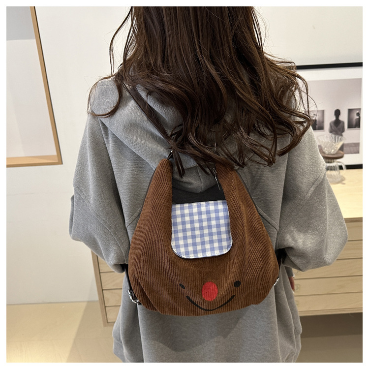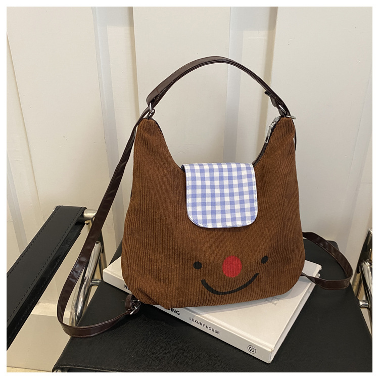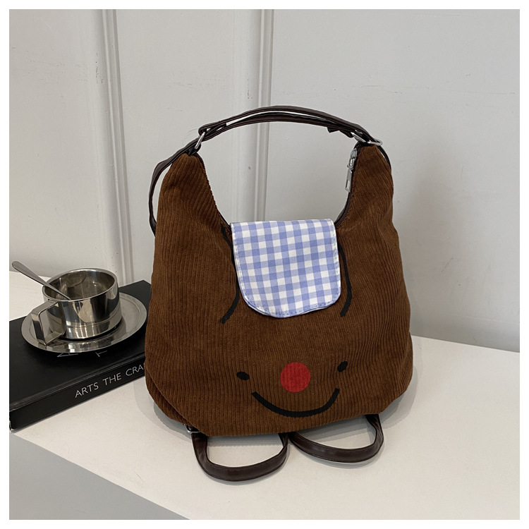 Vintage velcro nariz roja sonriente bolso de mano para mujeres otoño y invierno 2024 gran capacidad mochila de viaje mochila