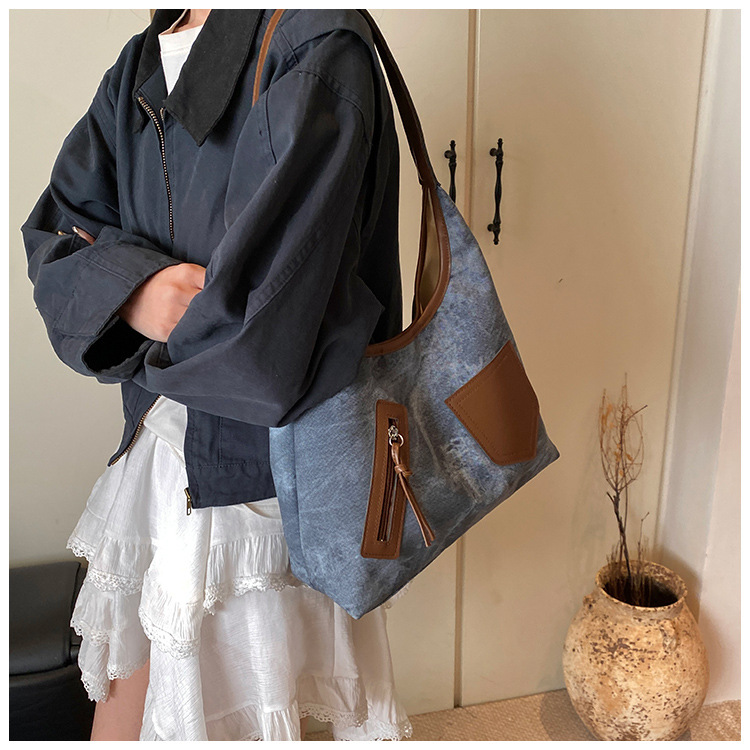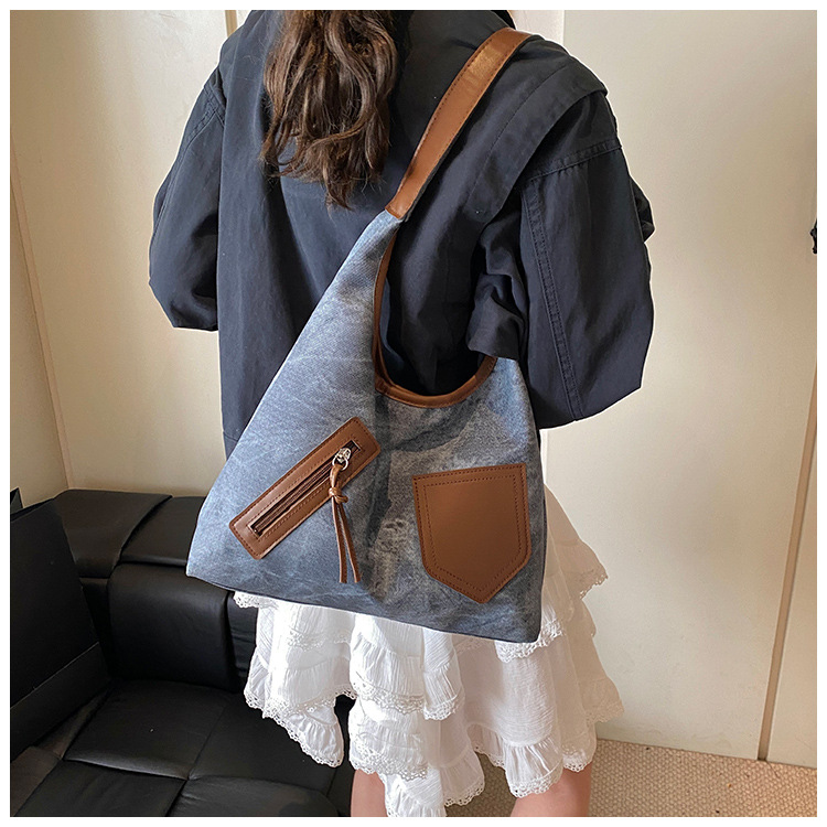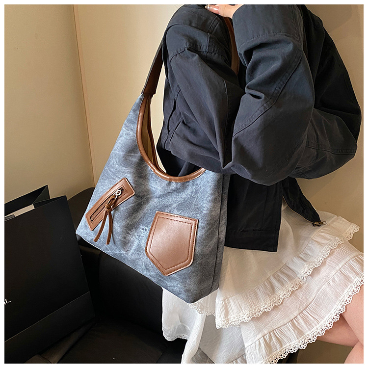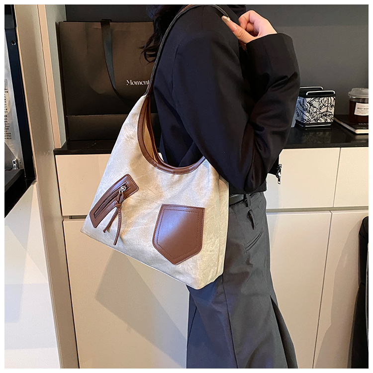 2025 nueva tendencia de gran capacidad bolsas de hombro de moda para viajar al trabajo bolsas de mochilas de color contrastante empalme de moda bolsas de mujer