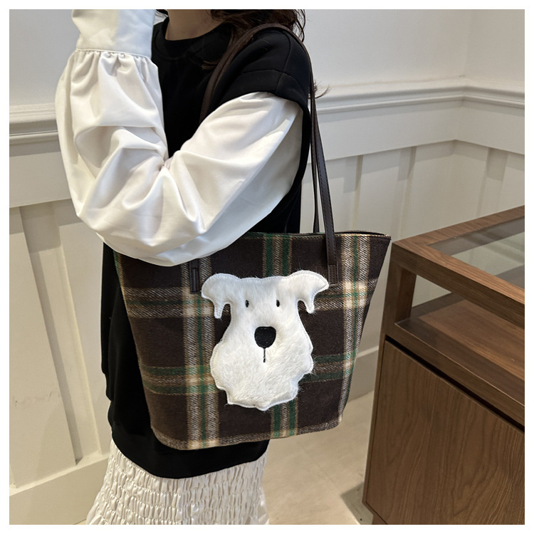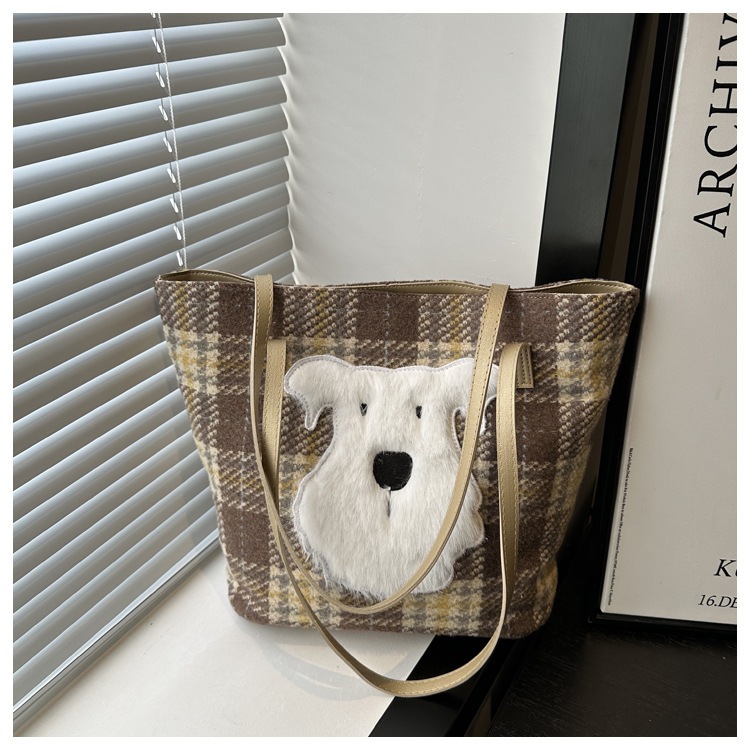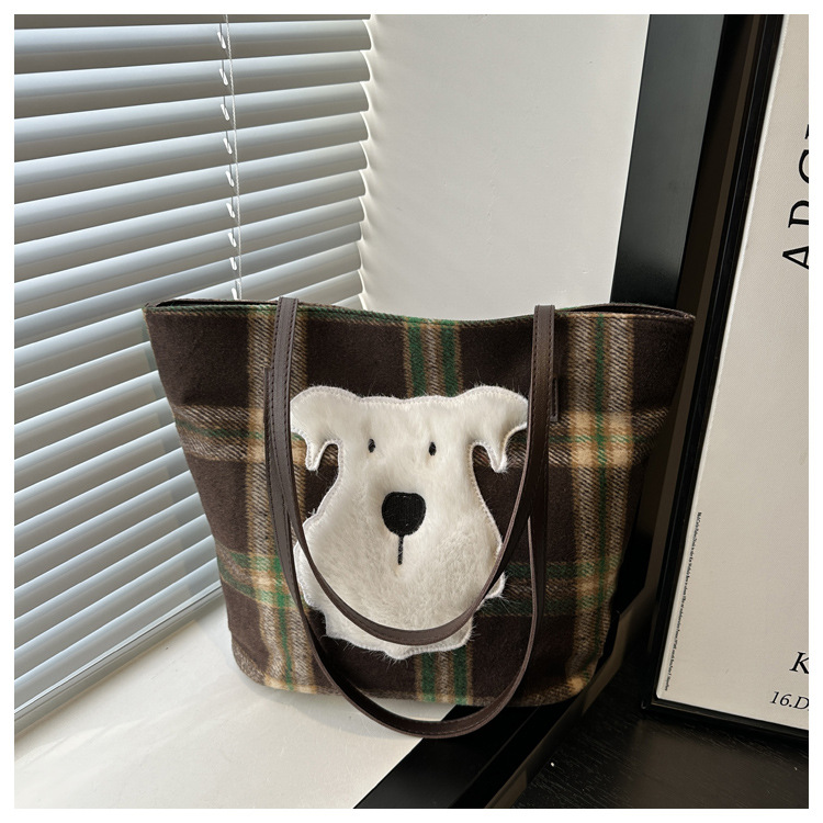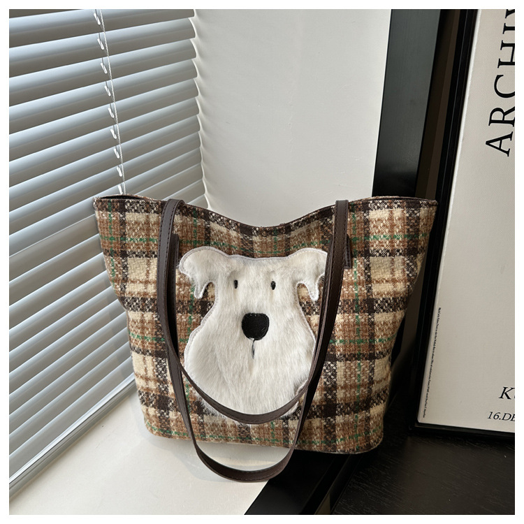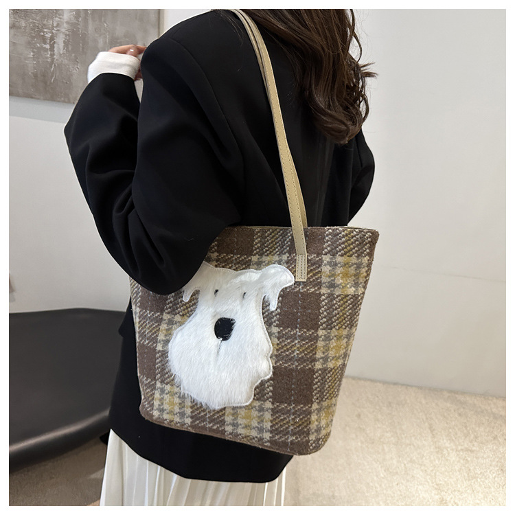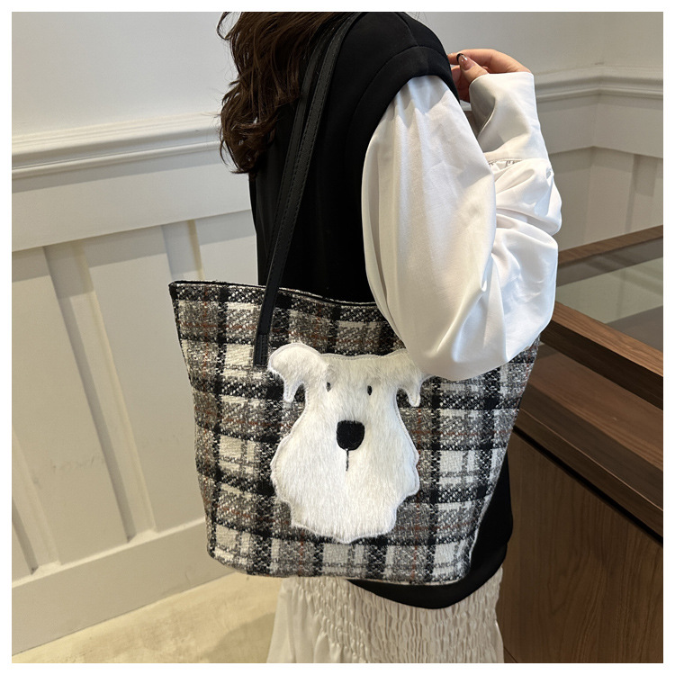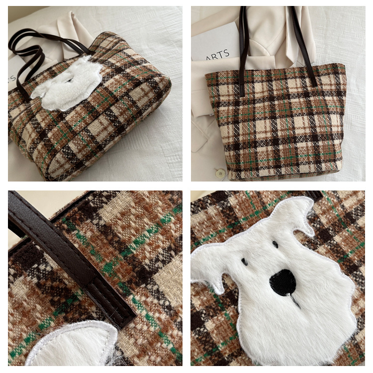 Bolso bandolera a cuadros de lana retro para mujer 2024 nuevo estilo bolso de otoño e invierno bolso de ocio de gran capacidad