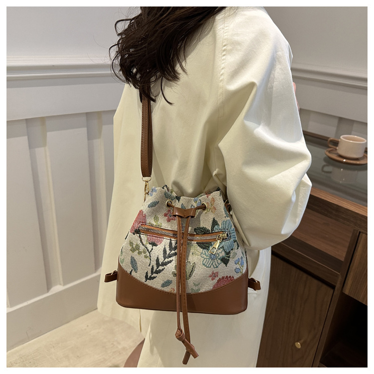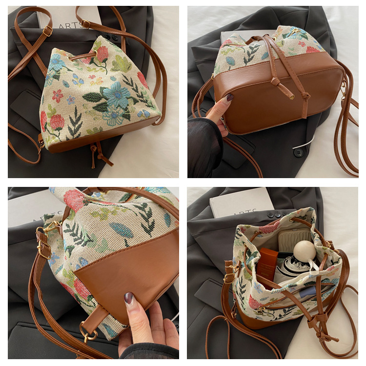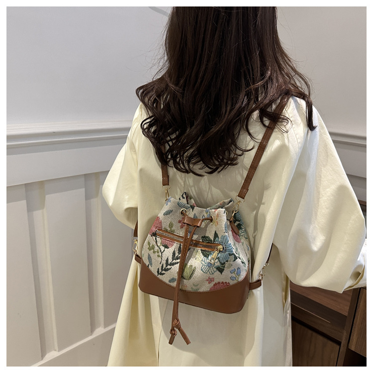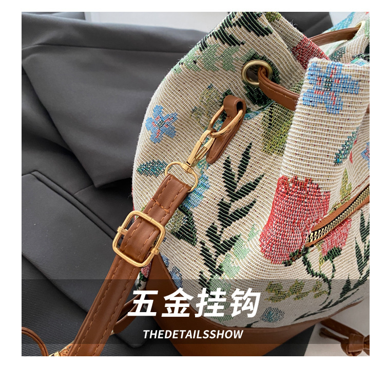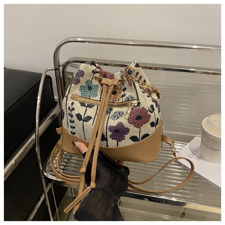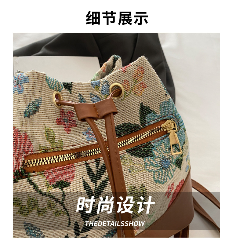 Bolsa de mochila de estilo nacional para mujeres 2024 nuevo bolso de moda para teléfonos móviles de verano ocio retro bolso de cubo de cuerda
