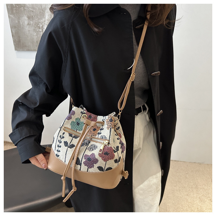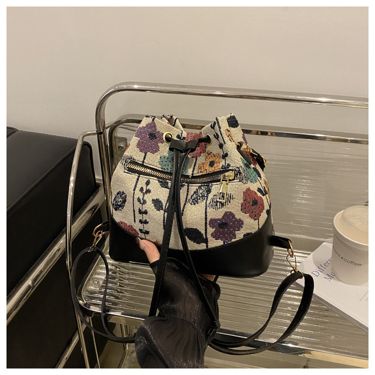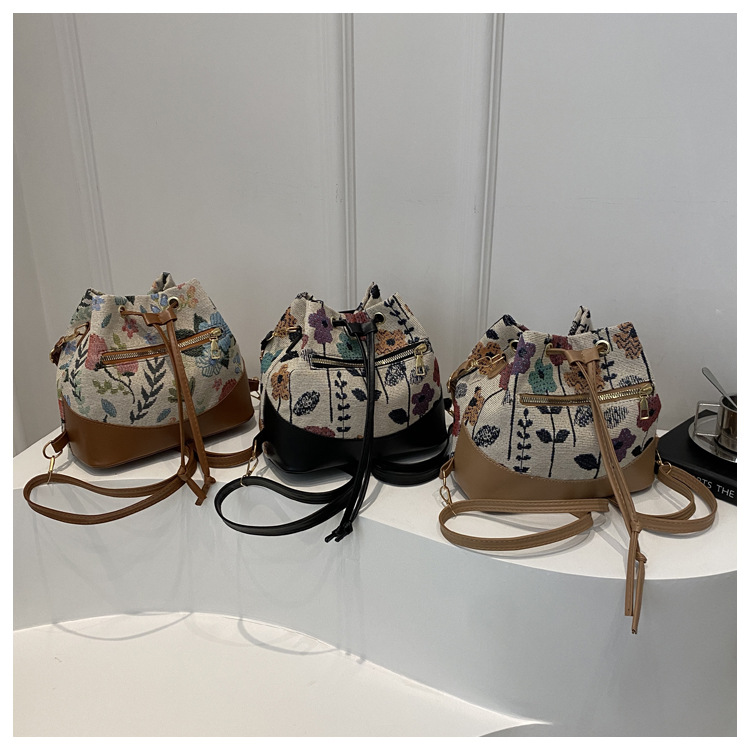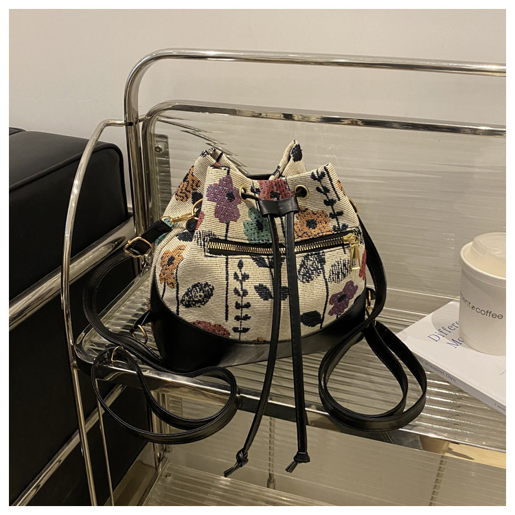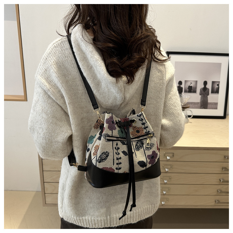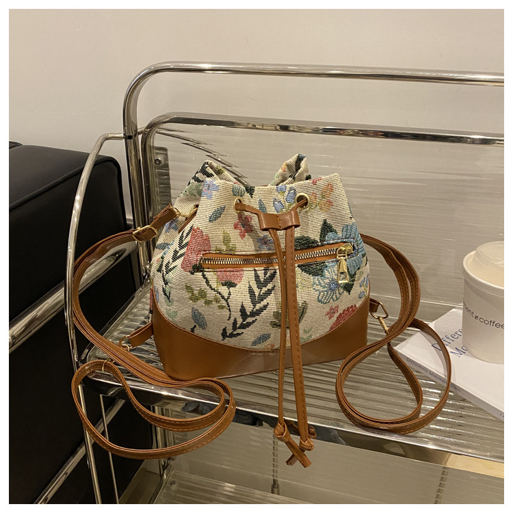 Bolsa de mochila de estilo nacional para mujeres 2024 nuevo bolso de moda para teléfonos móviles de verano ocio retro bolso de cubo de cuerda