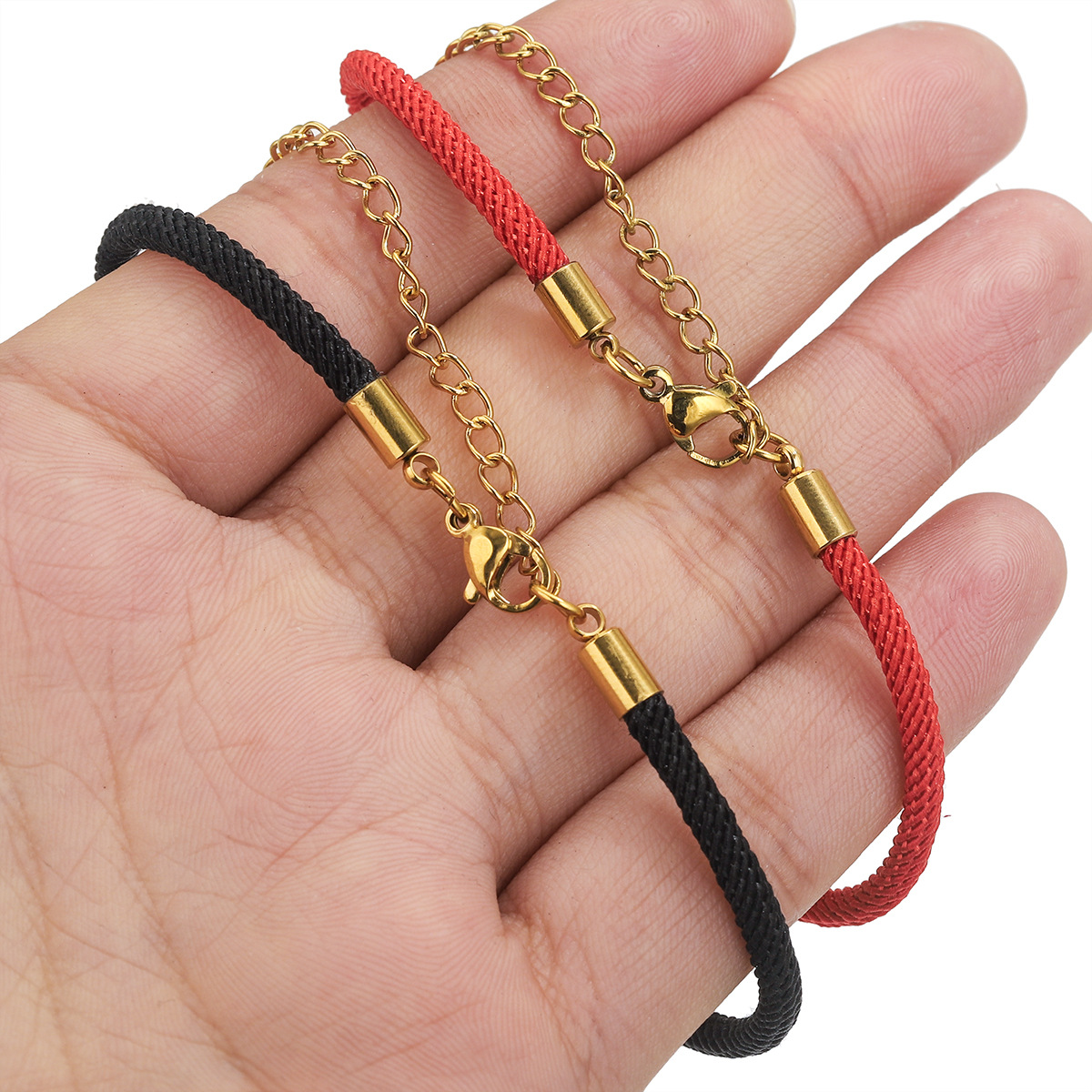 Cubo de acero inoxidable y botón de langosta cuerda roja cuerda negra pulsera hebilla cadena de cola diy hecha a mano al por mayor