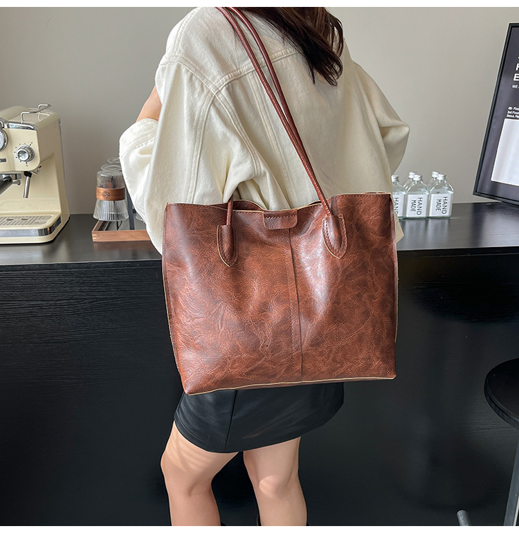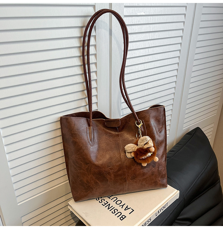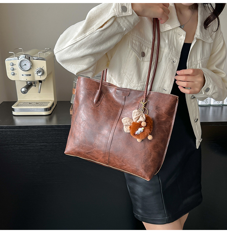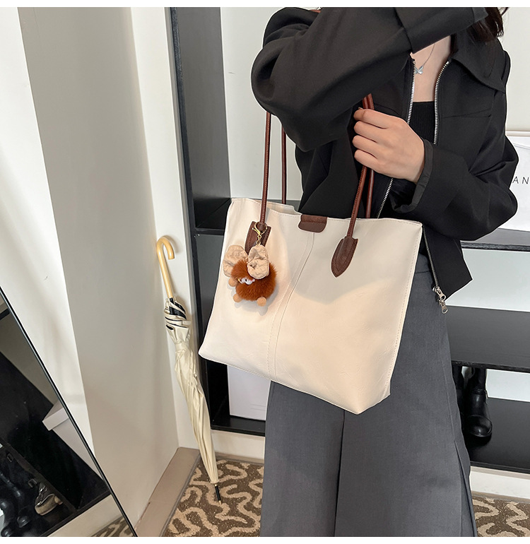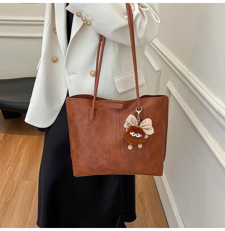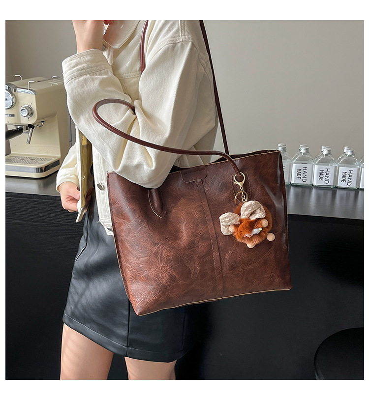 Moda de gran capacidad de la cara suave 2025 primavera nuevo colgante de ocio retro color sólido simple bolso de hombro axilar de mano