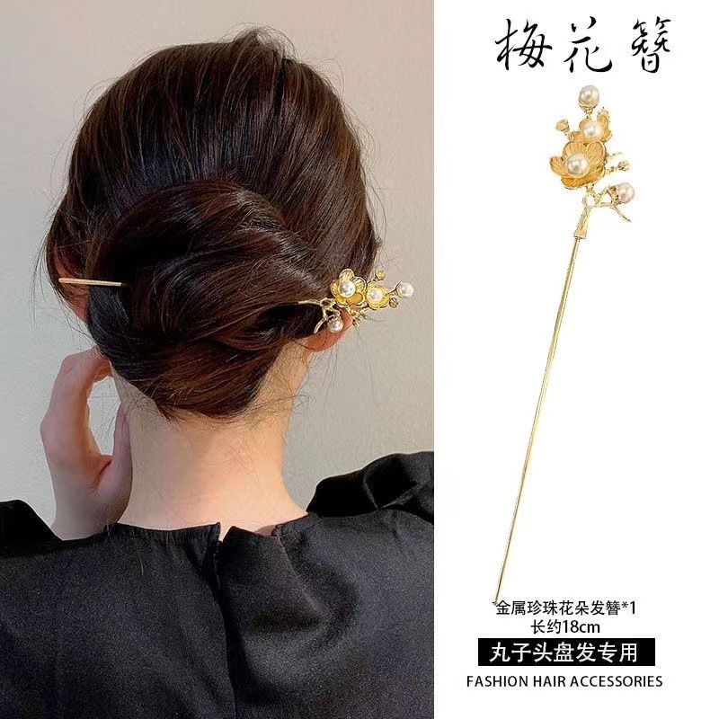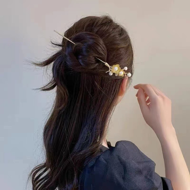 Horquilla nueva estilo chino frío y ligero lujo minimalista de alto valor horquilla de perlas 2024 nueva horquilla diaria moderna