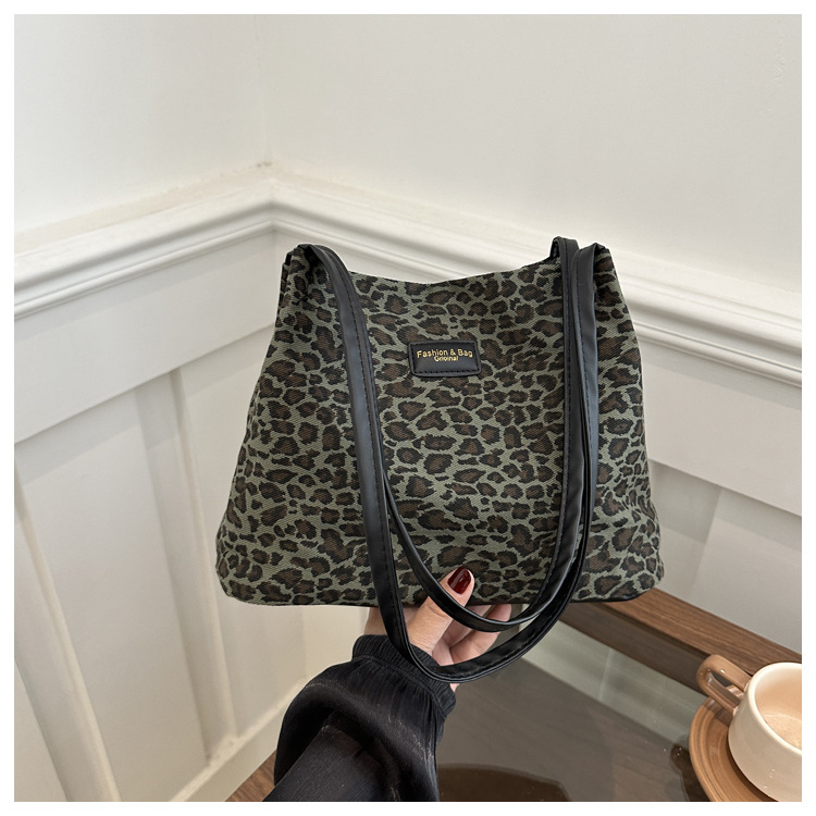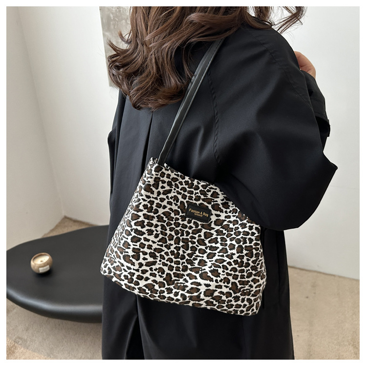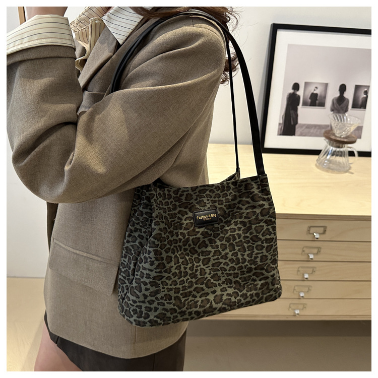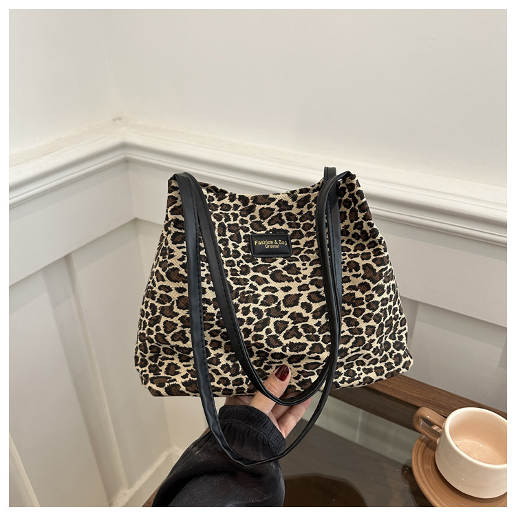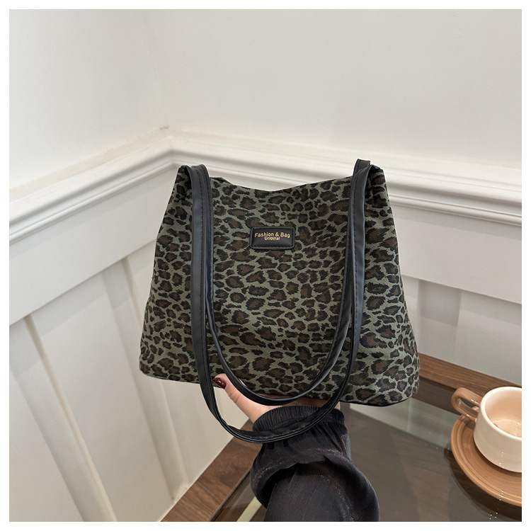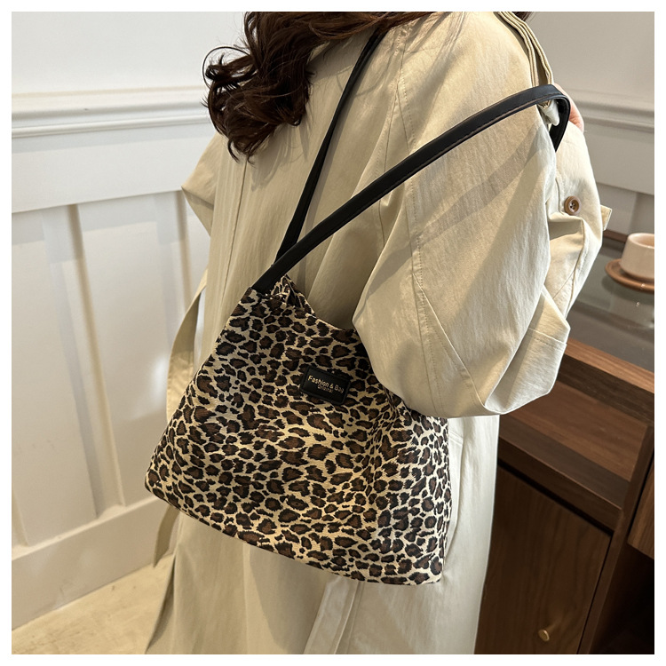 Bolsa de viaje ocio de clase de gran capacidad 2024, nueva bolsa de otoño y invierno, bolsa de estilo extranjero, bolsa de hombro con patrón de leopardo.