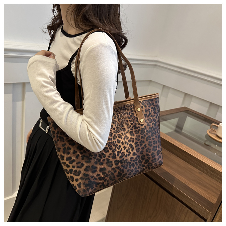 Retro viaje leopardo bolso axilar otoño 2024 nueva moda moda personalidad temperamento bolso de hombro