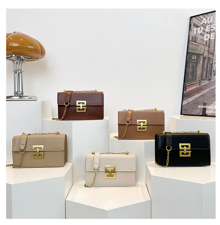 2025 nuevo bolso de hombro de tendencia bolso de mujer retro europeo y americano cadena de moda bolso cuadrado pequeño bolso de mensajero con cerradura creativa