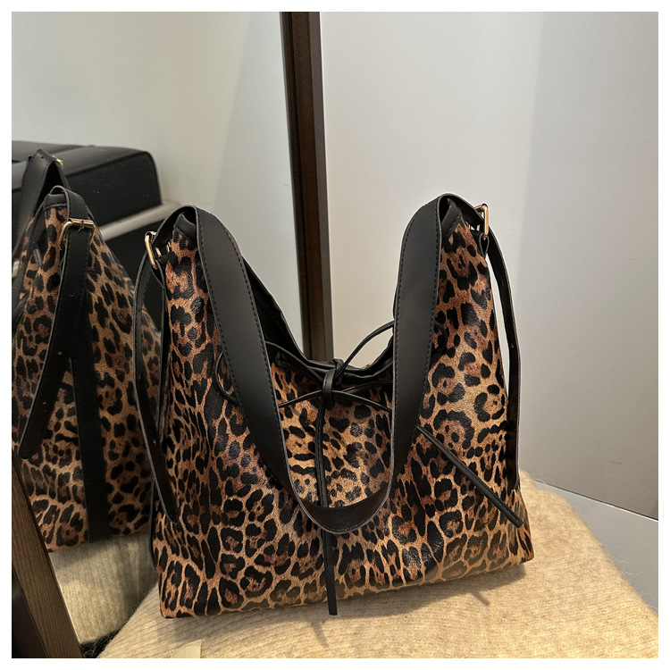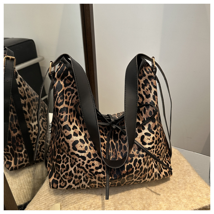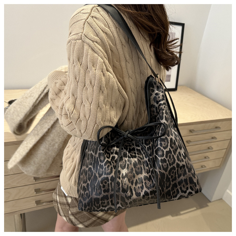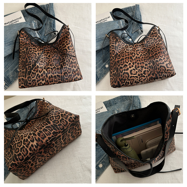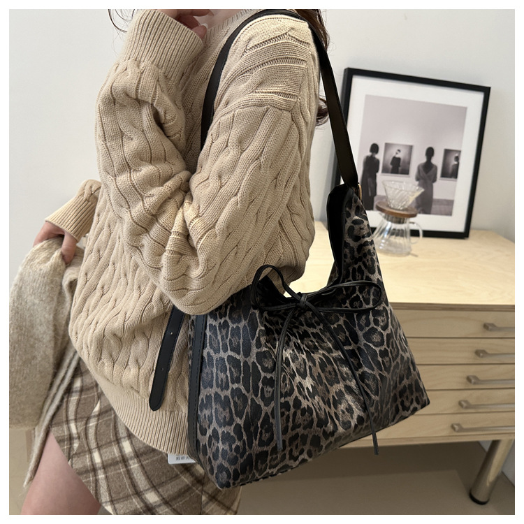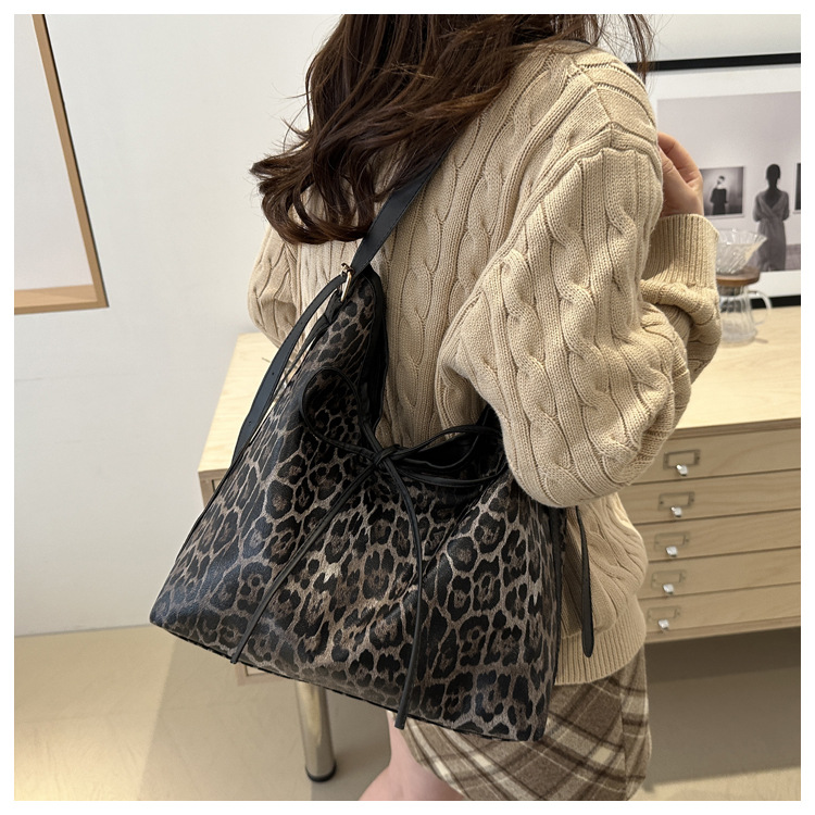Bolsa de leopardo retro de hombro para mujeres 2025 nueva moda para estudiantes universitarios clase de viaje perezoso viento de gran capacidad bolsa de mano