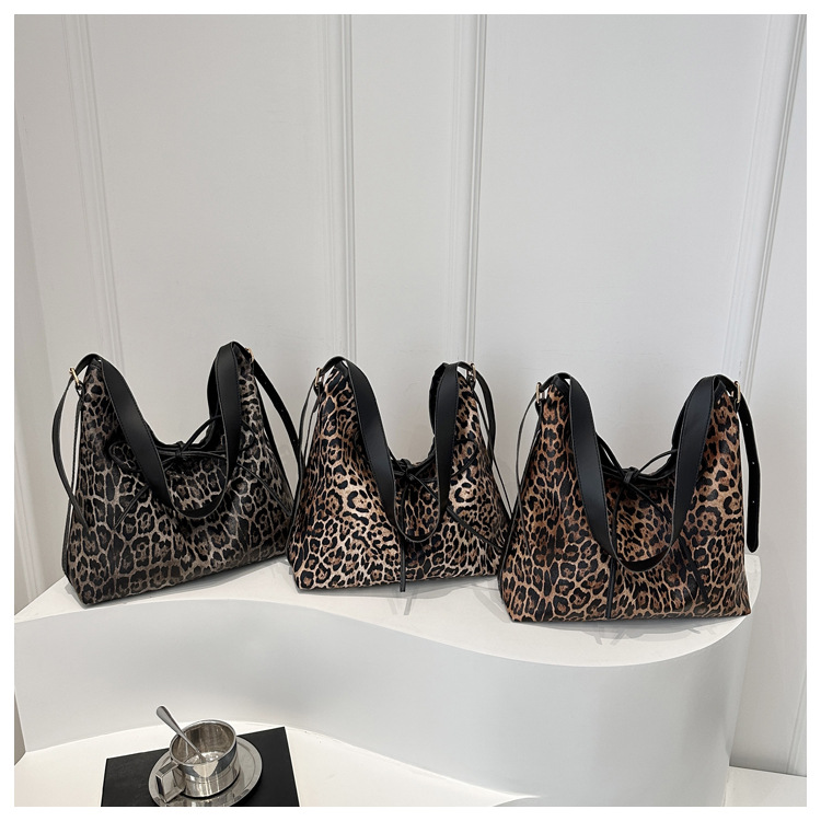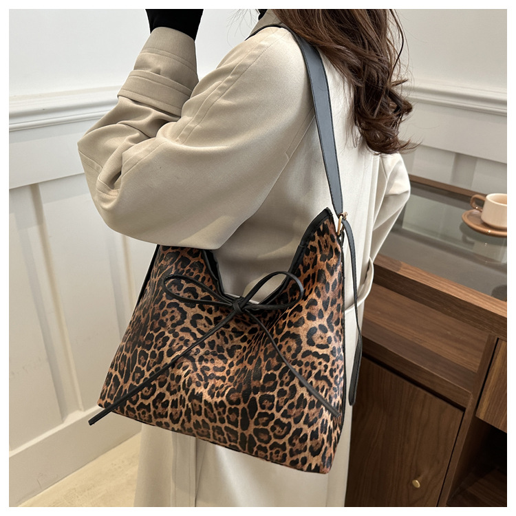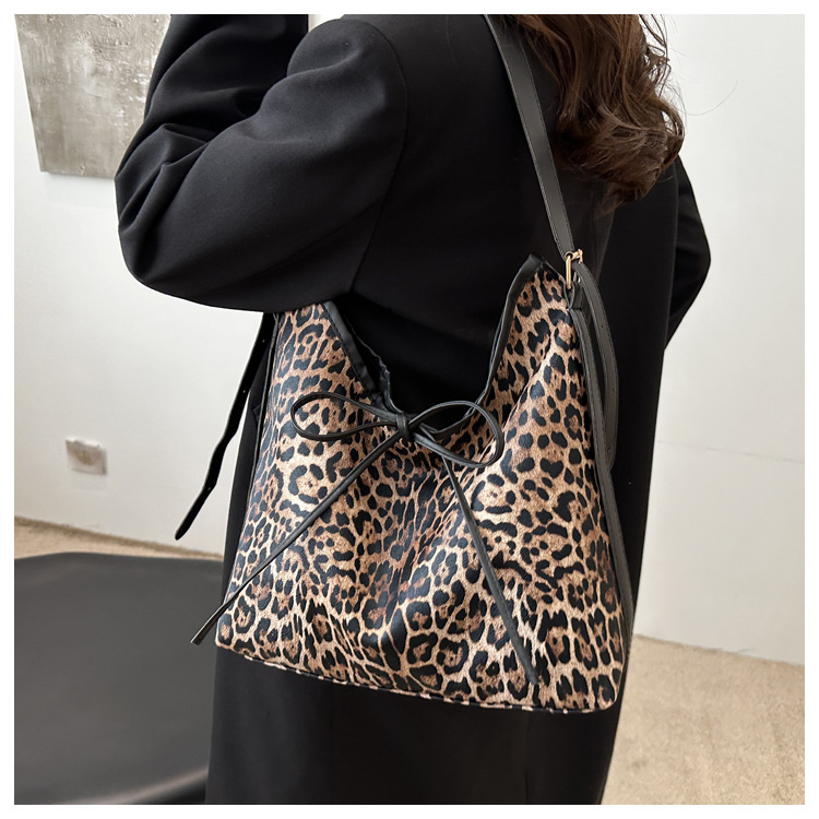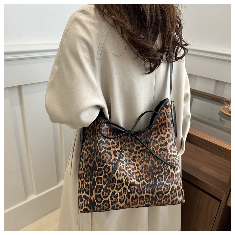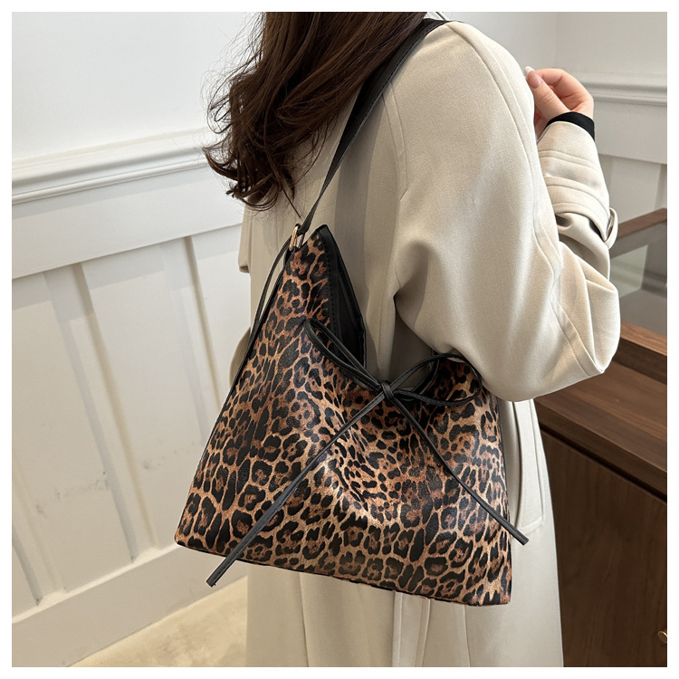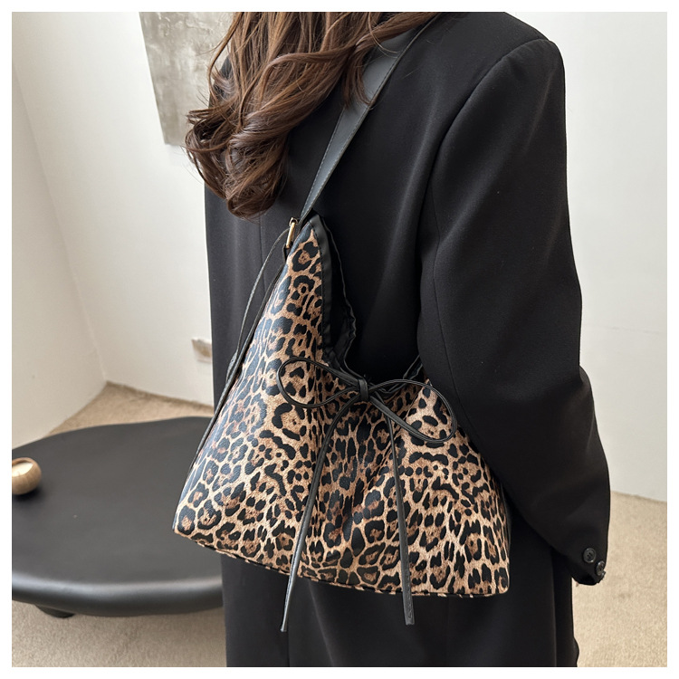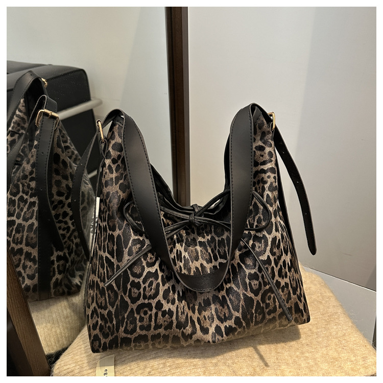 Bolsa de leopardo retro de hombro para mujeres 2025 nueva moda para estudiantes universitarios clase de viaje perezoso viento de gran capacidad bolsa de mano