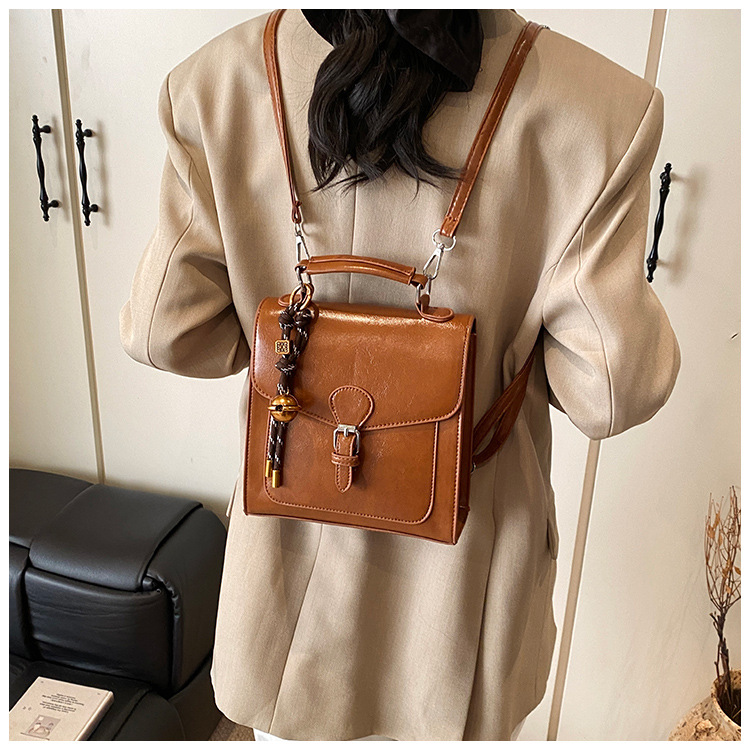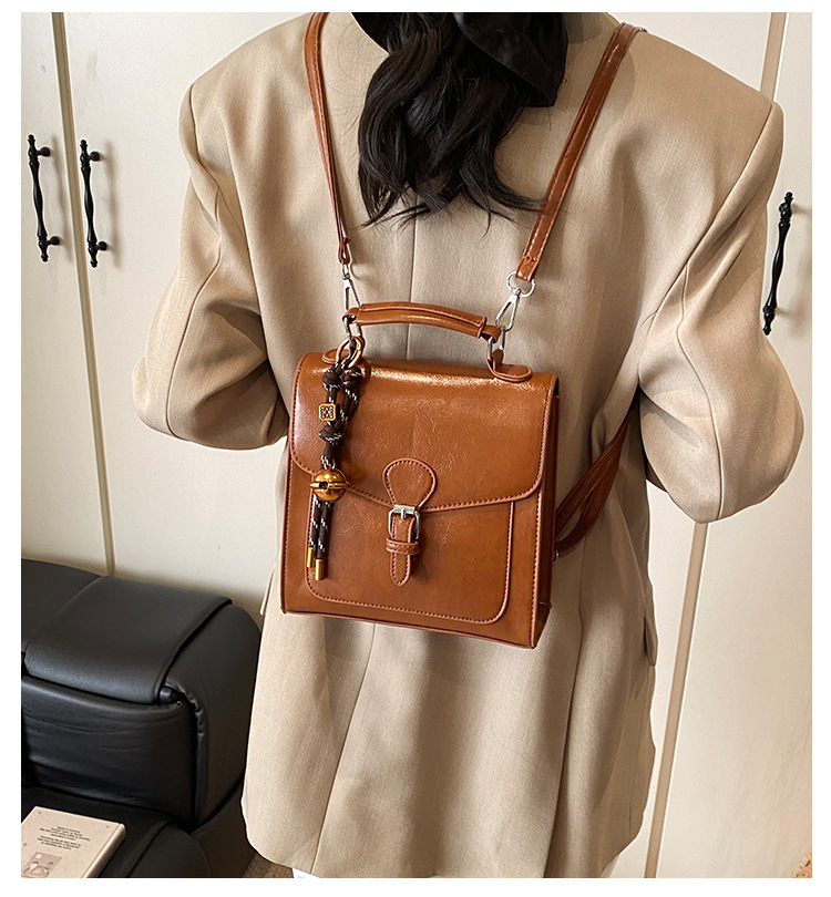 2025 nuevo estilo de moda de piel de cera de aceite de gran capacidad bolsa de viaje mochila multifuncional mochila de hombro color sólido