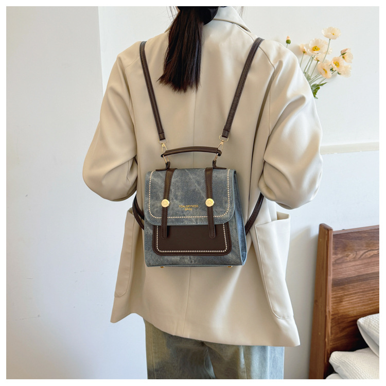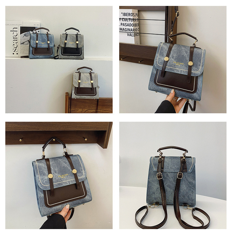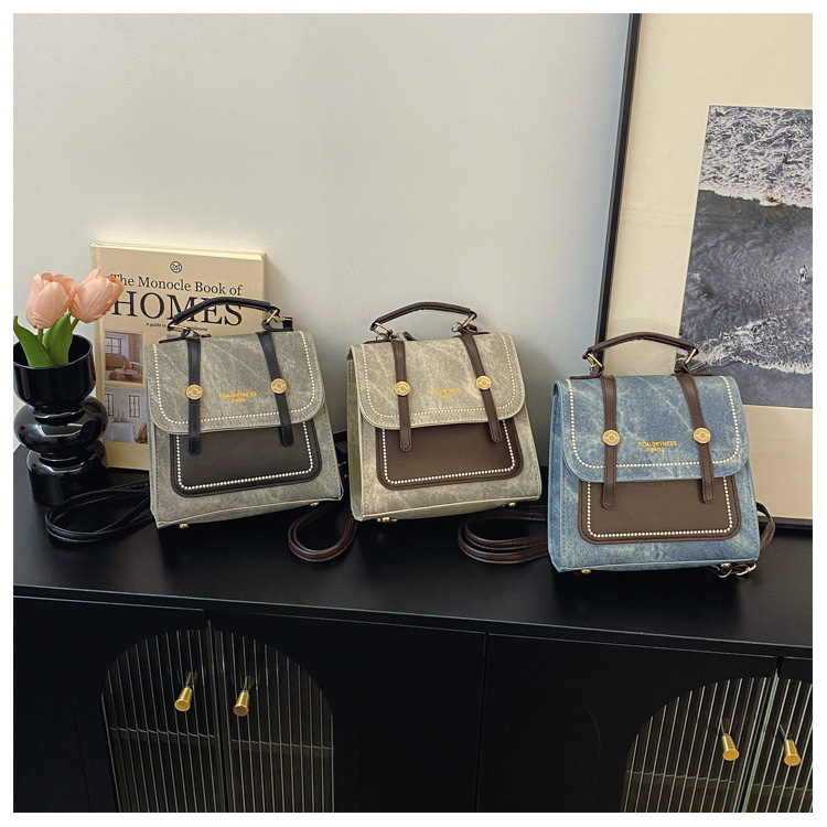 Alta sensación de vaquero pequeño una bolsa de tres mochilas para mujeres 2024 nueva moda mochila de viaje corto