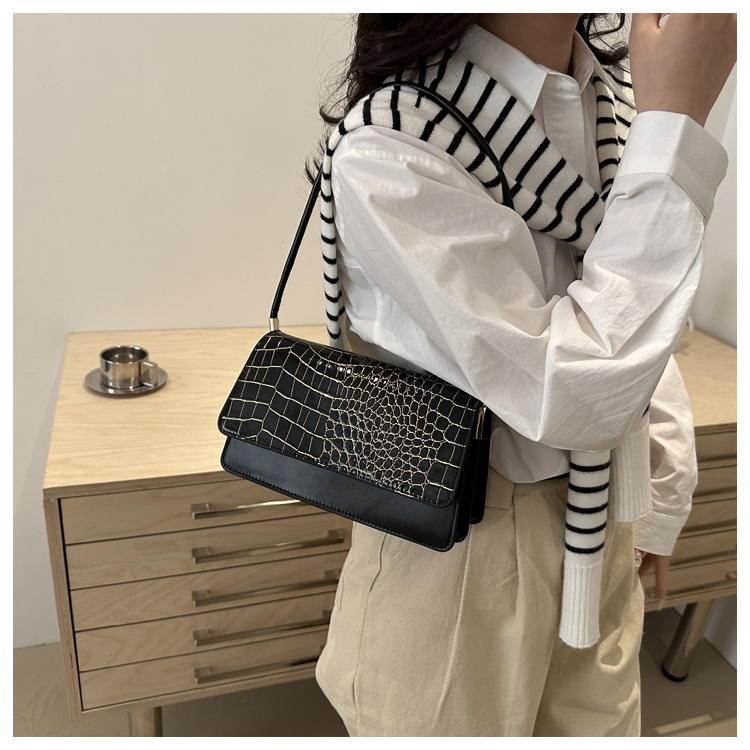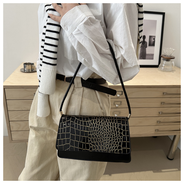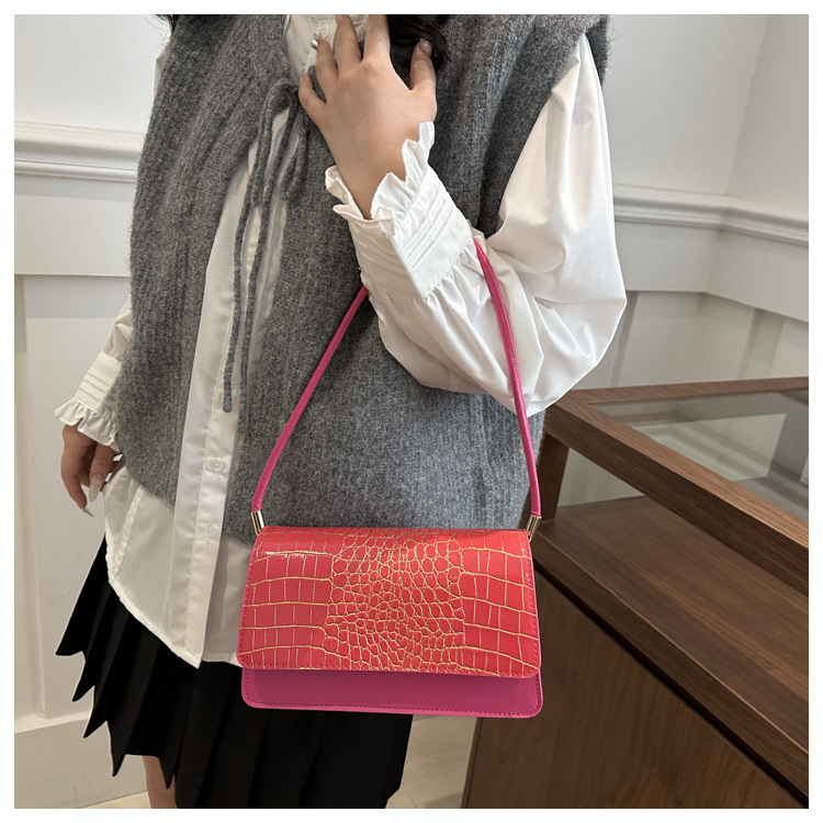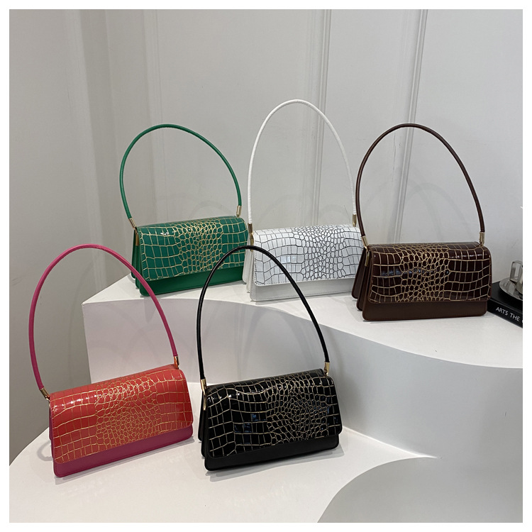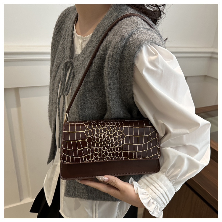 2025 primavera nuevo color sólido temperamento cocodrilo bolso de mano bolso de hombro de moda moda moda elegante bolso de mujer debajo de las axilas