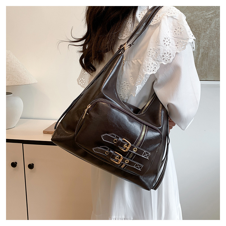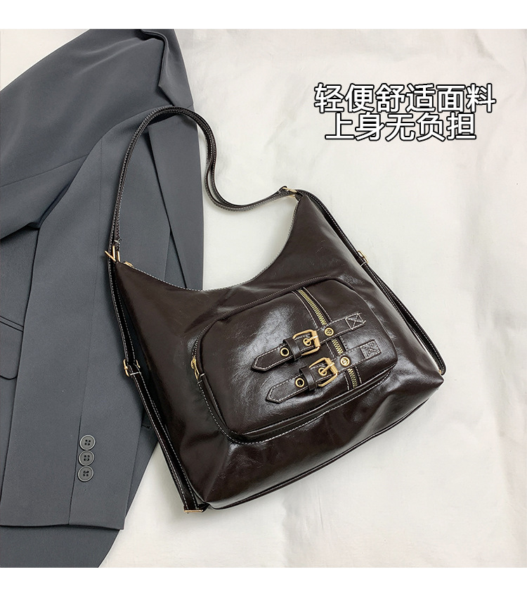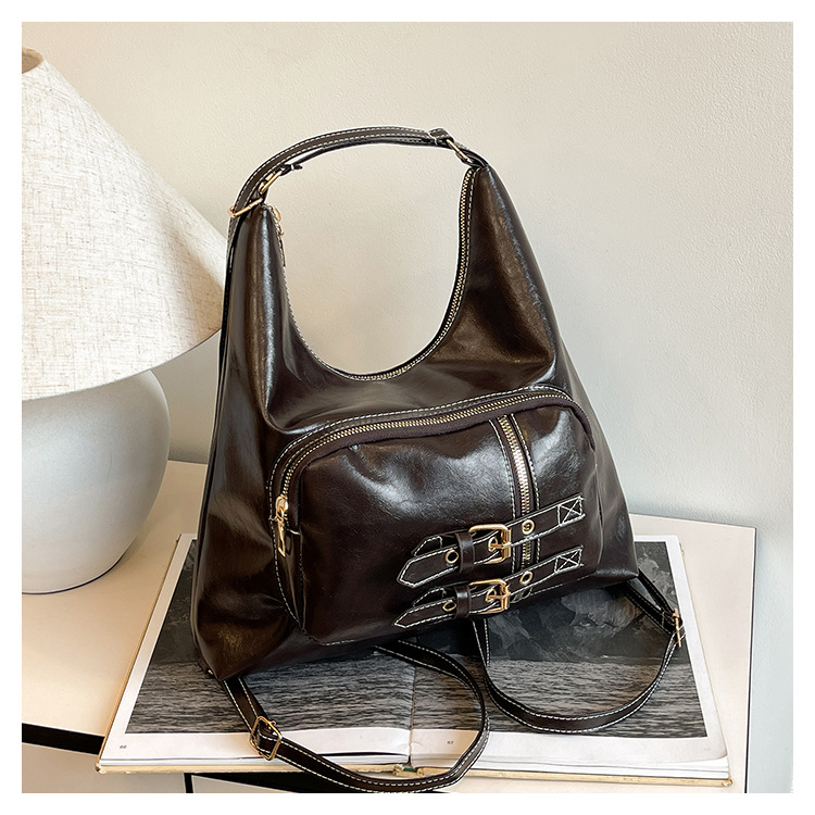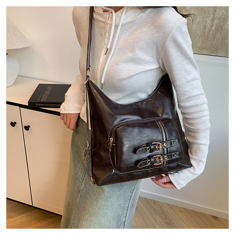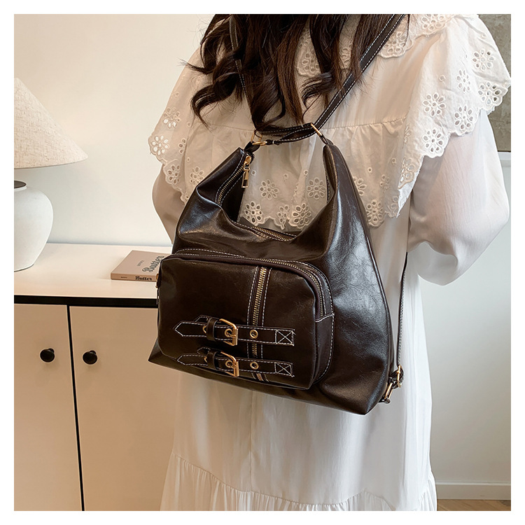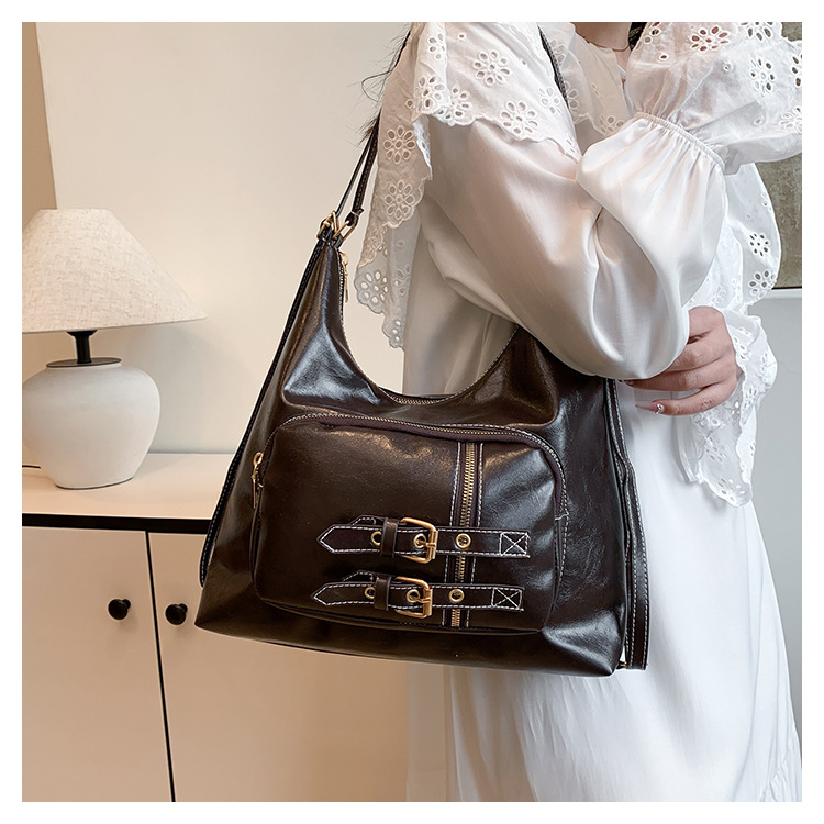 Nuevo bolso de mujer relajado retro estilo universitario bolso de hombro cinturón de botón de aguja decoración bolso de brazo de locomotora