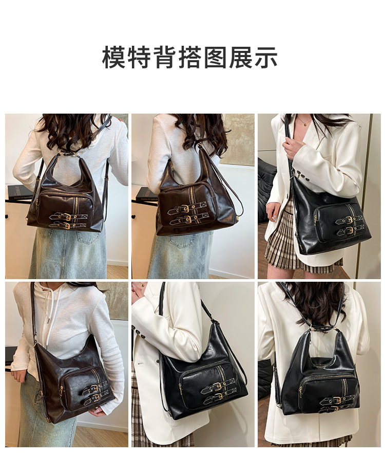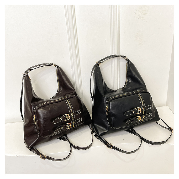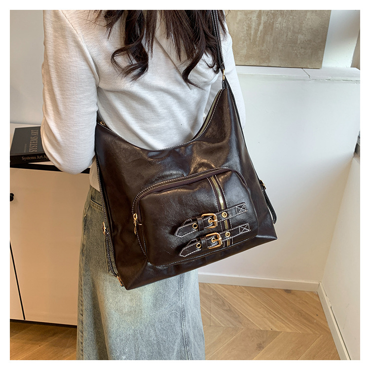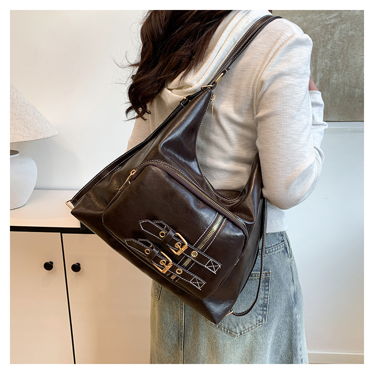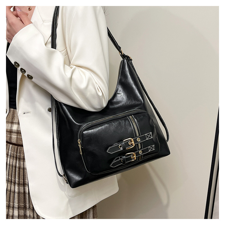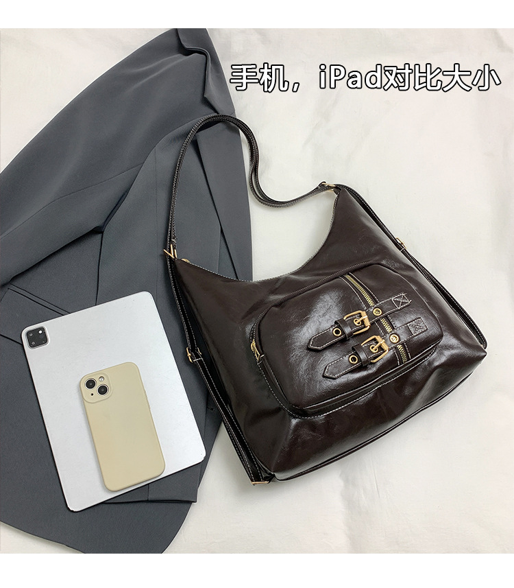 Nuevo bolso de mujer relajado retro estilo universitario bolso de hombro cinturón de botón de aguja decoración bolso de brazo de locomotora
