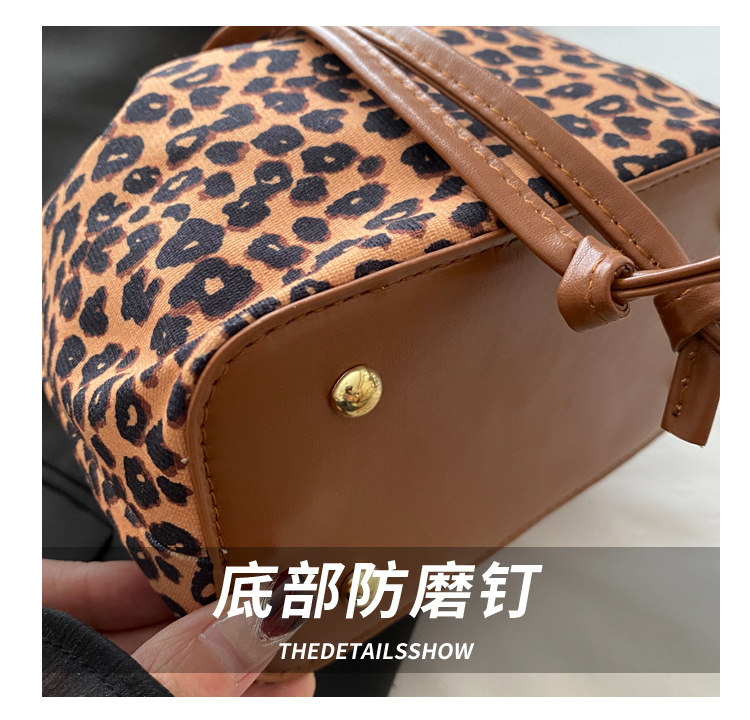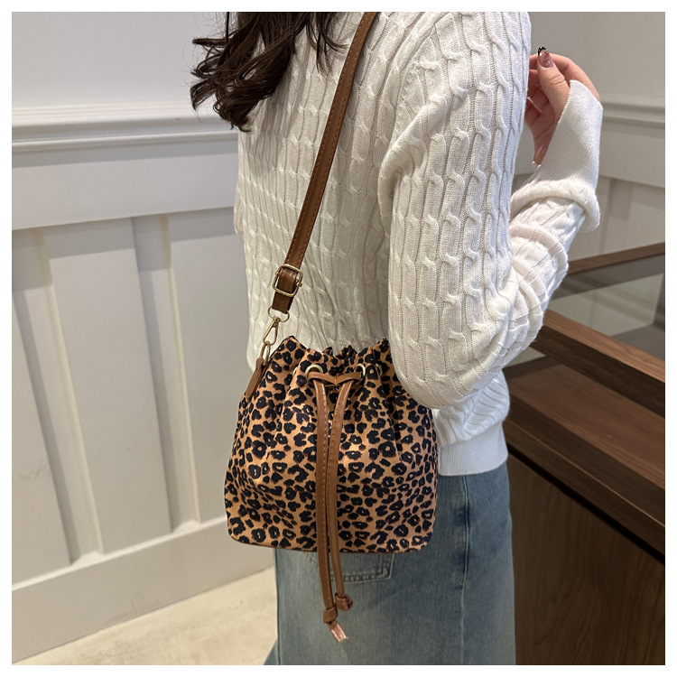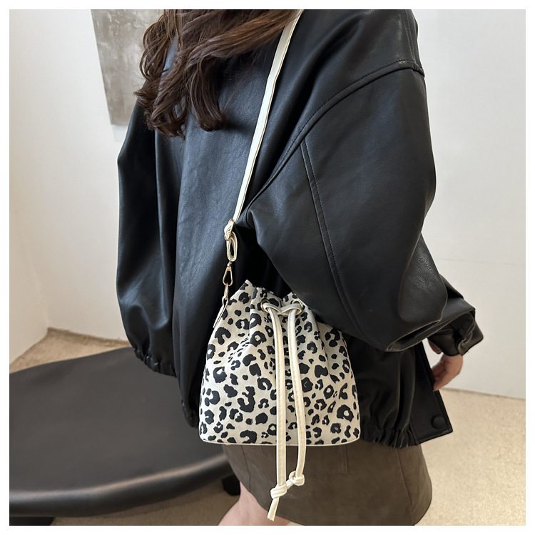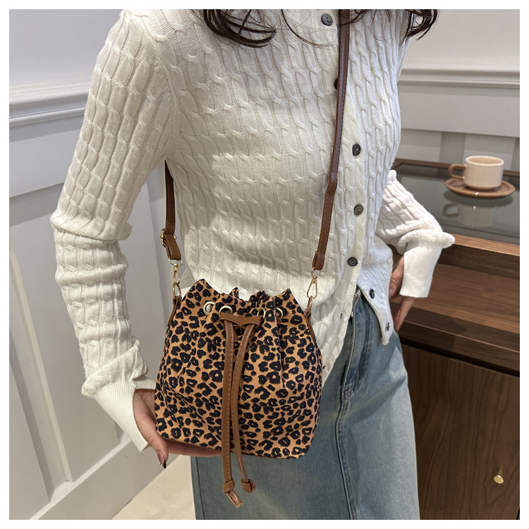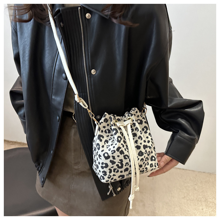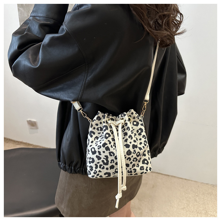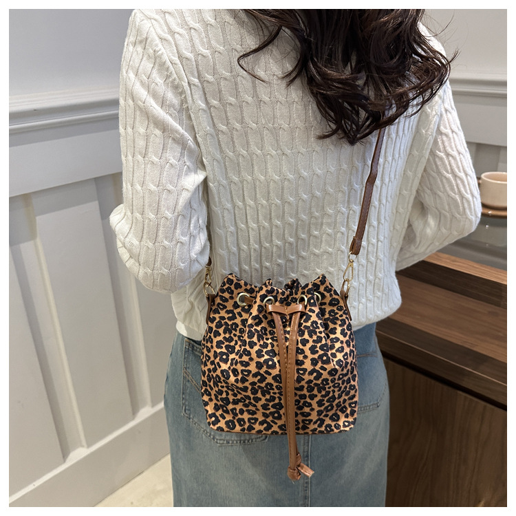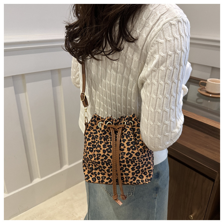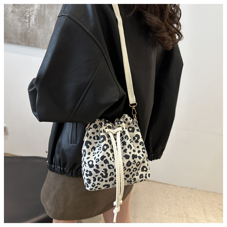 Nicho de diseño de leopardo correa bolso de cubo de agua mochila para mujeres 2024 nuevo popular bolso de hombro a cuadrillas portátiles