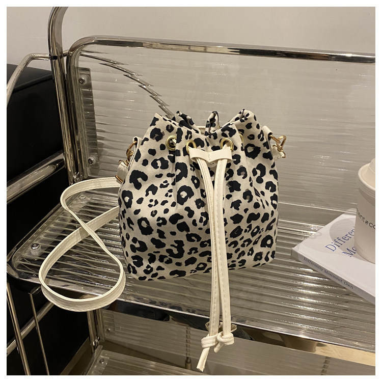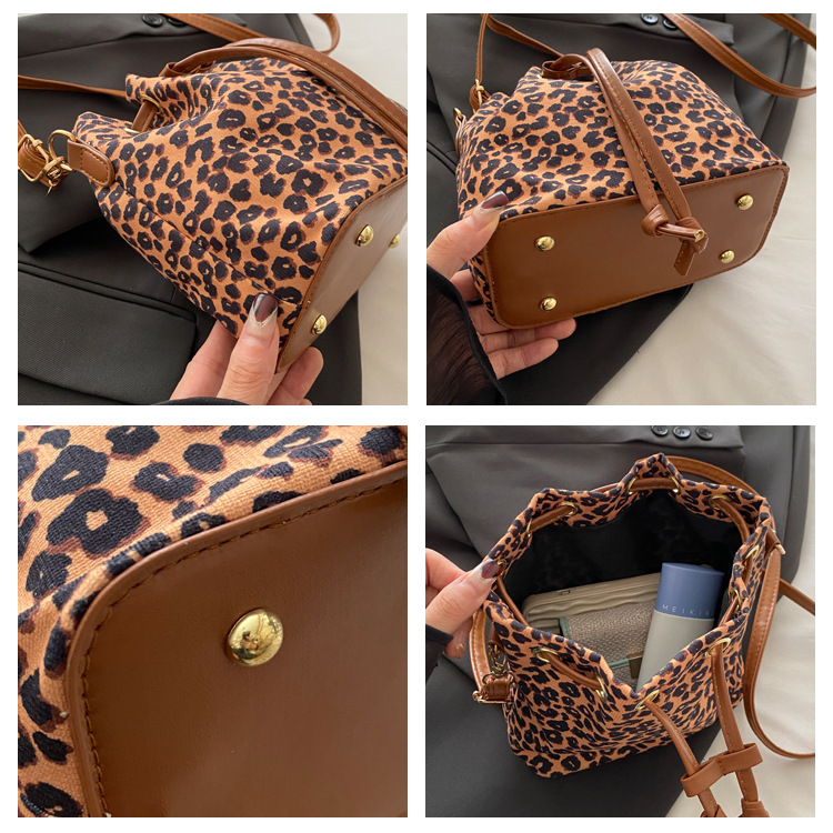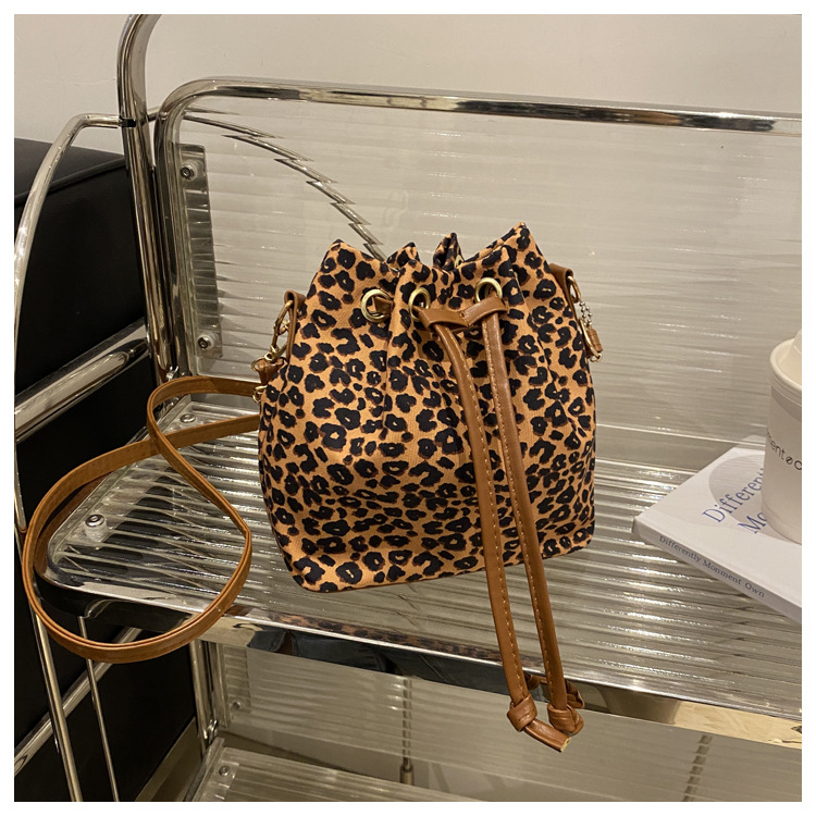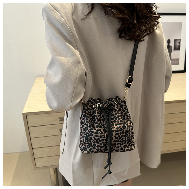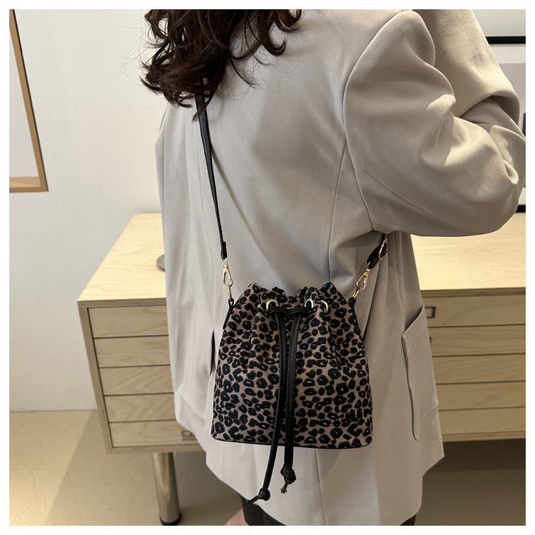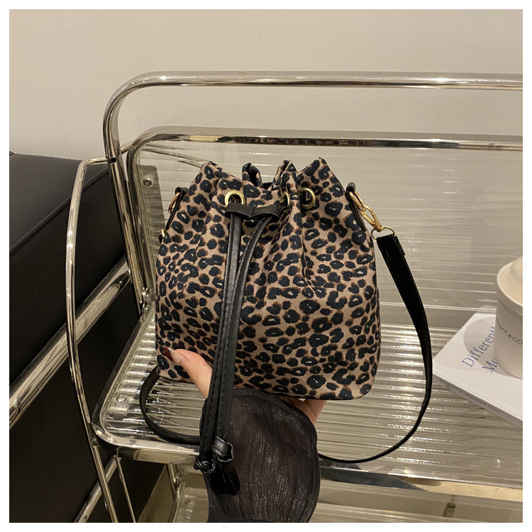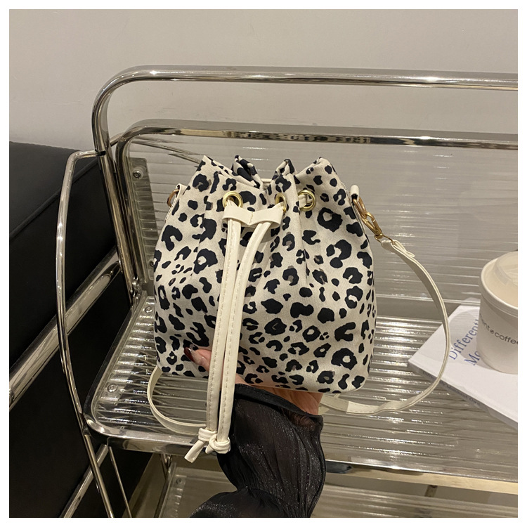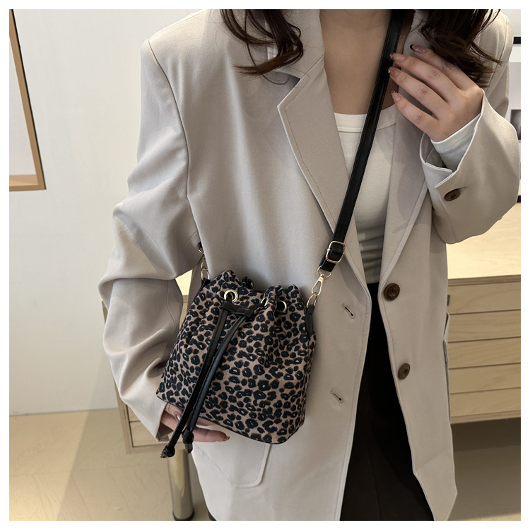 Nicho de diseño de leopardo correa bolso de cubo de agua mochila para mujeres 2024 nuevo popular bolso de hombro a cuadrillas portátiles