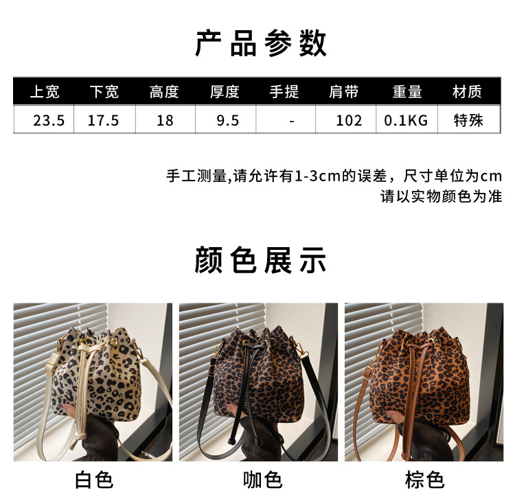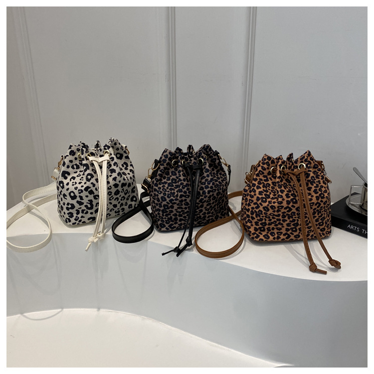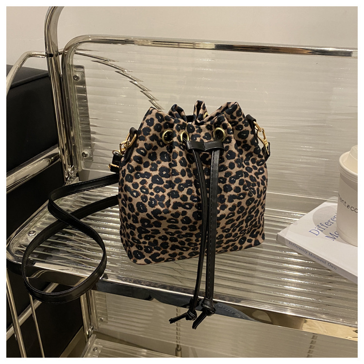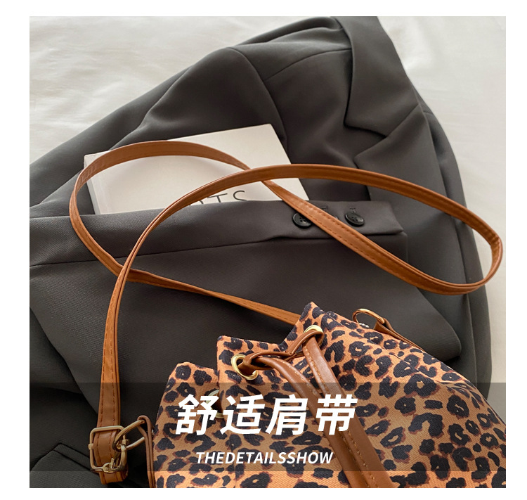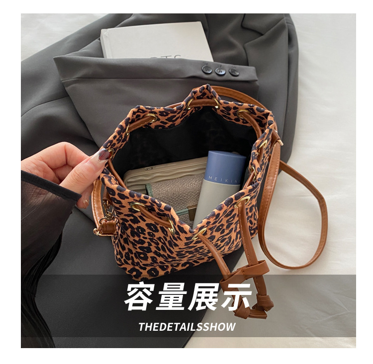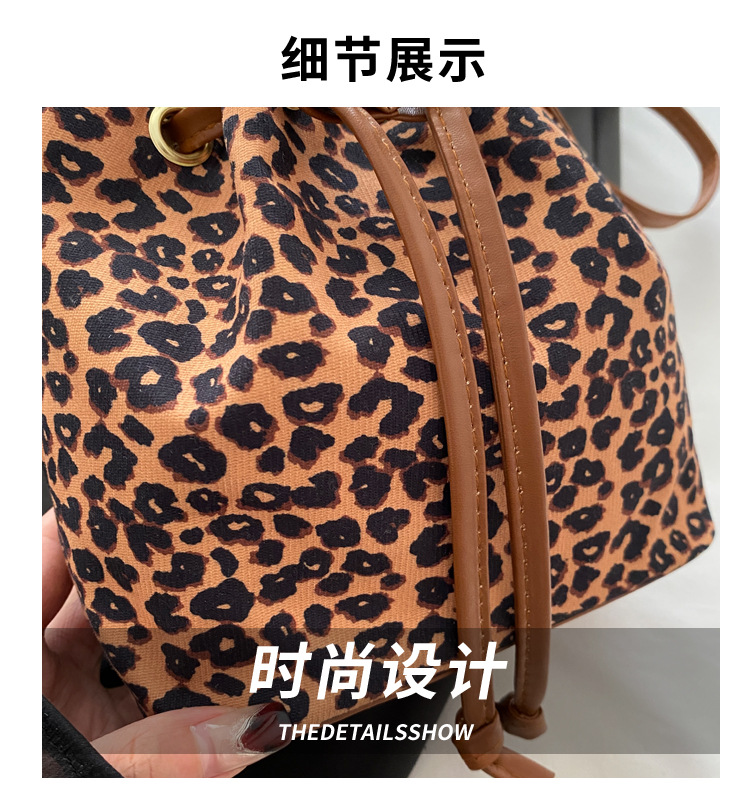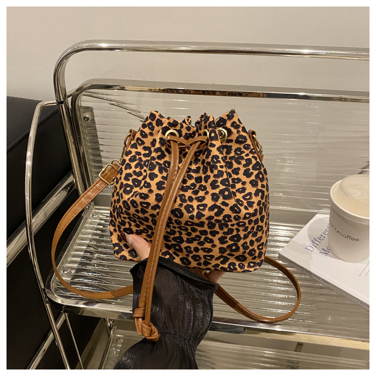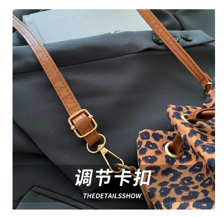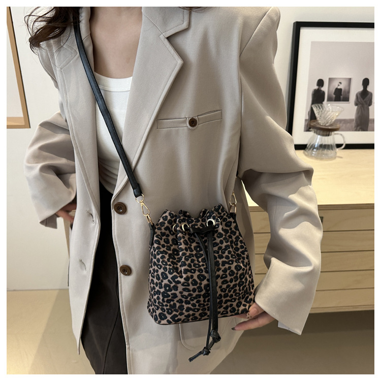 Nicho de diseño de leopardo correa bolso de cubo de agua mochila para mujeres 2024 nuevo popular bolso de hombro a cuadrillas portátiles