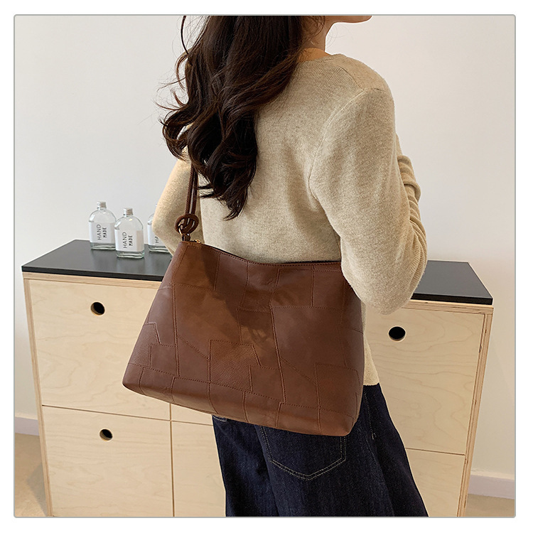 Retro de gran capacidad de moda de color sólido 2024 ocio simple nuevo estilo de estilo extranjero en la nueva bolsa de hombro portátil para mujeres