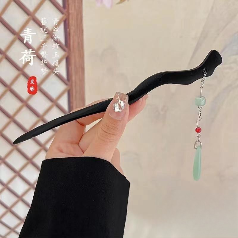 Carta de viento ~ Conjunto de horquilla Nueva horquilla de madera negra fría de estilo chino Accesorios para el cabello de temperamento clásico simple avanzado