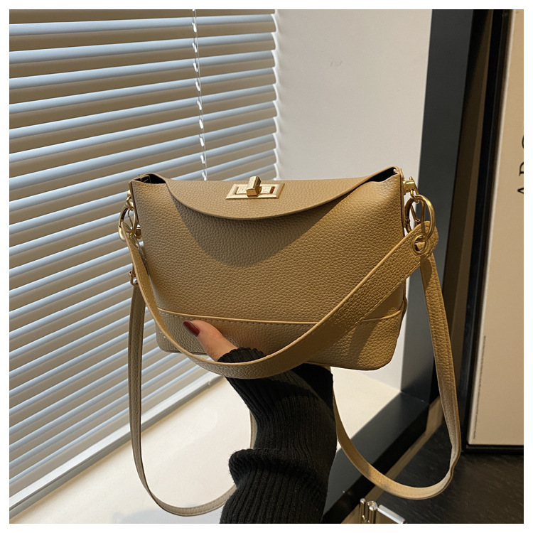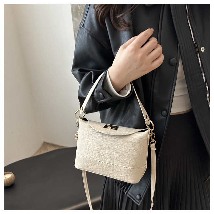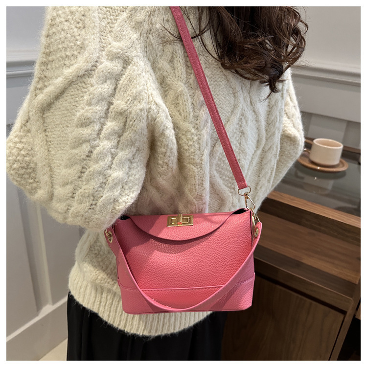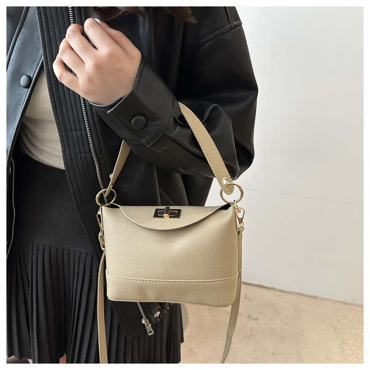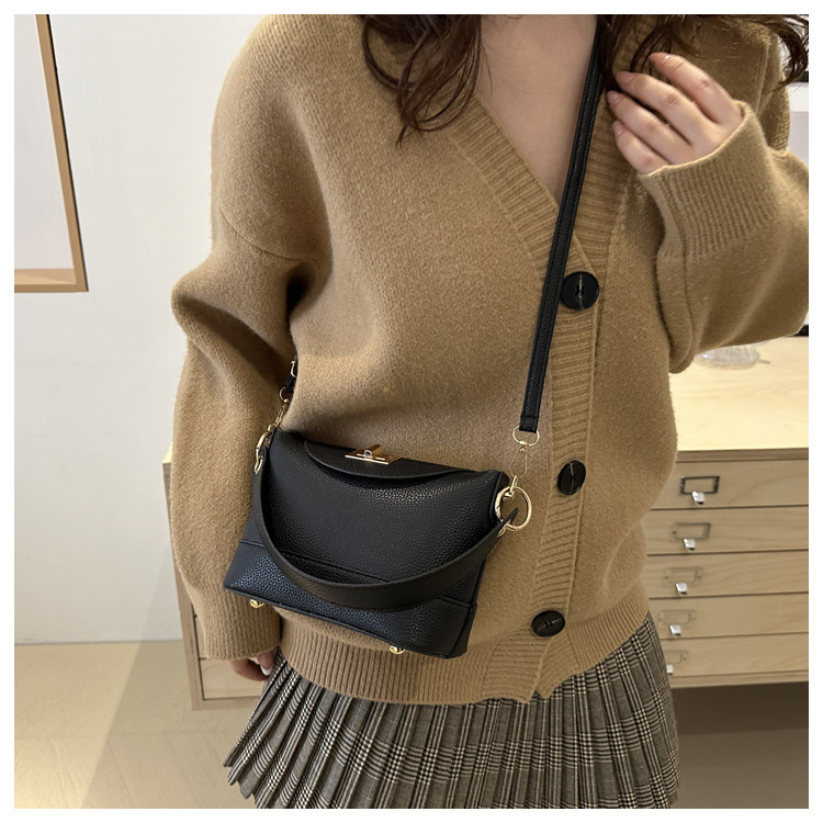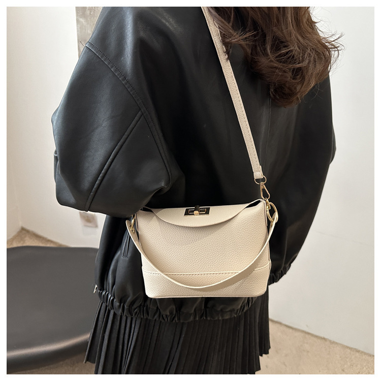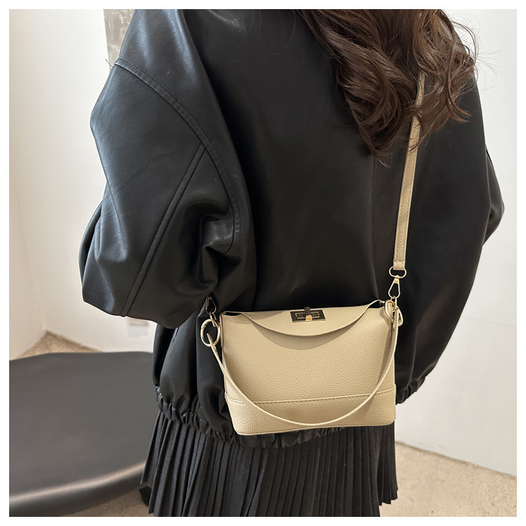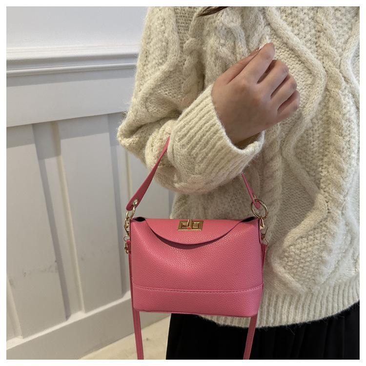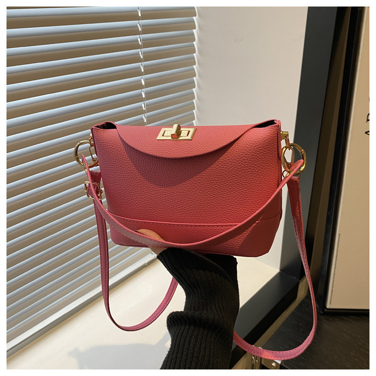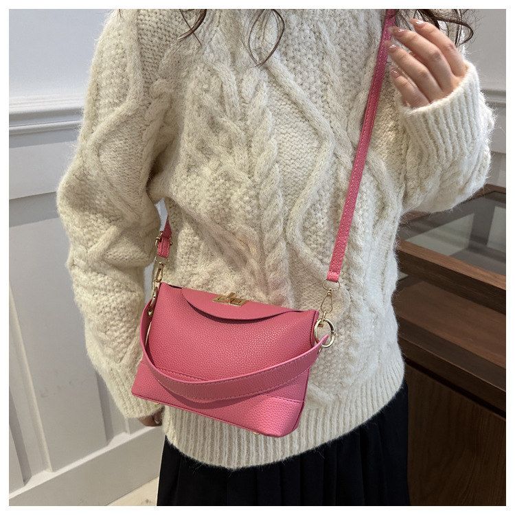 Moda de color sólido litchi 2024, nuevo bloqueo de invierno de estilo exterior de hombro casualidad, bolso de mano pequeño para mujeres